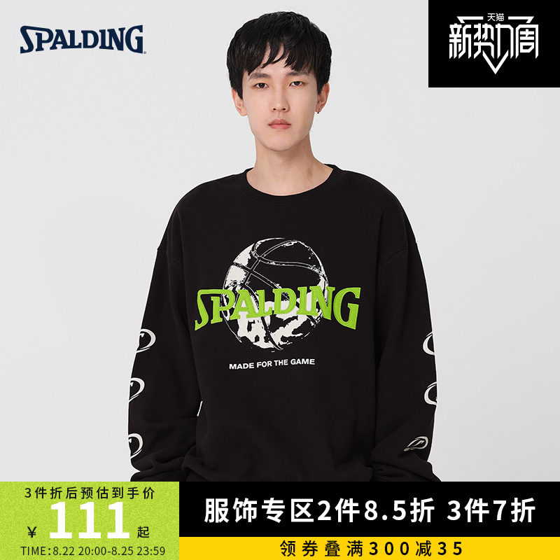 Spalding, хлопковый комфортный баскетбольный лонгслив, свитшот с круглым воротником, с печатью вашего логотипа