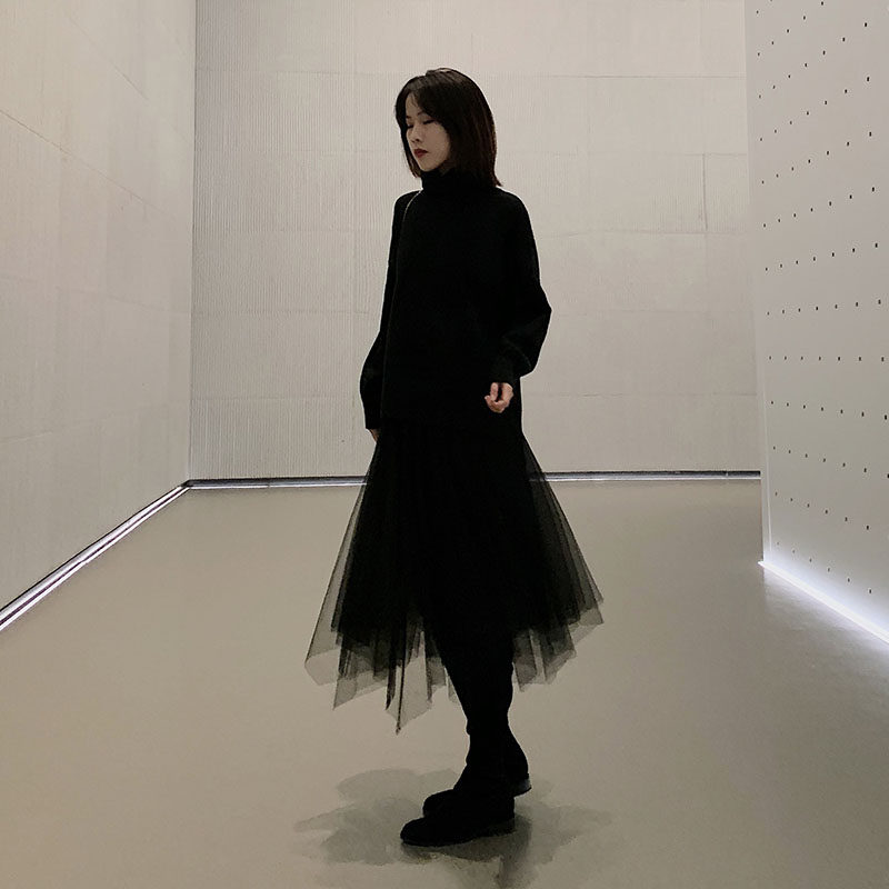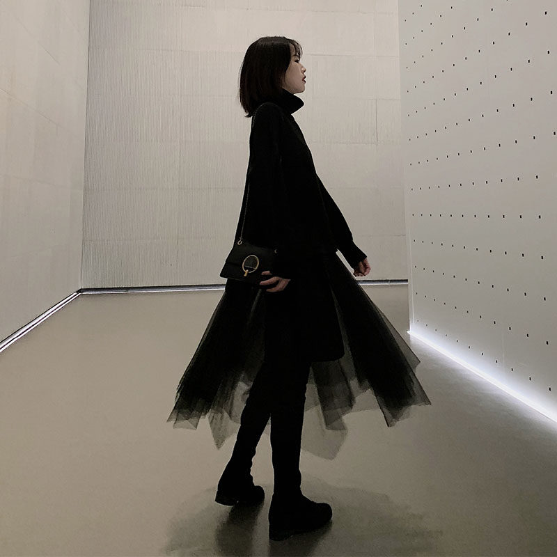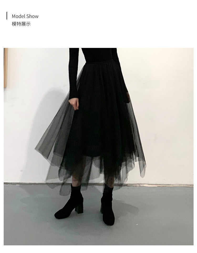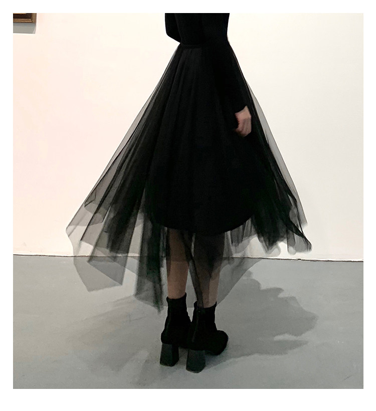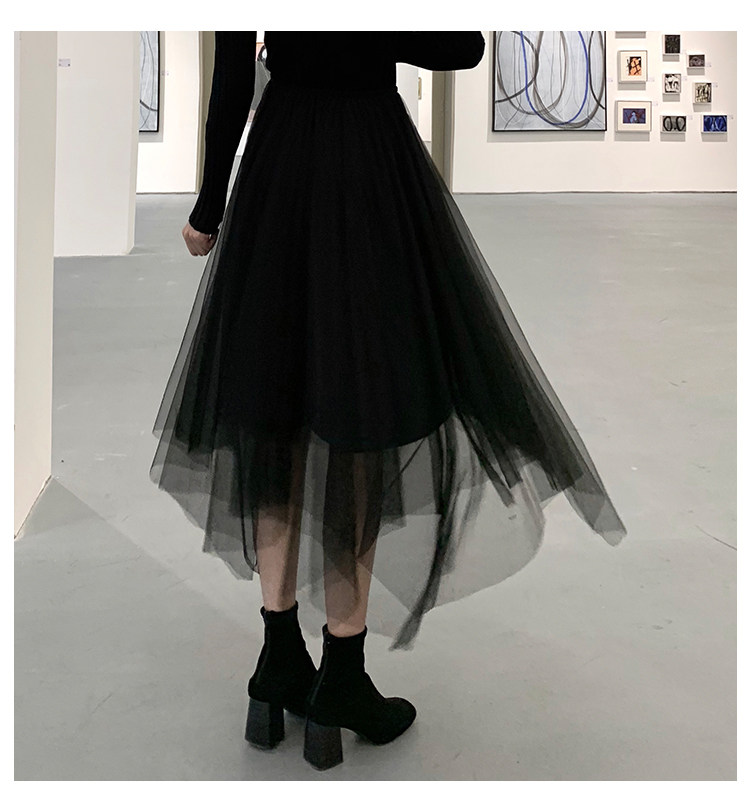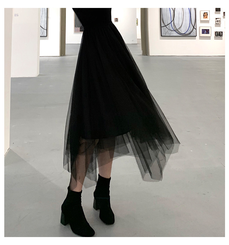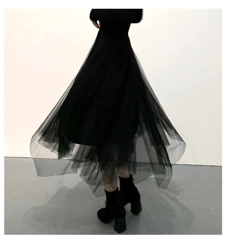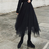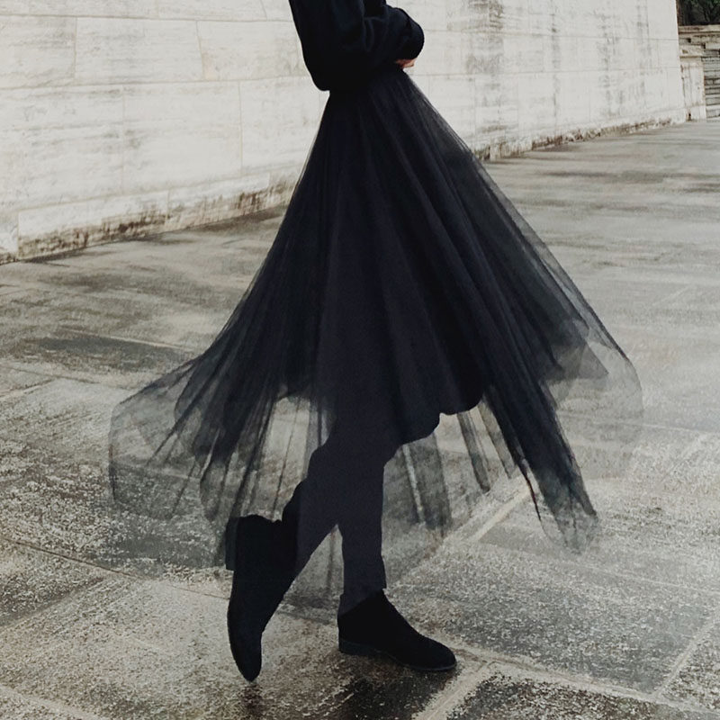 Черная демисезонная длинная юбка, высокая талия, А-силуэт, из фатина