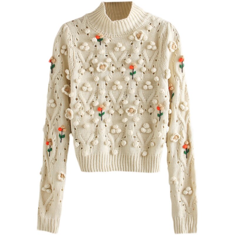 Дизайнерский свитер в форме цветка, трикотажный милый крючок для вязания, тренд сезона, с вышивкой, в цветочек