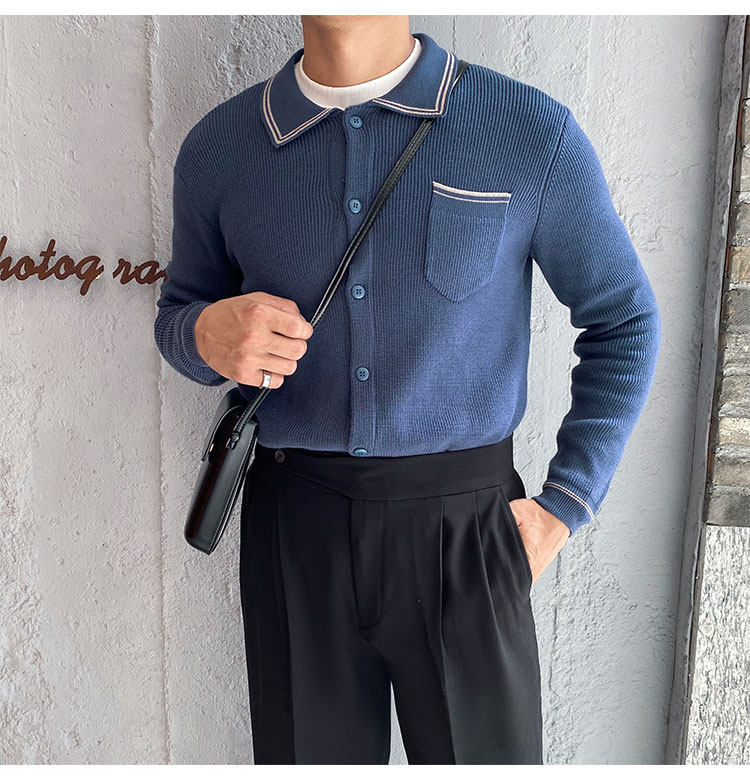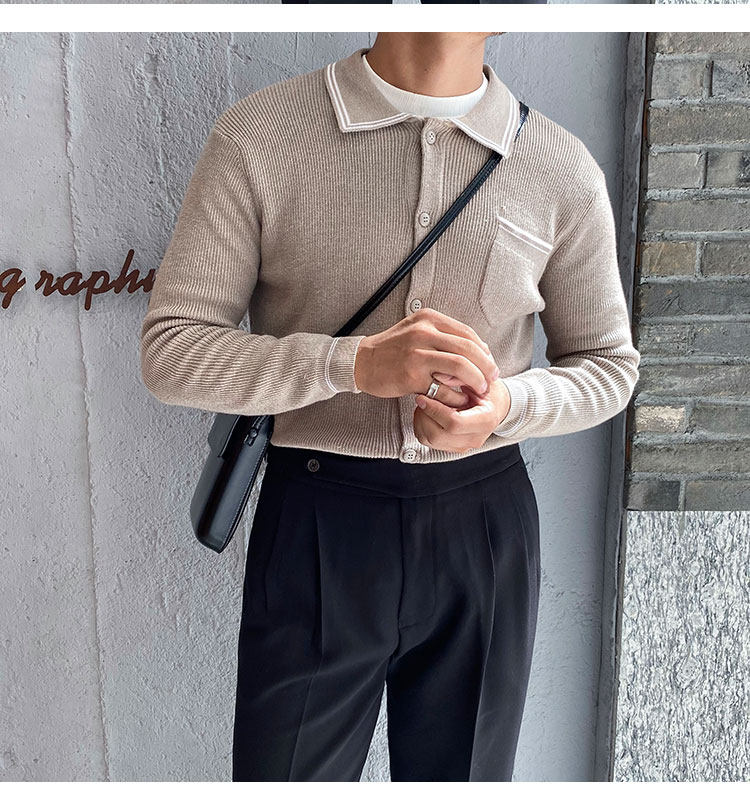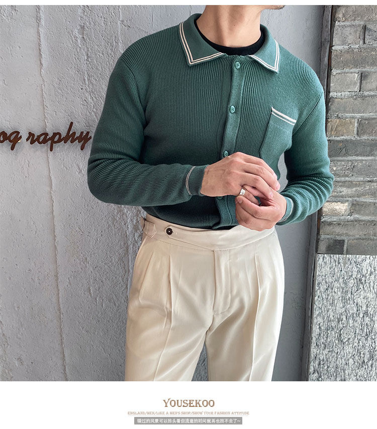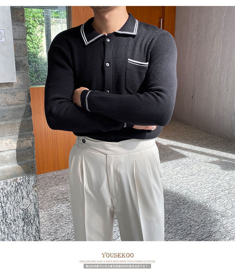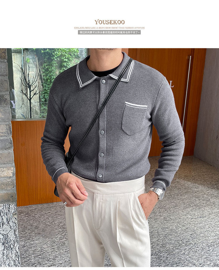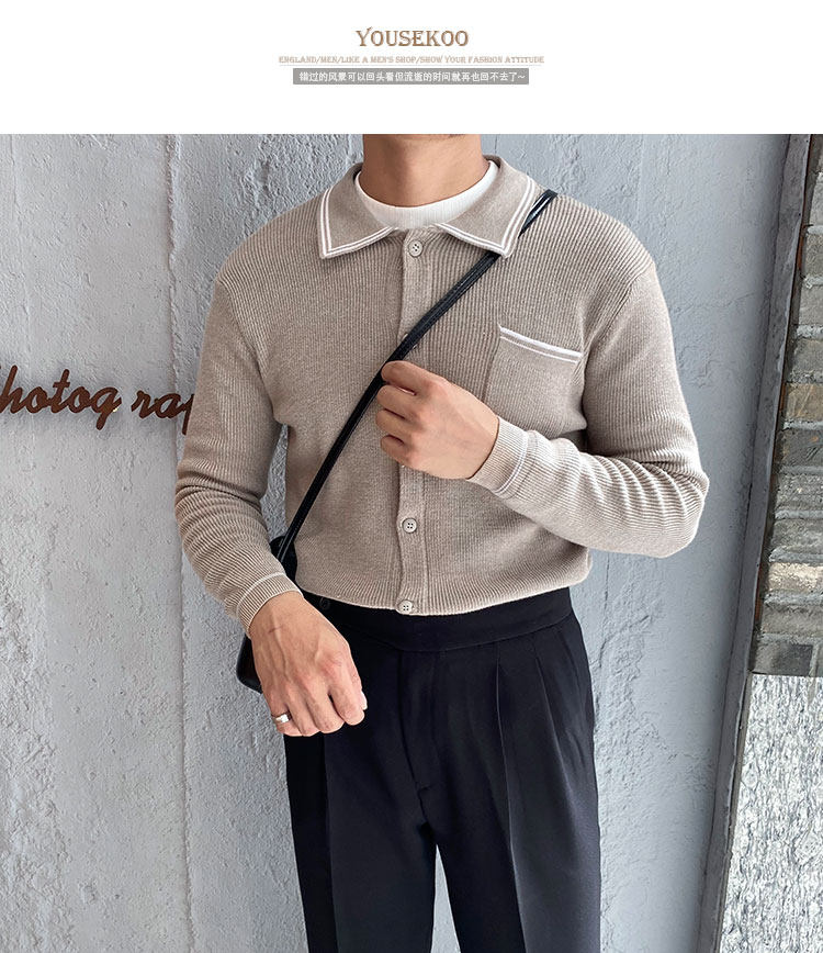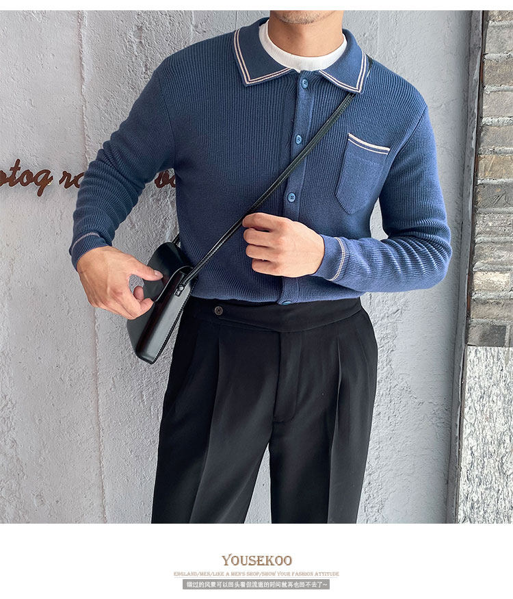 Мужской трикотажный осенний демисезонный трендовый универсальный свитер для отдыха, в корейском стиле