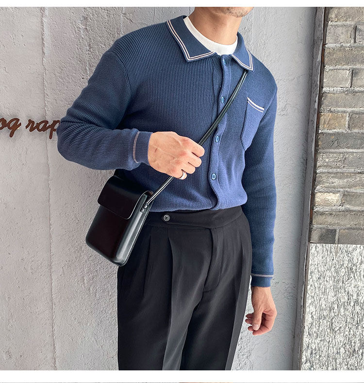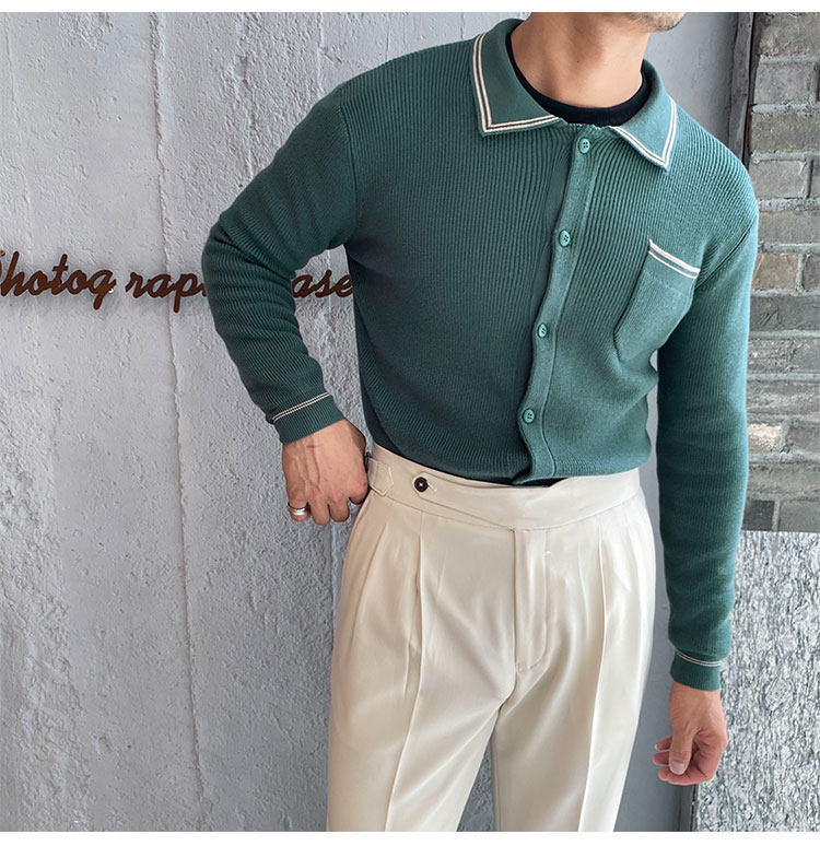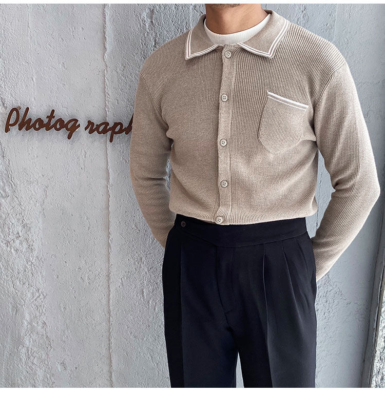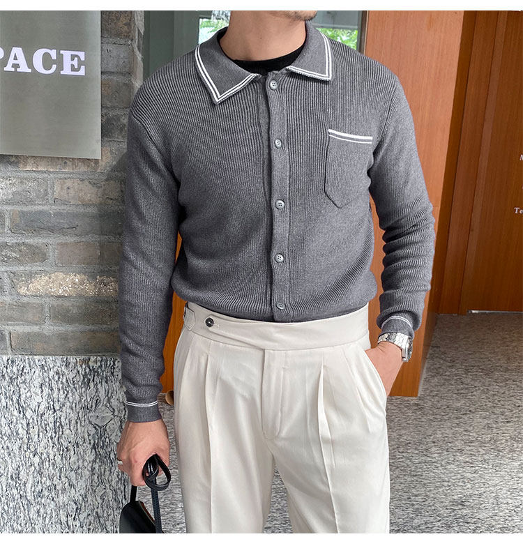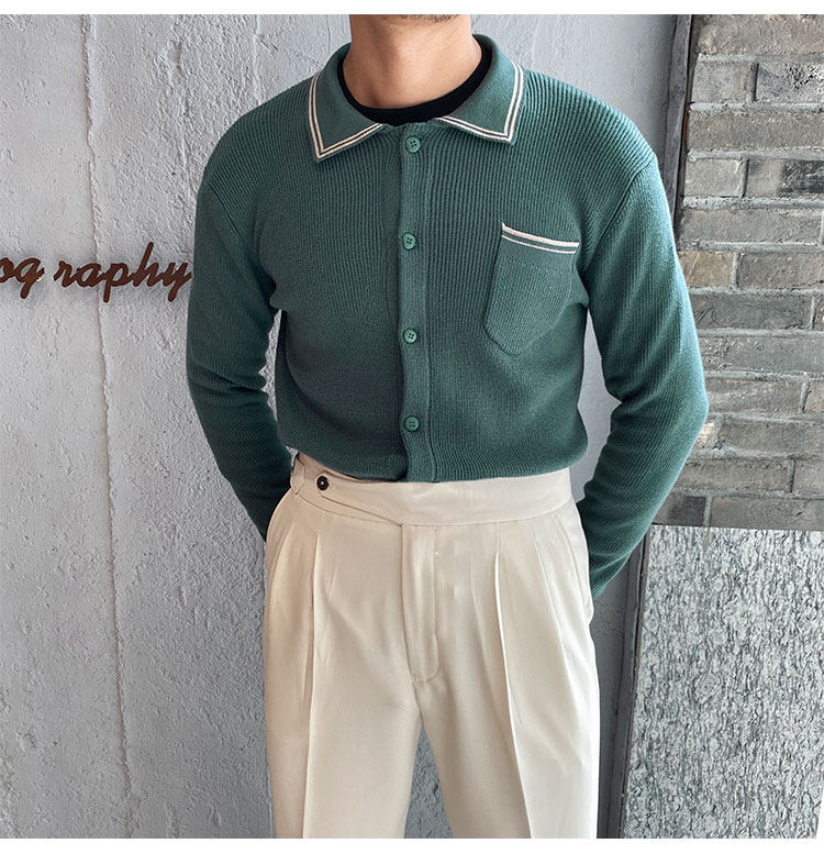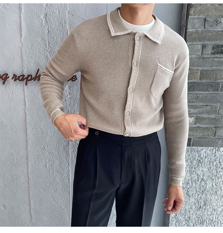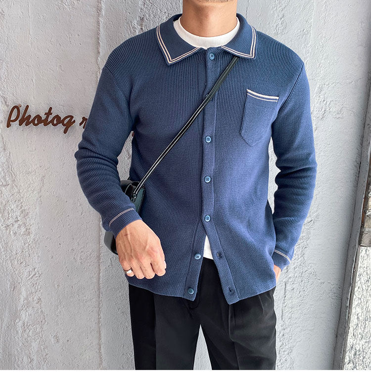 Мужской трикотажный осенний демисезонный трендовый универсальный свитер для отдыха, в корейском стиле