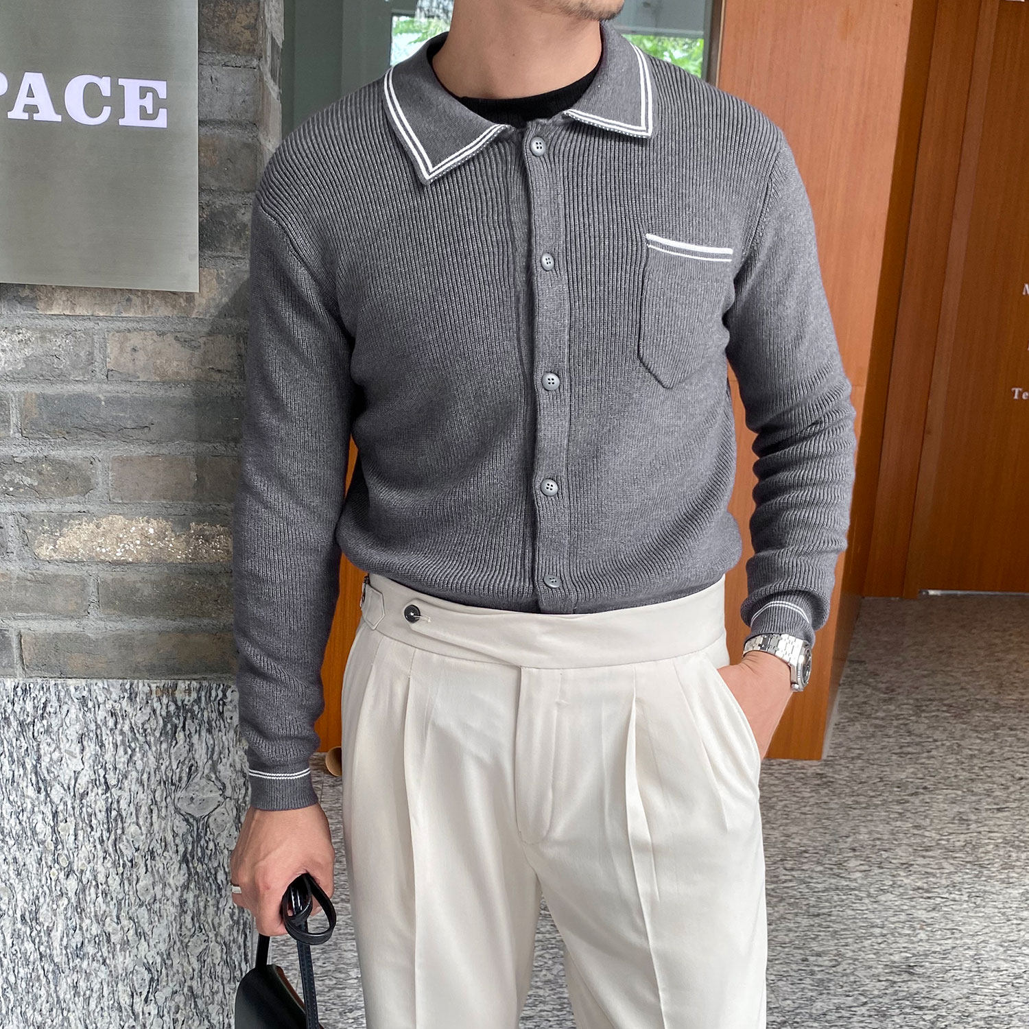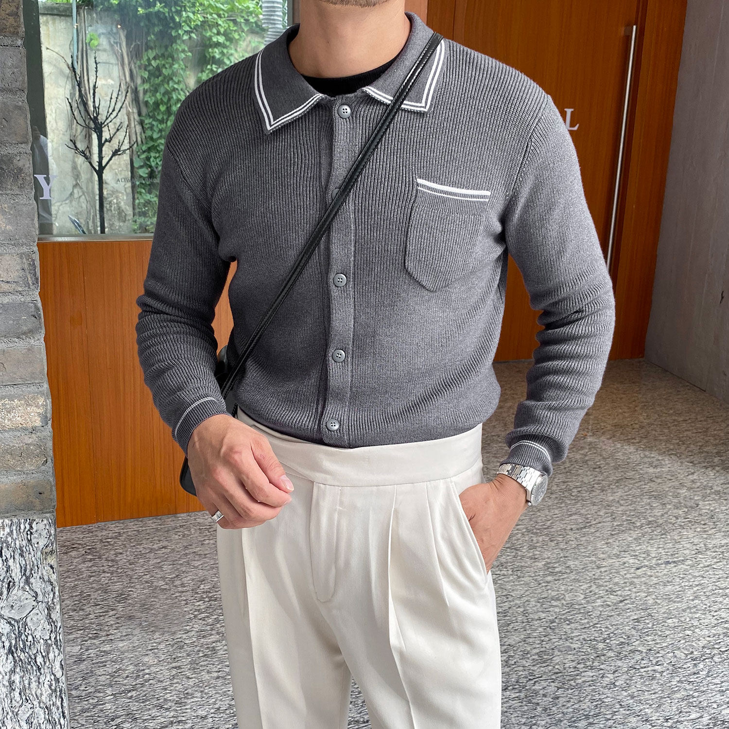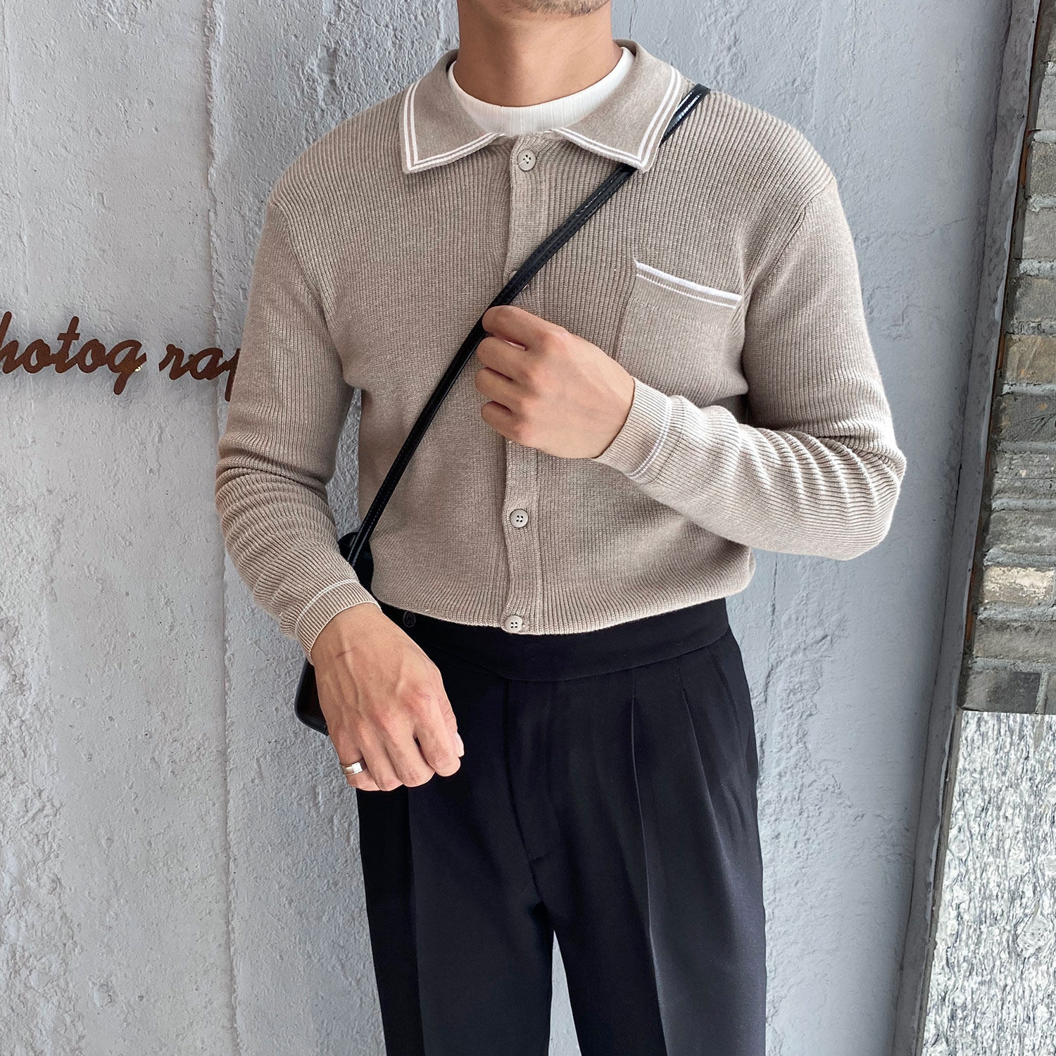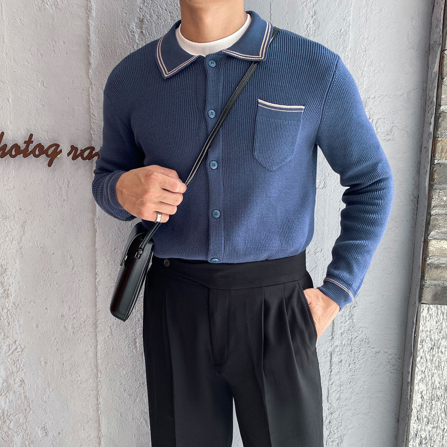 Мужской трикотажный осенний демисезонный трендовый универсальный свитер для отдыха, в корейском стиле