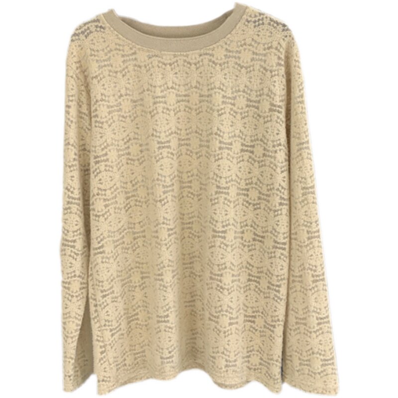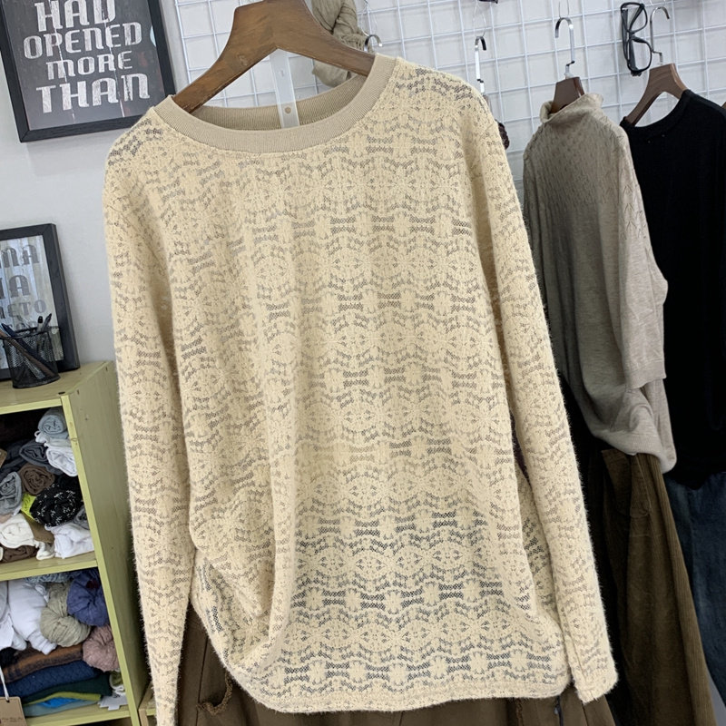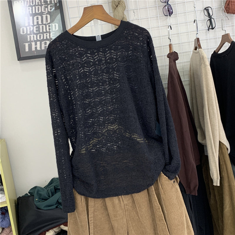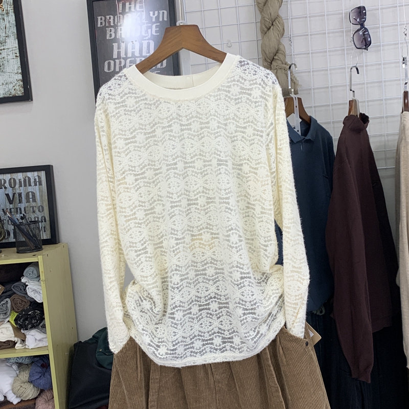 Трикотажный осенний свитер, кружевной базовый лонгслив с круглым воротником, тонкие нарукавники, 2021 года