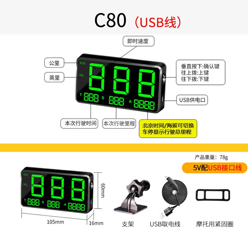 GPS-дисплей с проекционным дисплеем, одометр скорости, HUD, автомобильная универсальная сигнализация скорости автомобиля, беспроводное напоминание о машине.