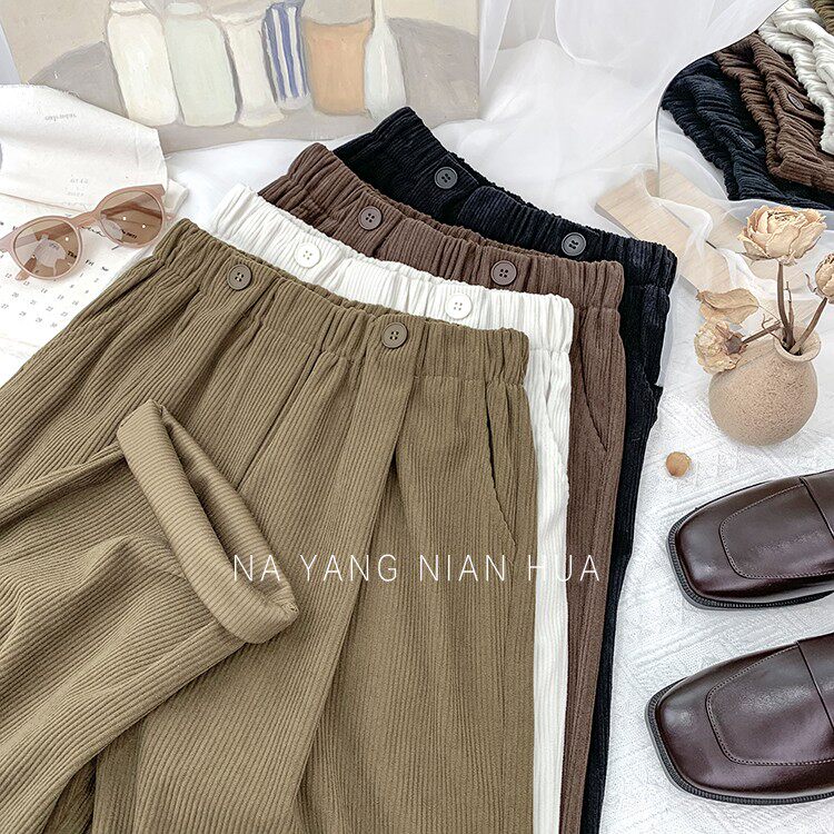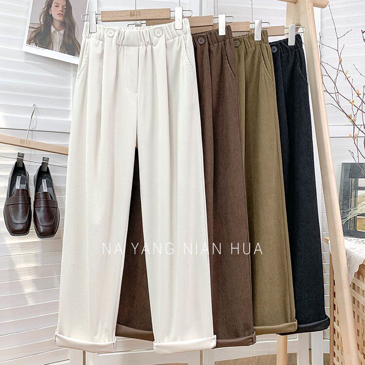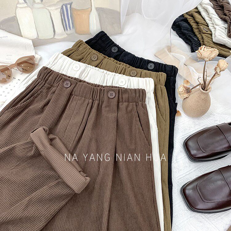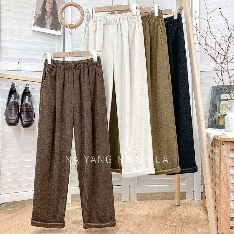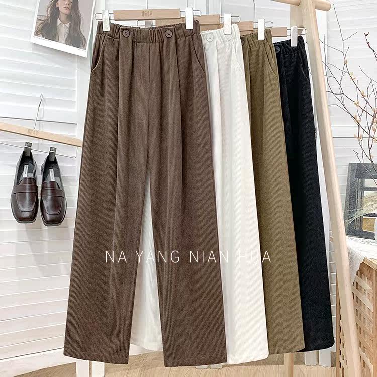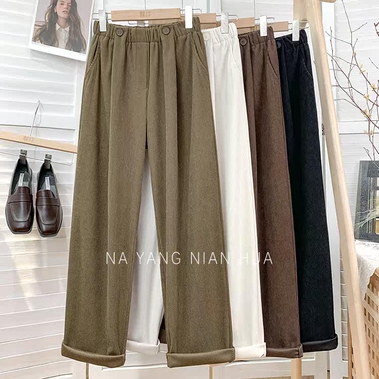 Ретро бархатные штаны, леггинсы, высокая талия, свободный прямой крой