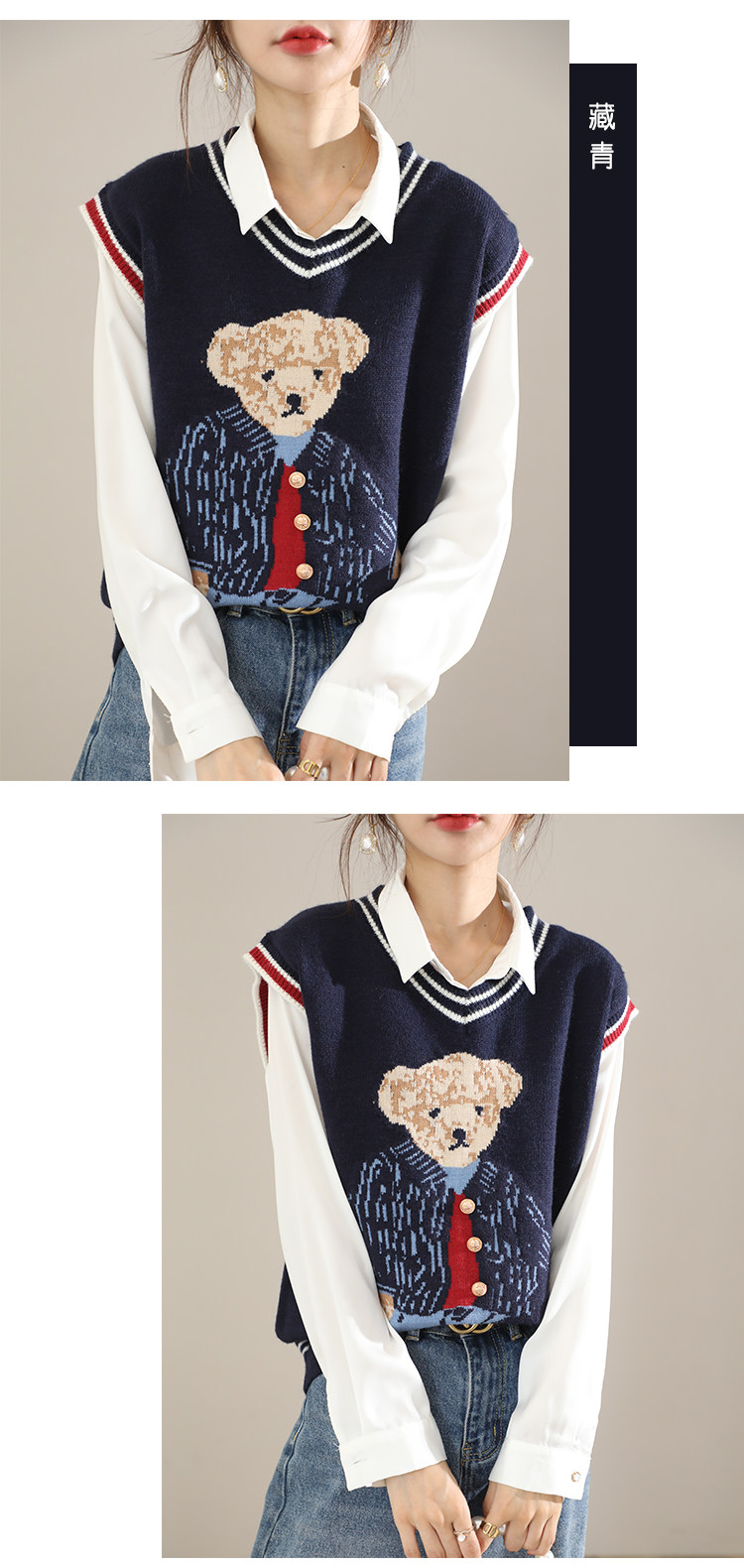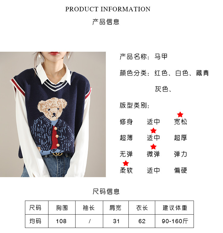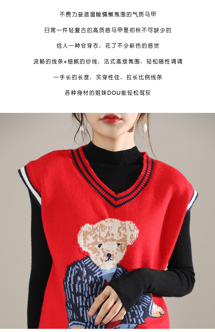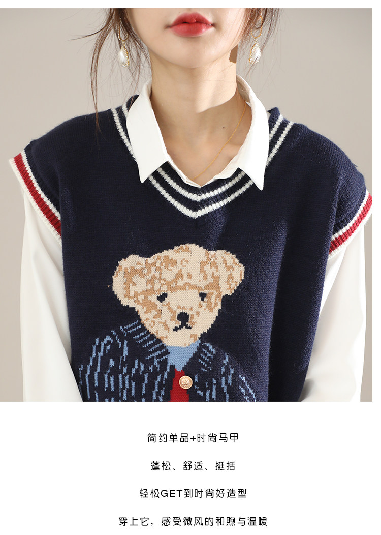 Свитер, демисезонный трикотажный жилет без рукавов, с медвежатами, в корейском стиле, с вышивкой