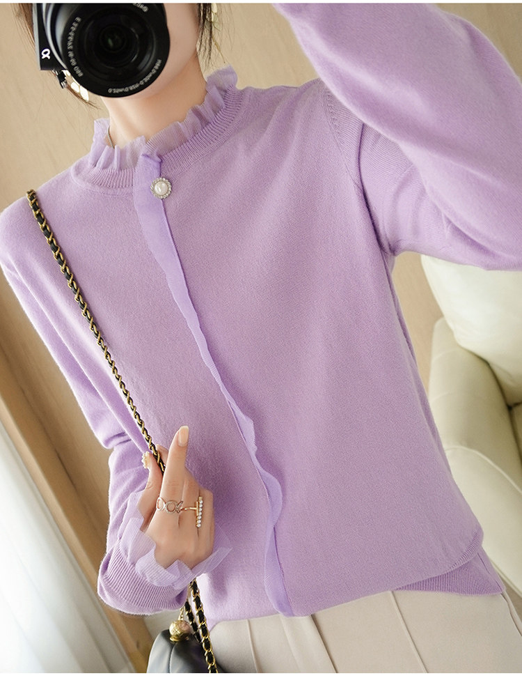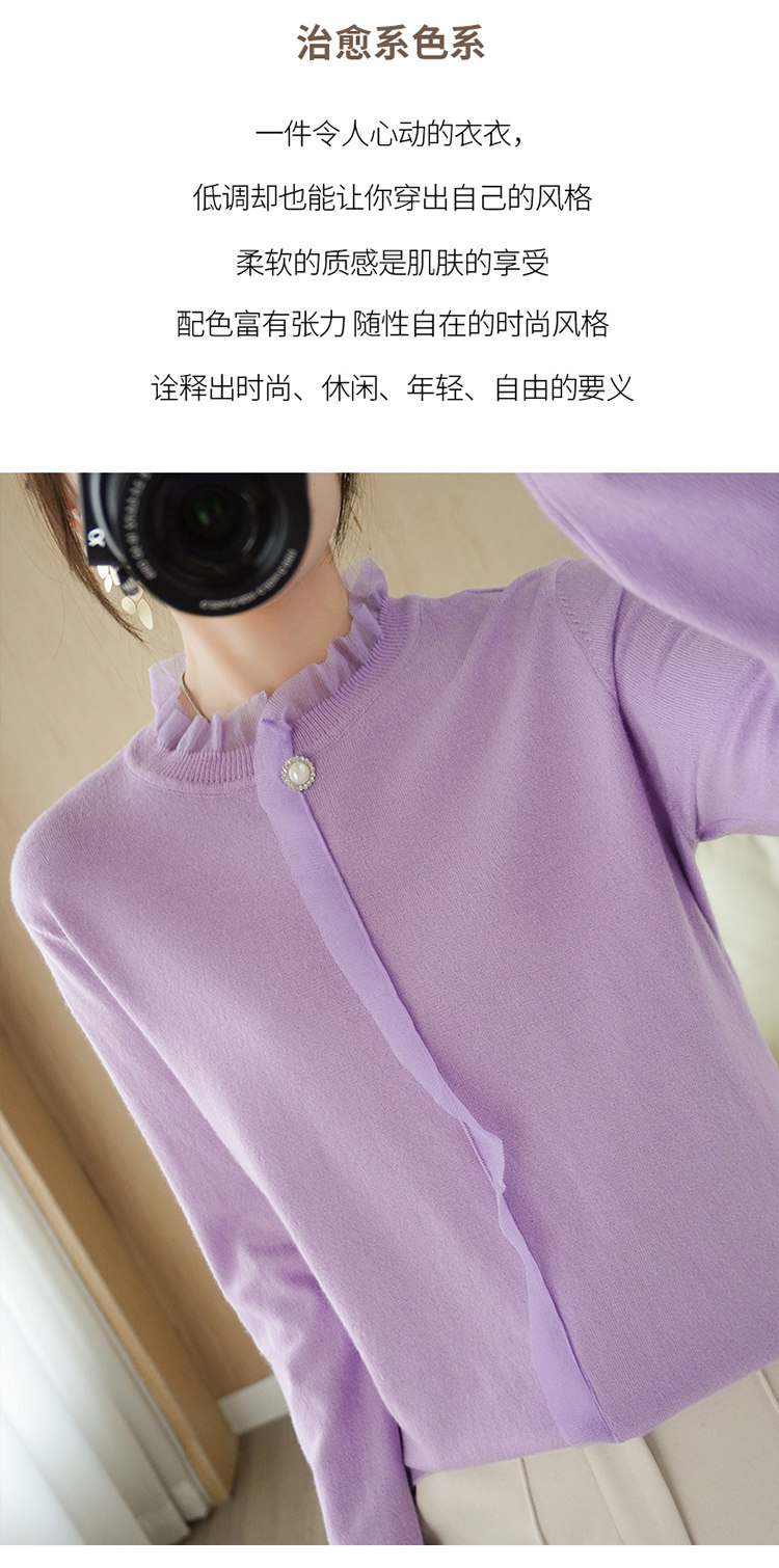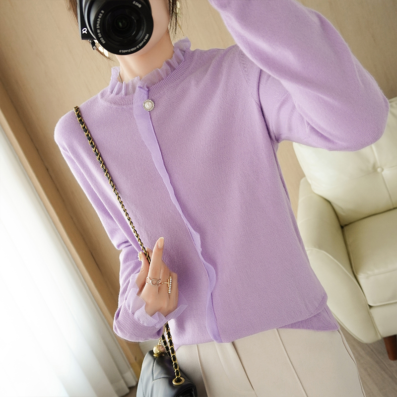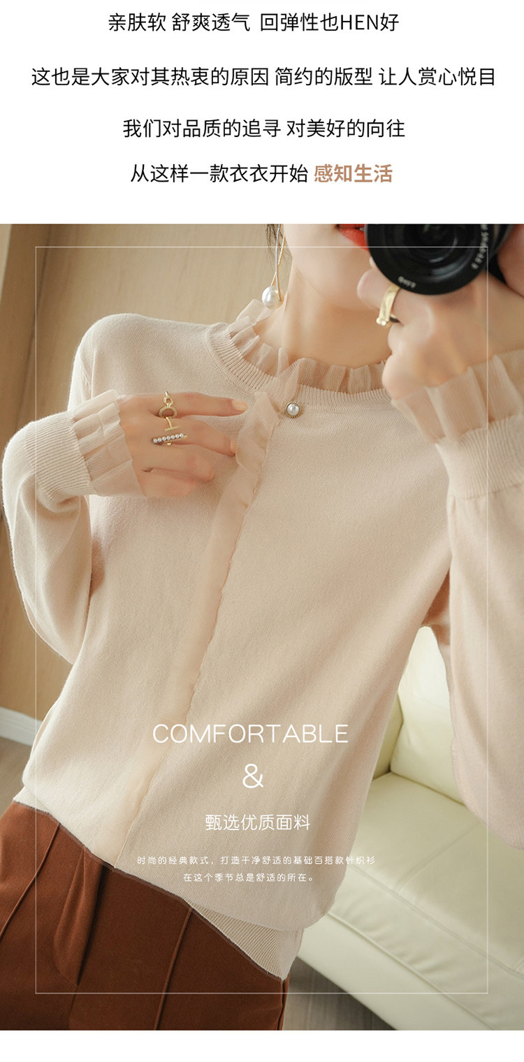 Кружевной кашемировый демисезонный шерстяной трикотажный базовый приятный телу свитер с круглым воротником, коллекция 2021, свободный крой