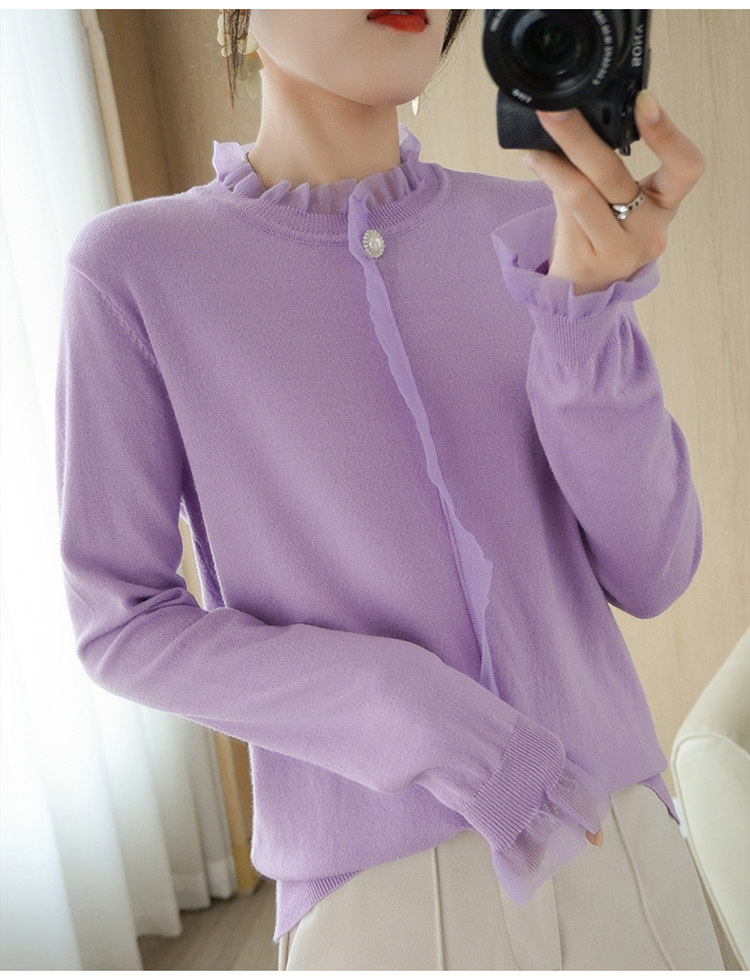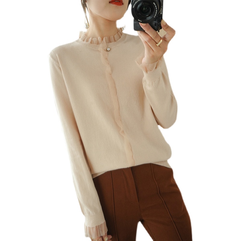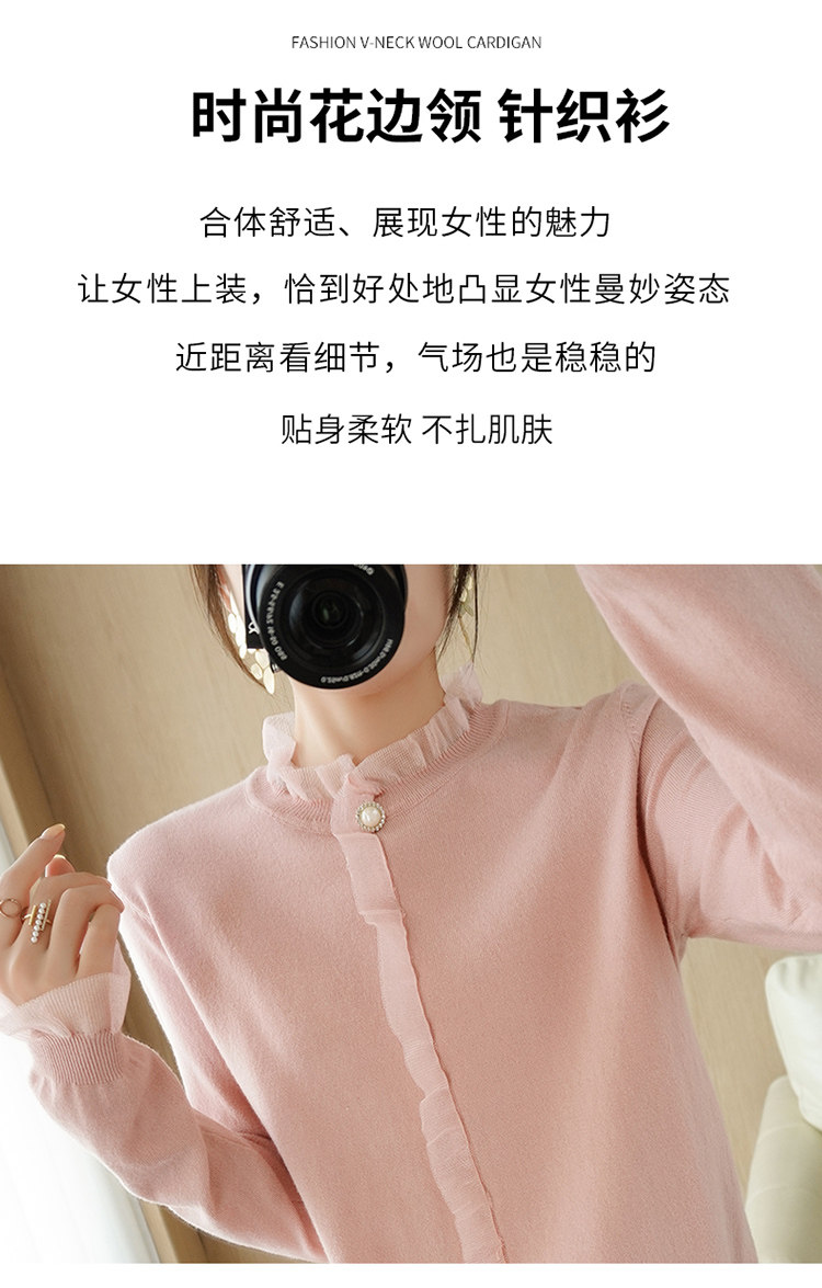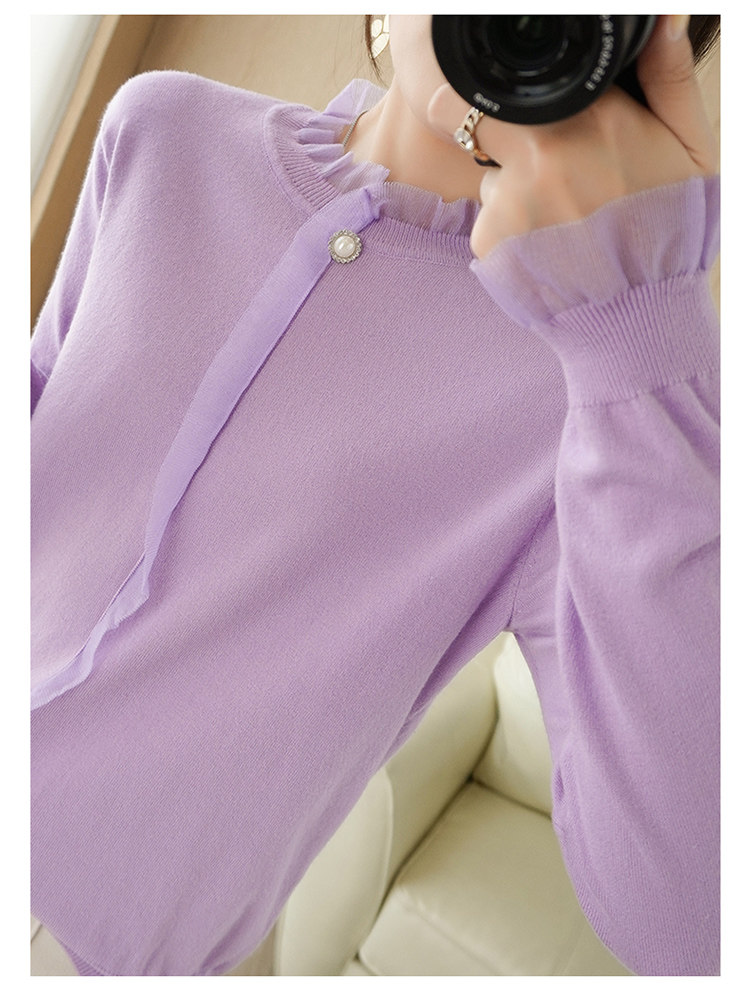 Кружевной кашемировый демисезонный шерстяной трикотажный базовый приятный телу свитер с круглым воротником, коллекция 2021, свободный крой