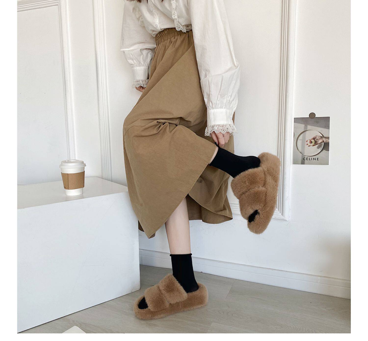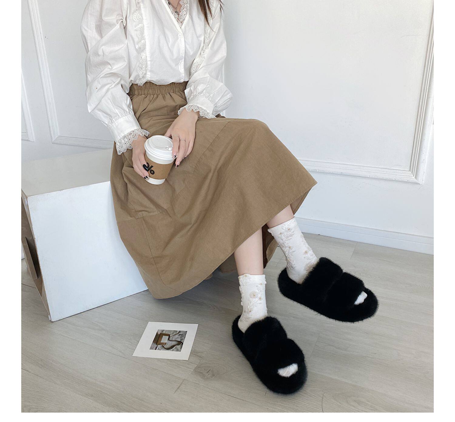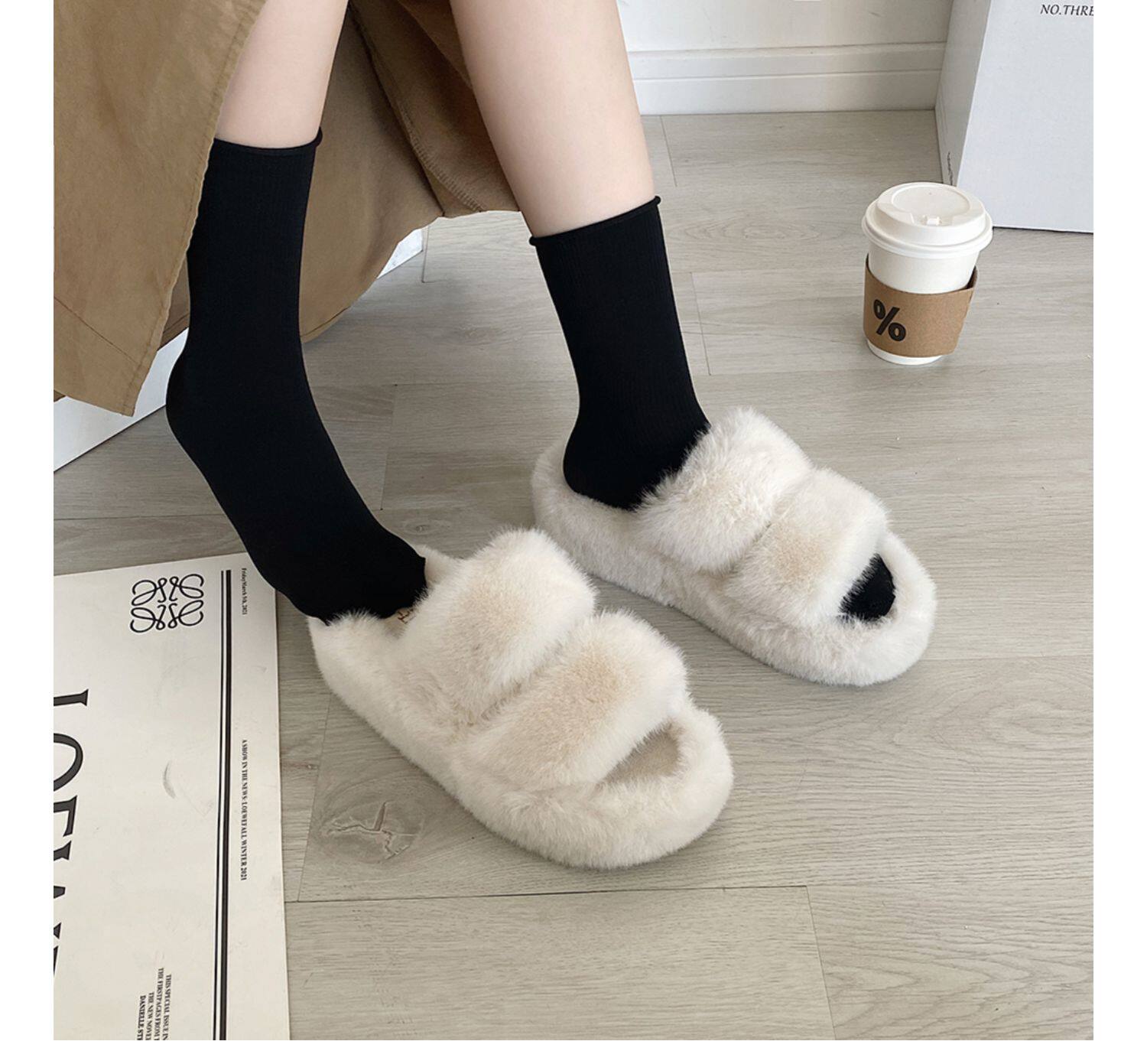 Белые тапочки, милая черная зимняя высокая обувь на платформе