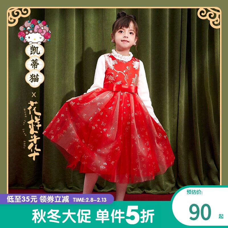 Hello Kitty, весенний красный наряд маленькой принцессы, вечернее платье, детская одежда, подходит для подростков