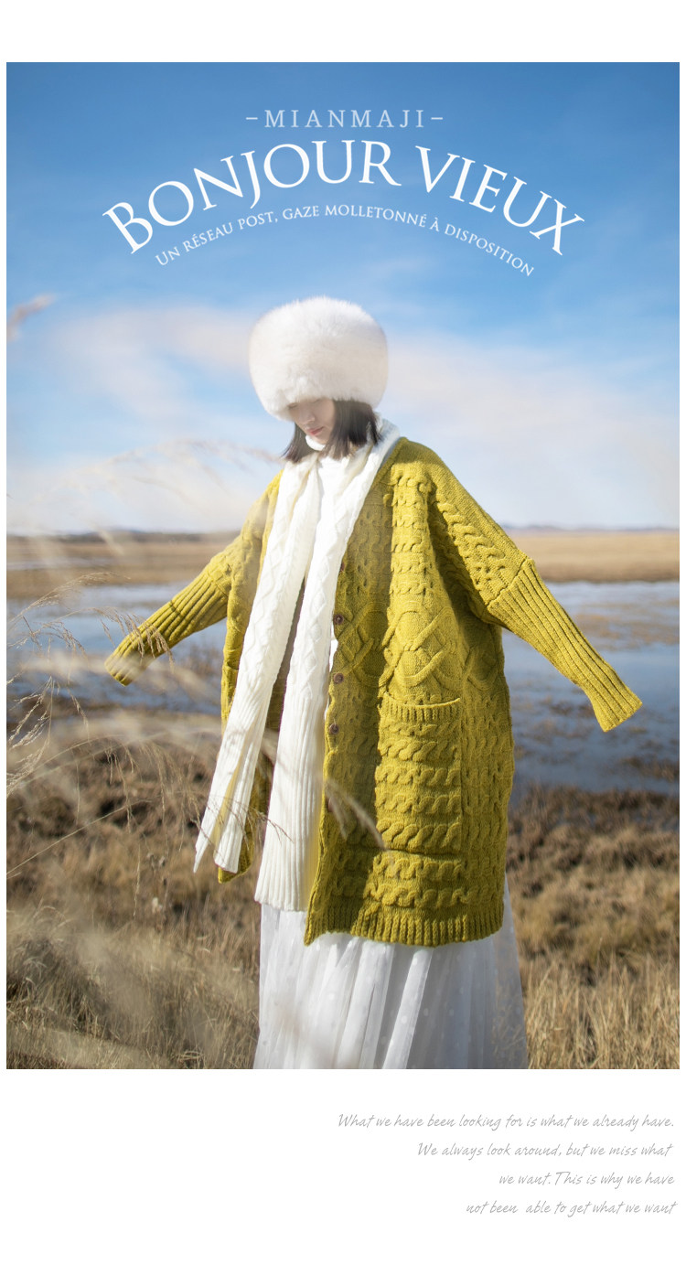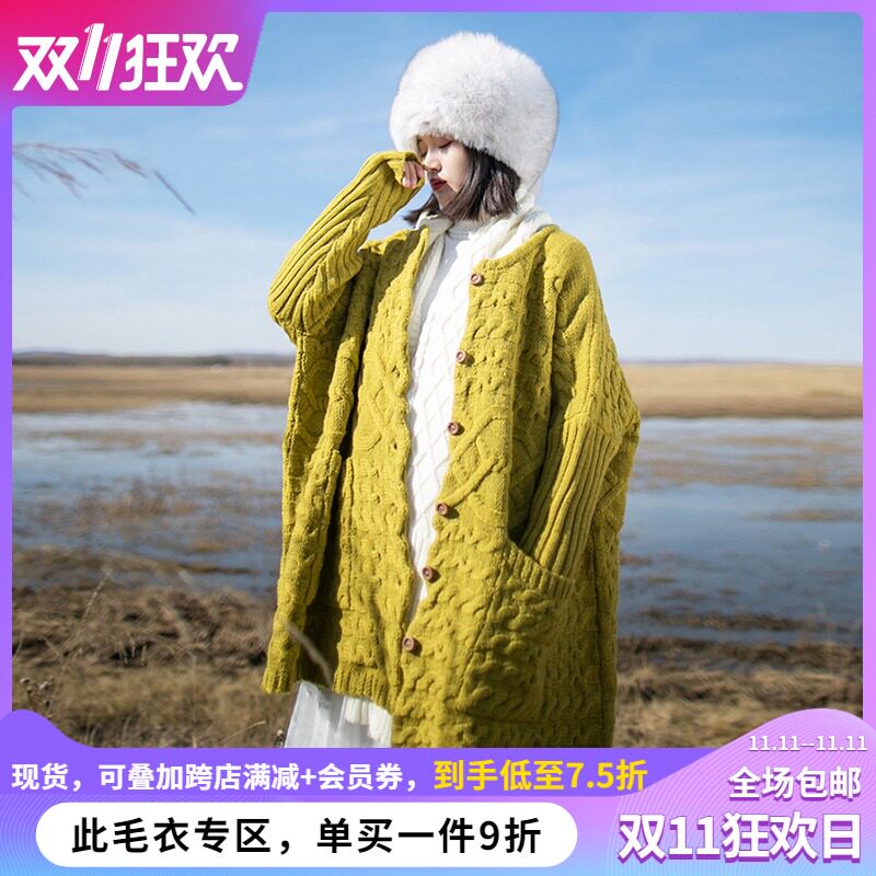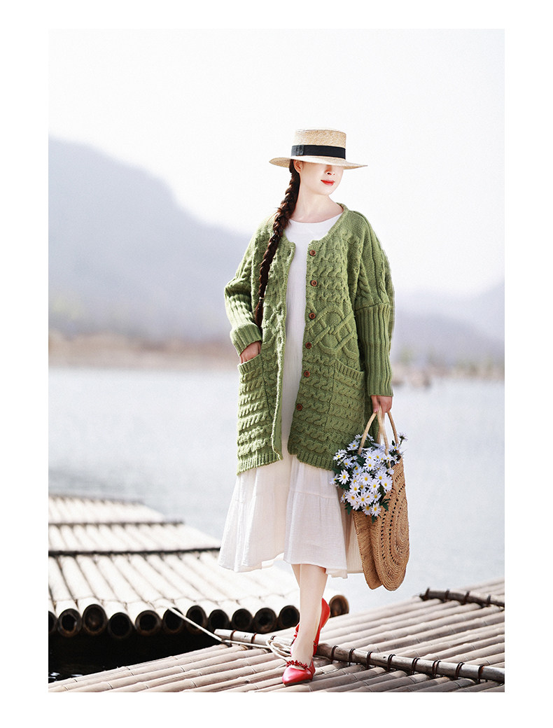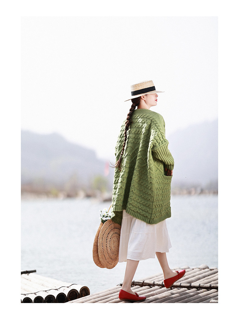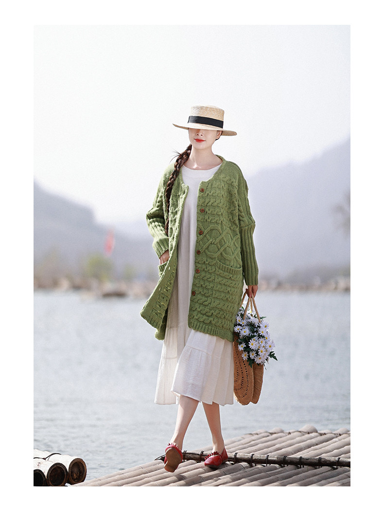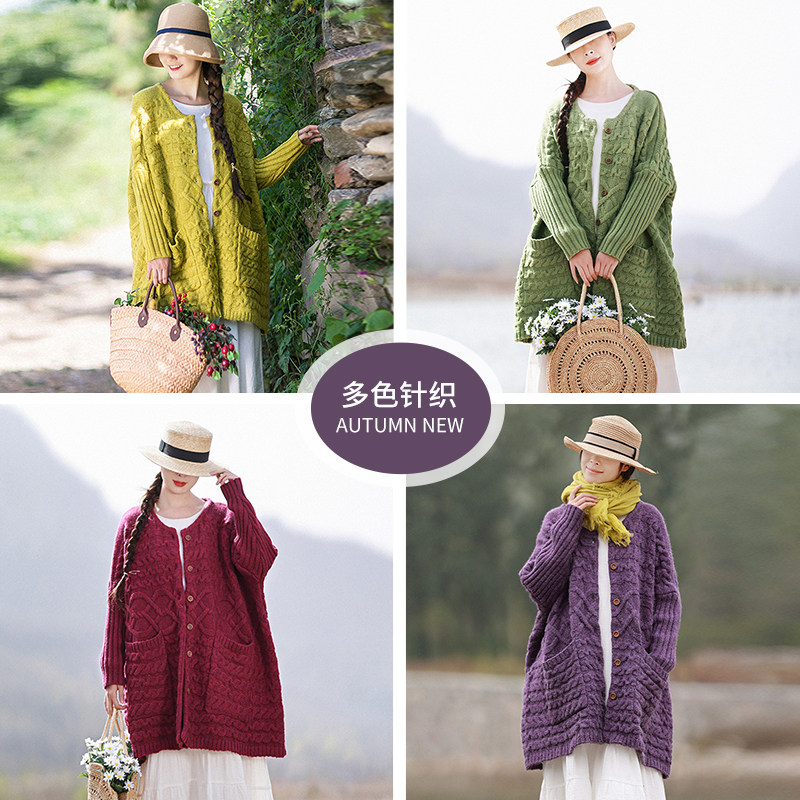Осенний трикотажный свитер, куртка, длинный кардиган, из хлопка и льна, увеличенная толщина, коллекция 2021, средней длины