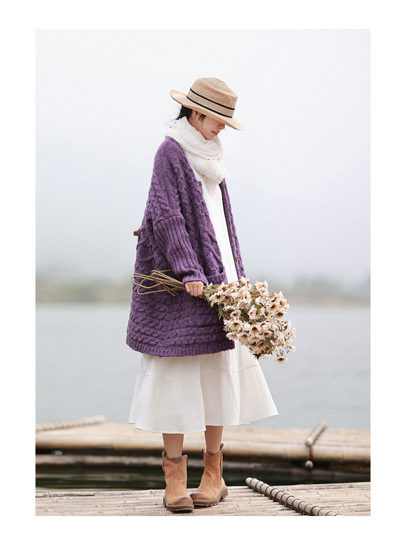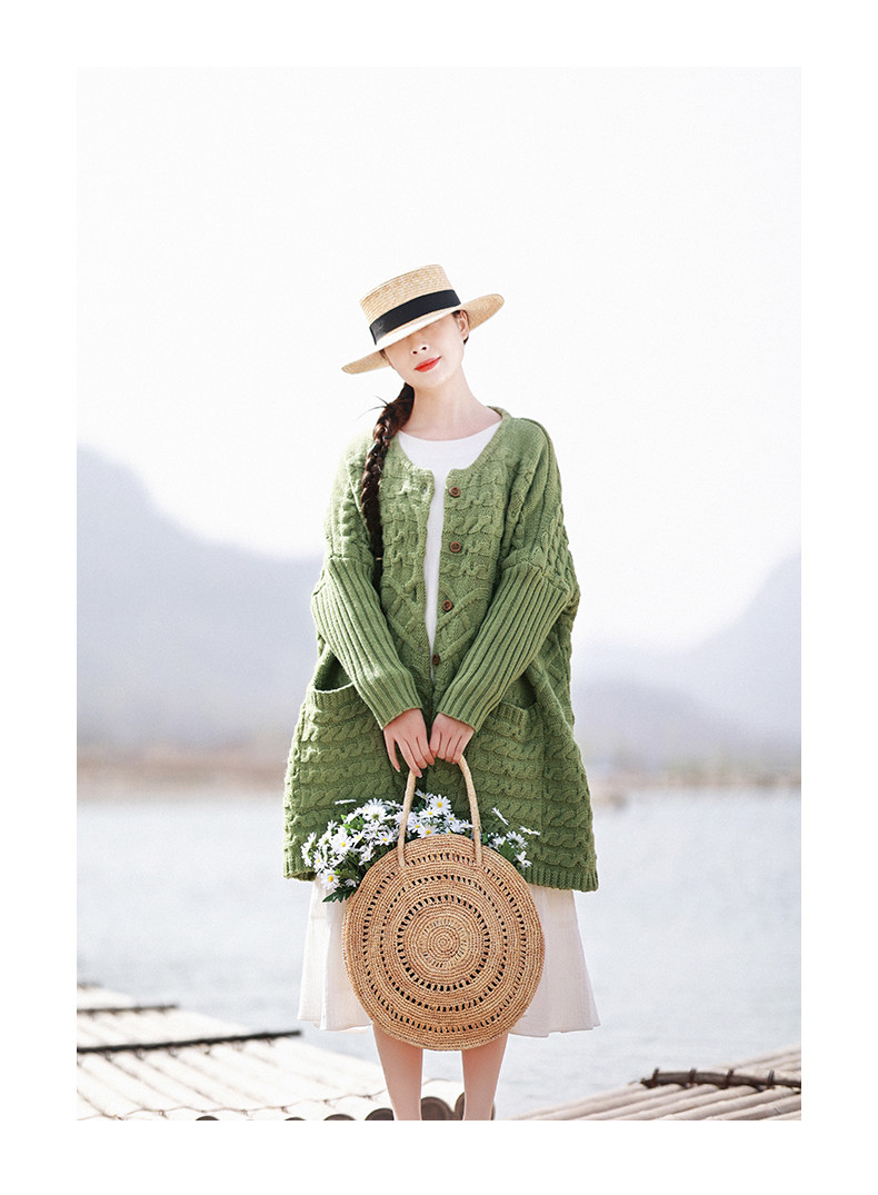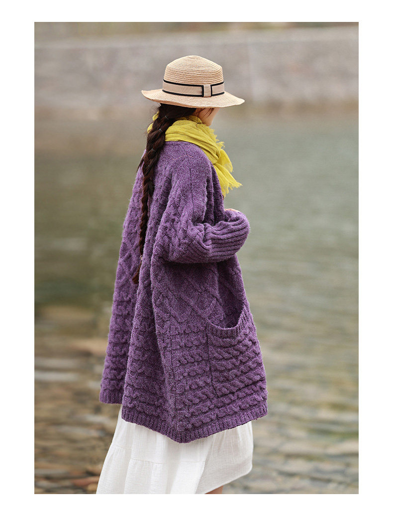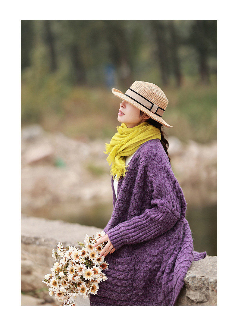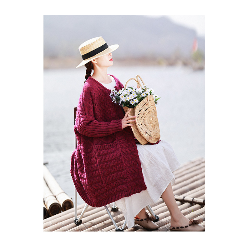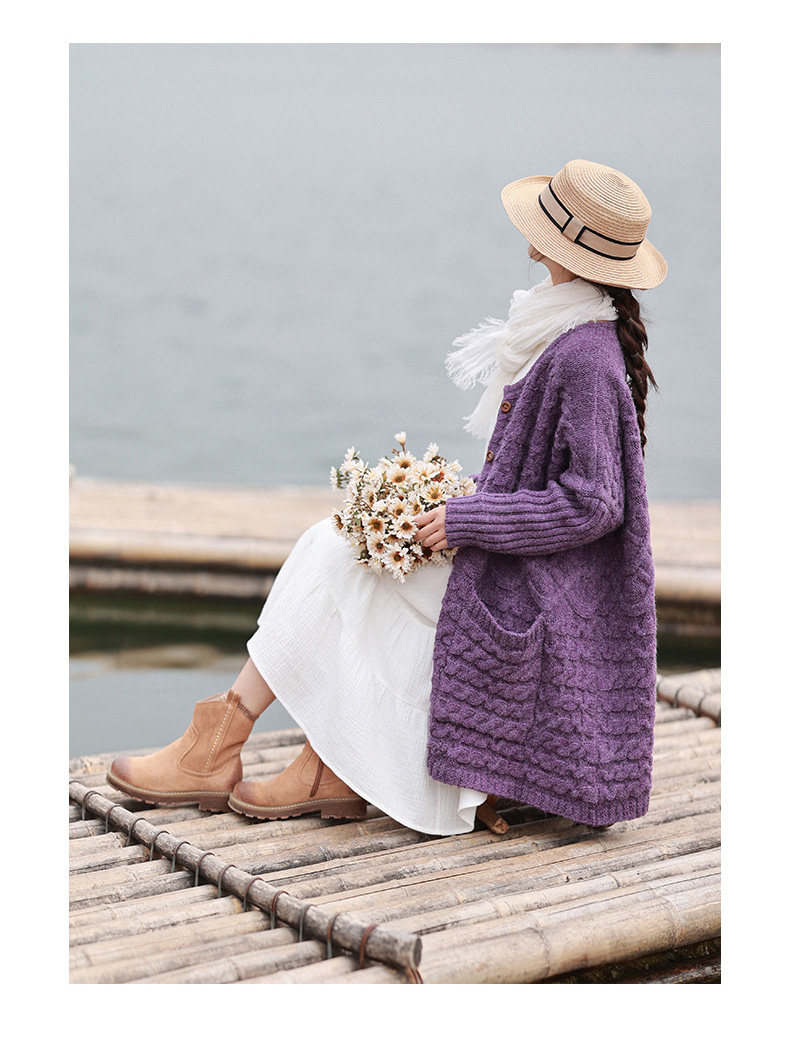 Осенний трикотажный свитер, куртка, длинный кардиган, из хлопка и льна, увеличенная толщина, коллекция 2021, средней длины