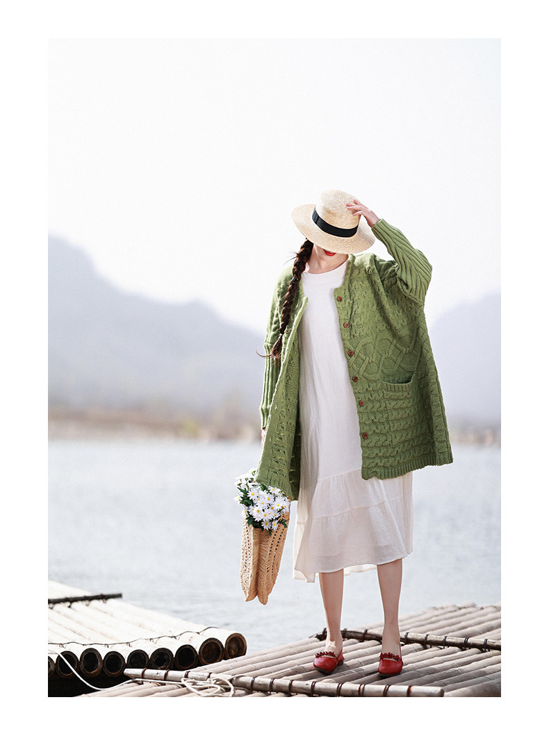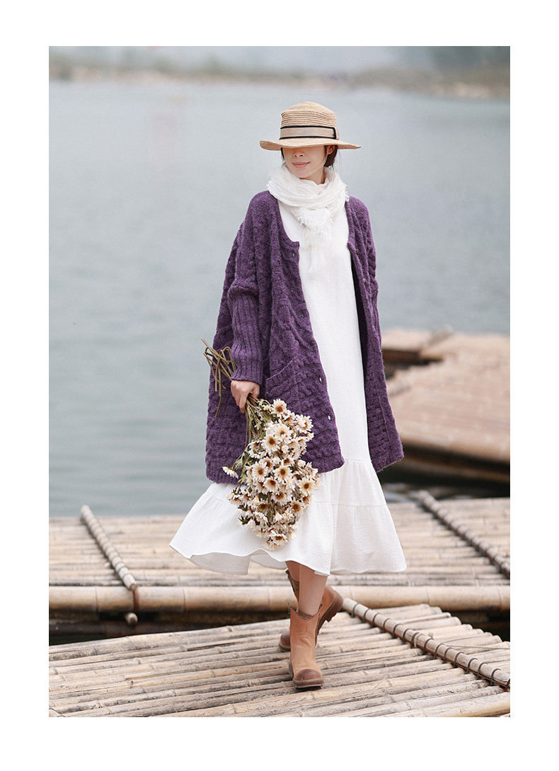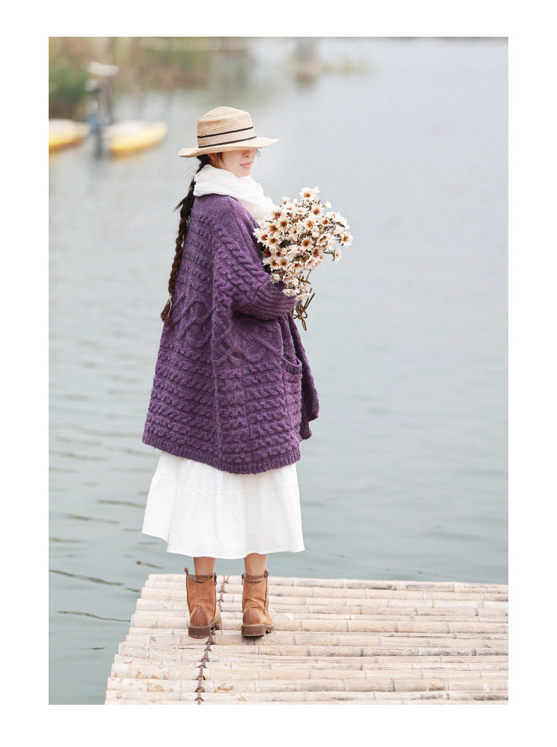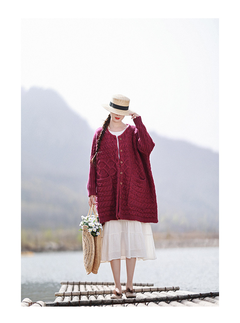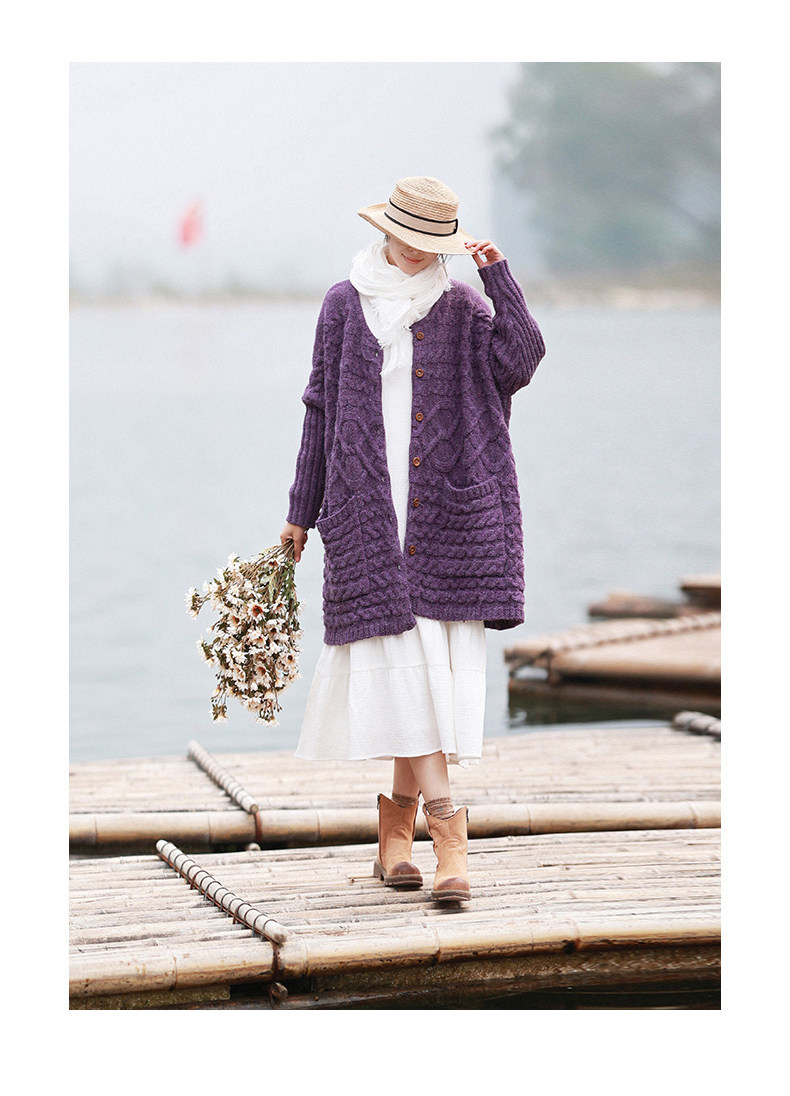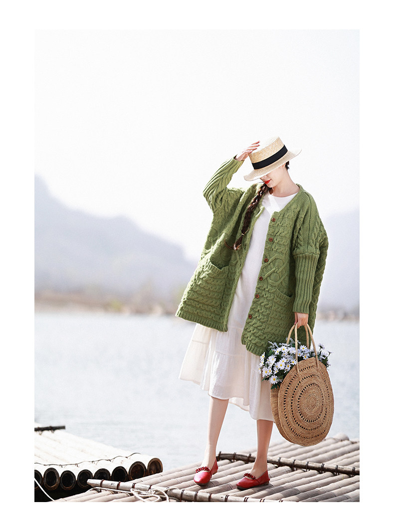 Осенний трикотажный свитер, куртка, длинный кардиган, из хлопка и льна, увеличенная толщина, коллекция 2021, средней длины
