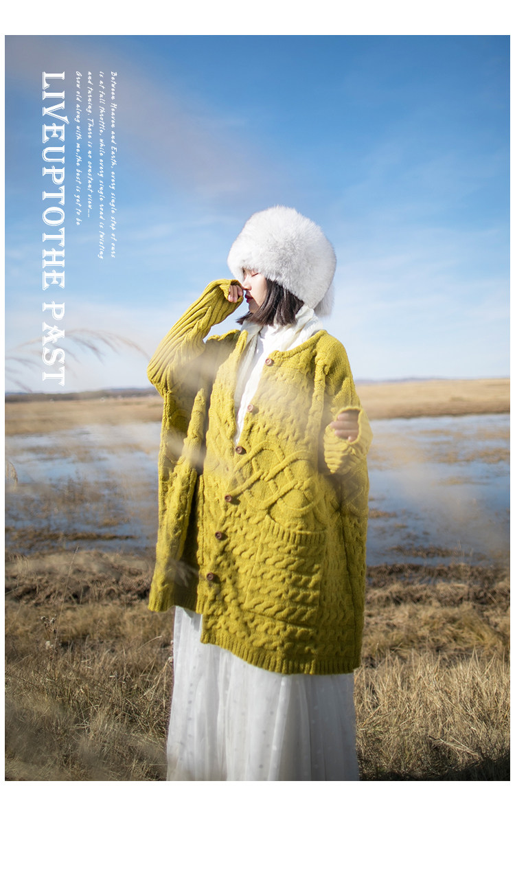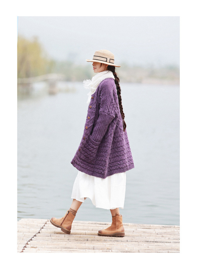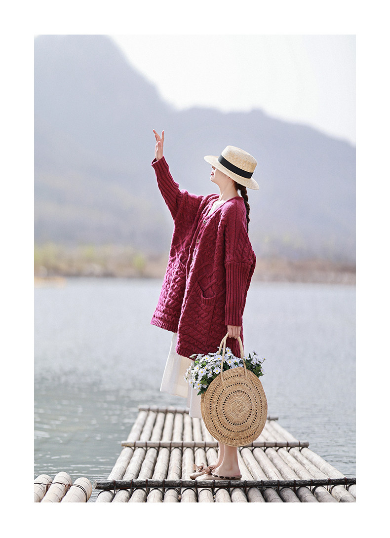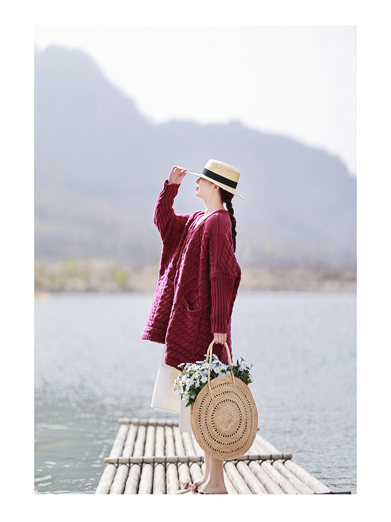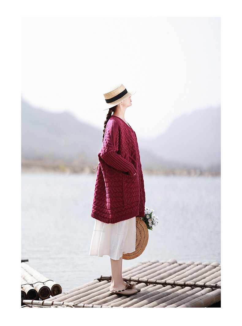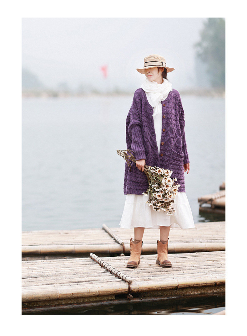 Осенний трикотажный свитер, куртка, длинный кардиган, из хлопка и льна, увеличенная толщина, коллекция 2021, средней длины