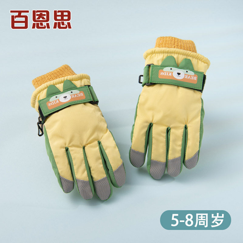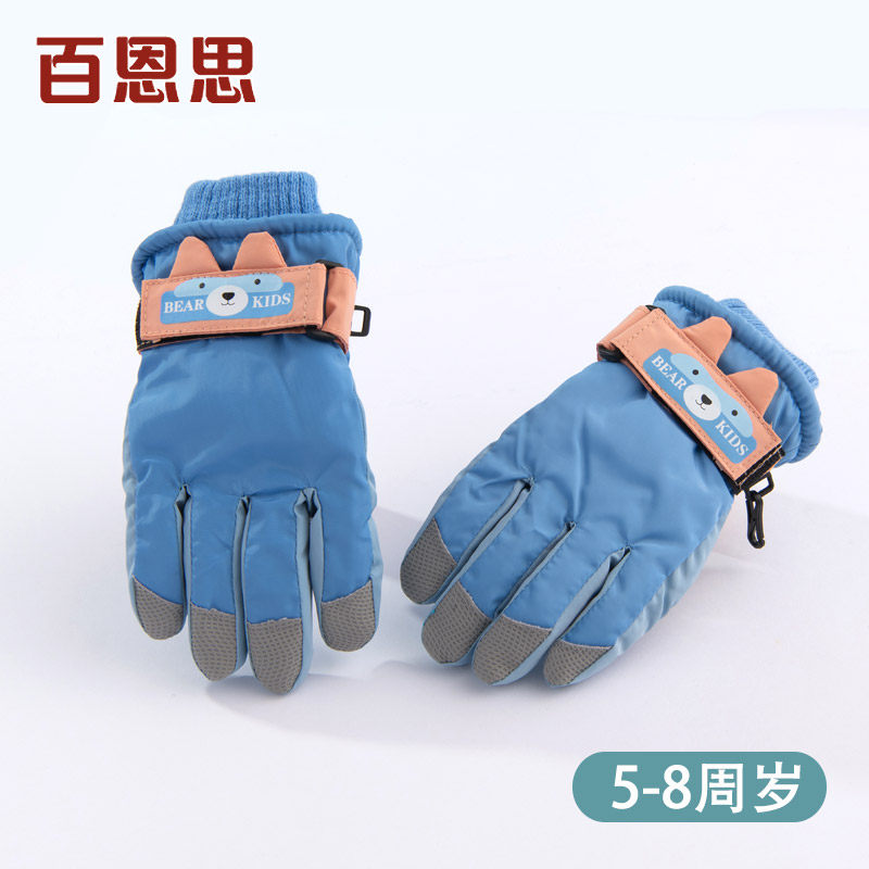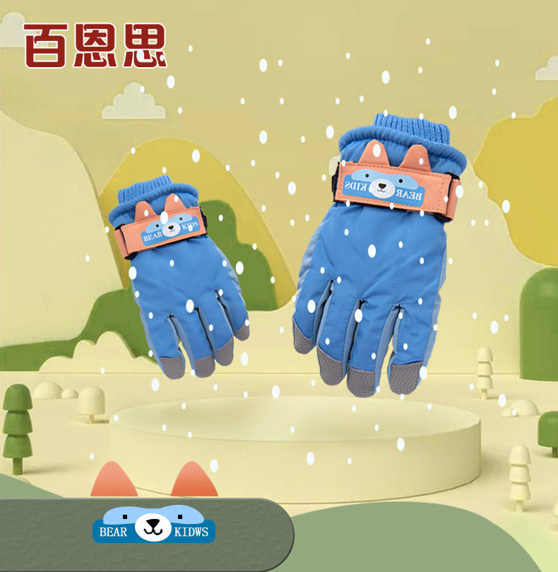 Детские лыжные зимние удерживающие тепло утепленные водонепроницаемые нескользящие мультяшные перчатки подходит для мужчин и женщин