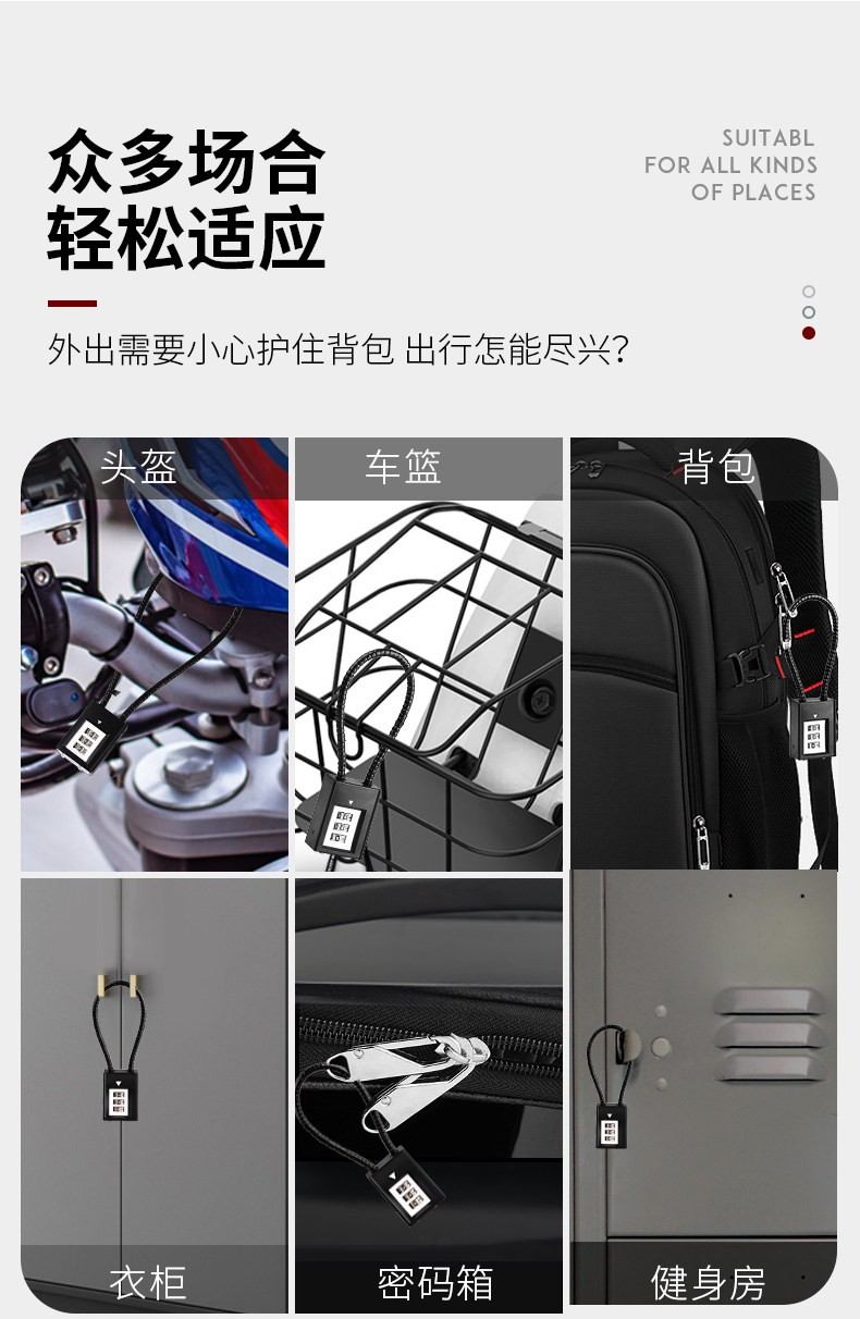 Стальная проволочная блокировка пароля блокировки шкафа шкафа шкаф автомобильного блокировки корзины Ключ для маленького блокировки против мягкого мягкого длинного блокировки веревки Daquan