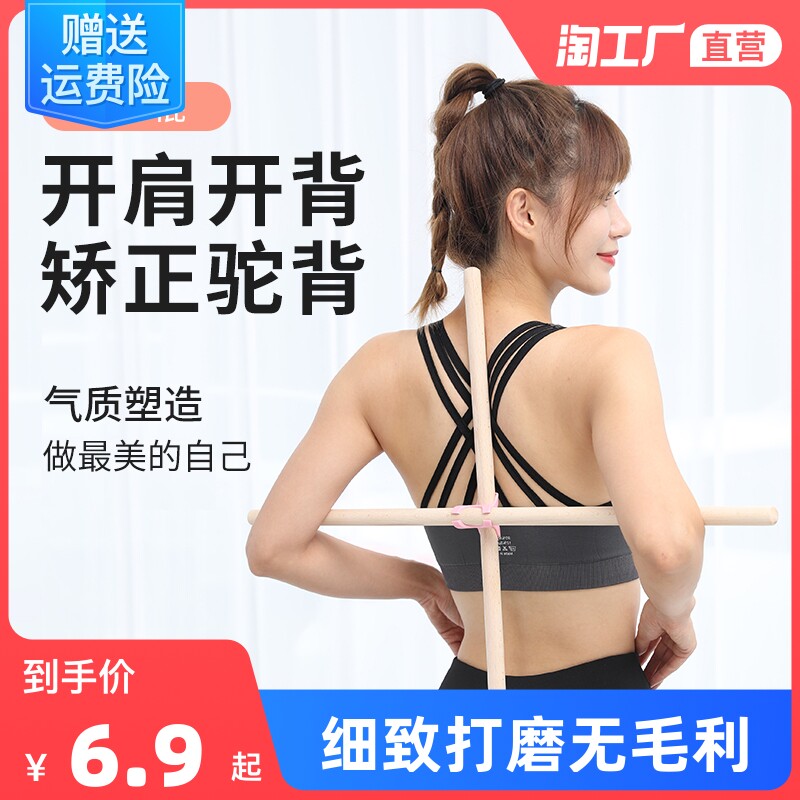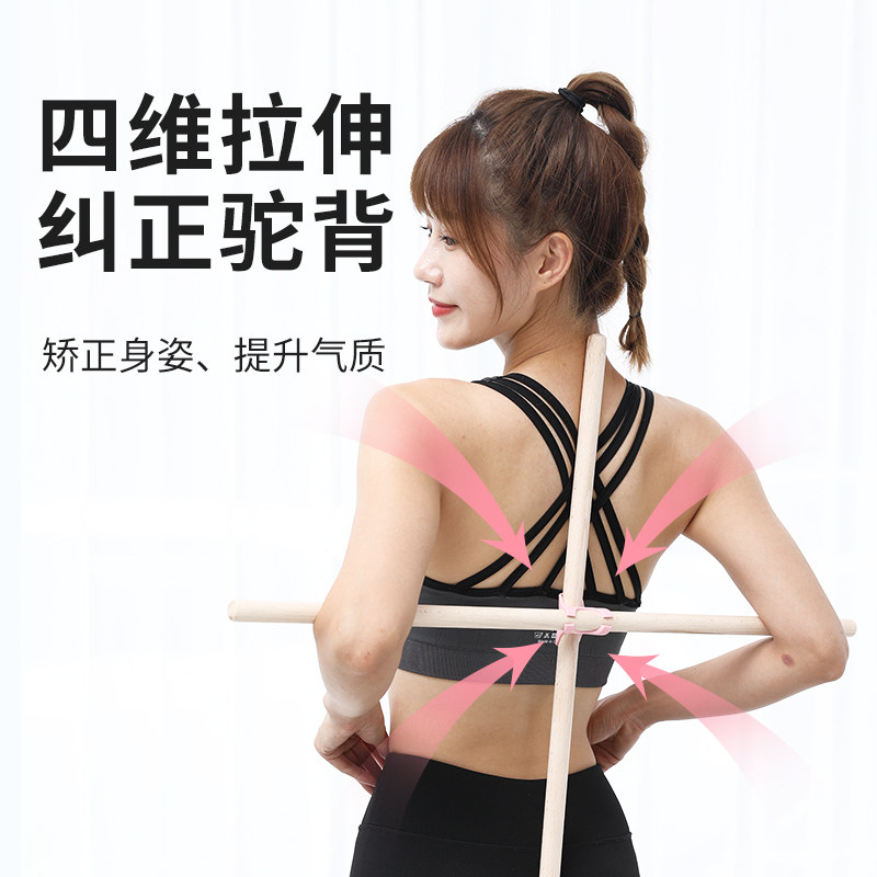 [形体木棍开肩开背神器站姿纠正驼背矫正十字架瑜伽棍训练棒木器材]