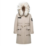 Демисезонный лыжный костюм с капюшоном, корсет, длинный пуховик, средней длины