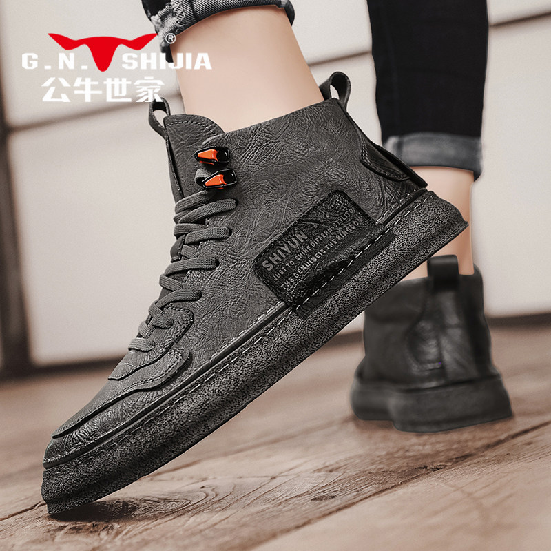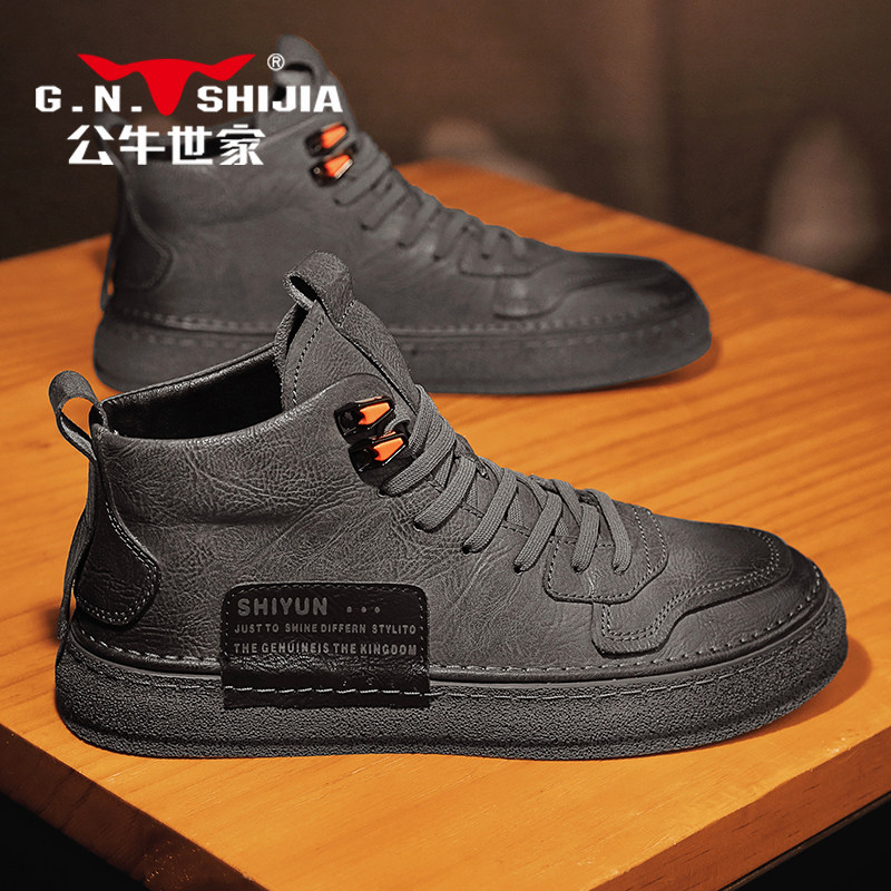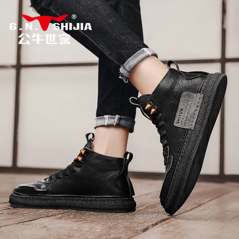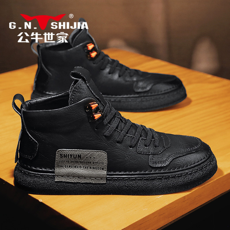 Обувь, высокие черные кроссовки для отдыха для кожаной обуви, коллекция 2023, из натуральной кожи