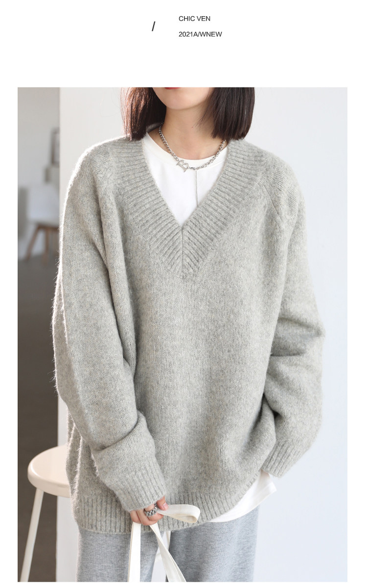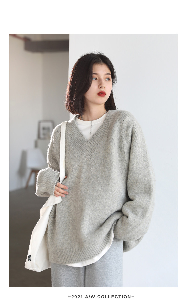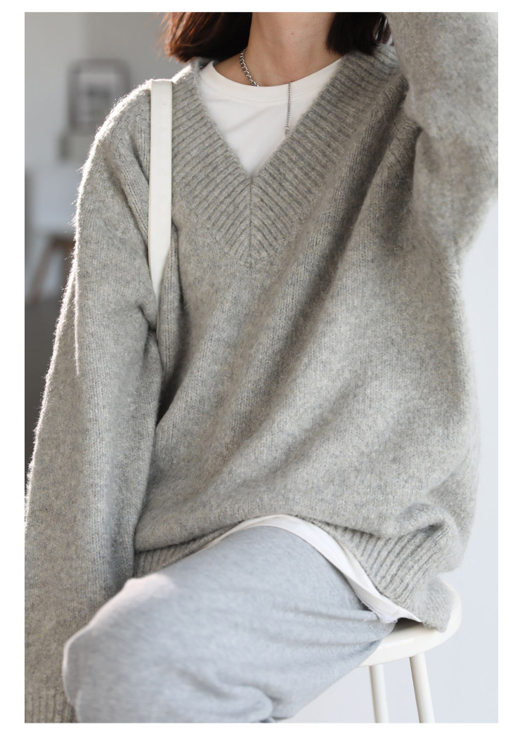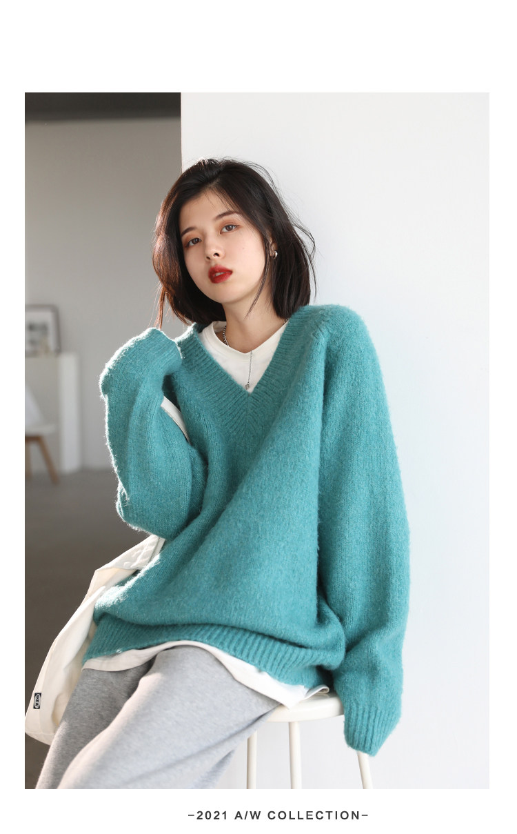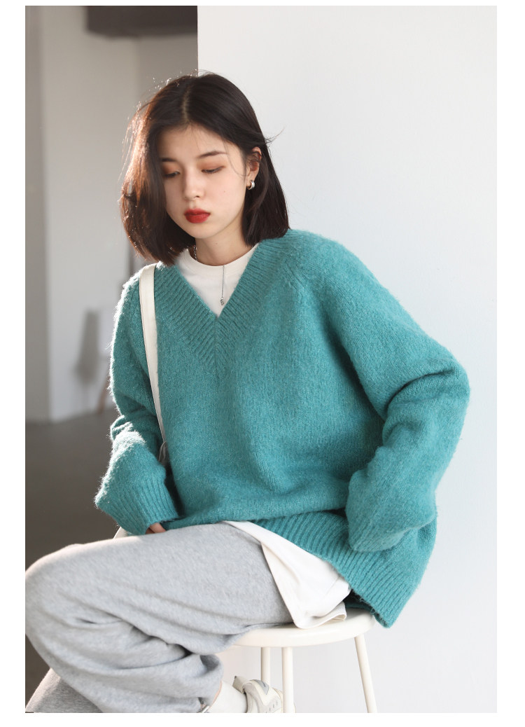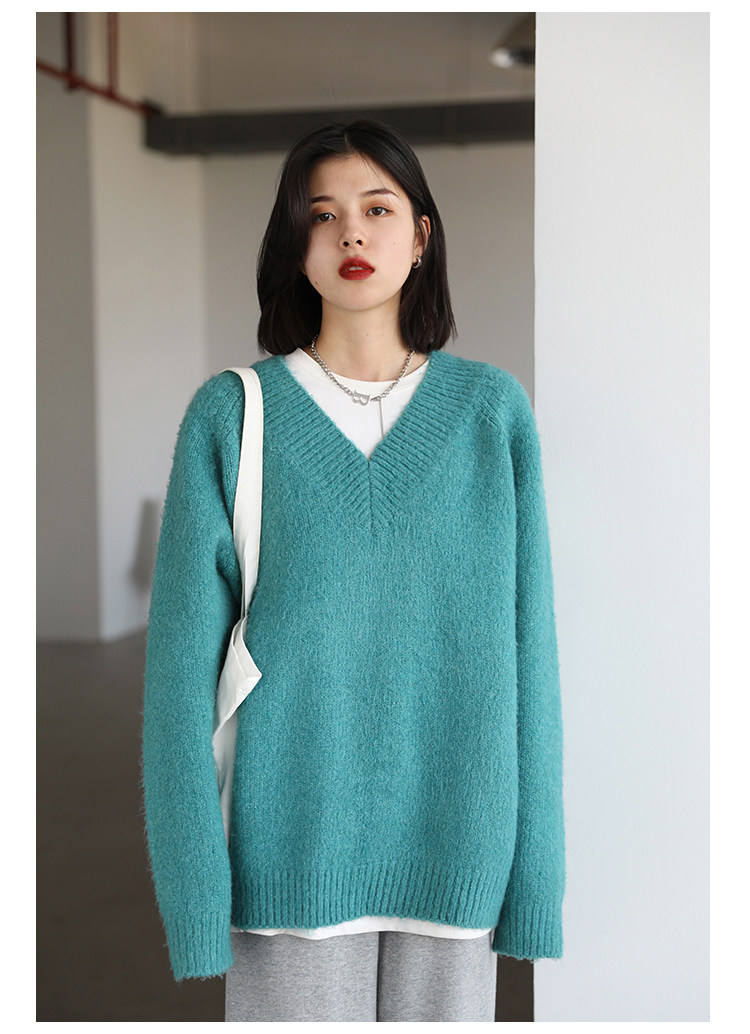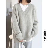 Шикарное «бесплатное продолжение» шикарное простая сплошная сплошная цветная v-образное мягкое пуловерное свитер для женского свитера осень