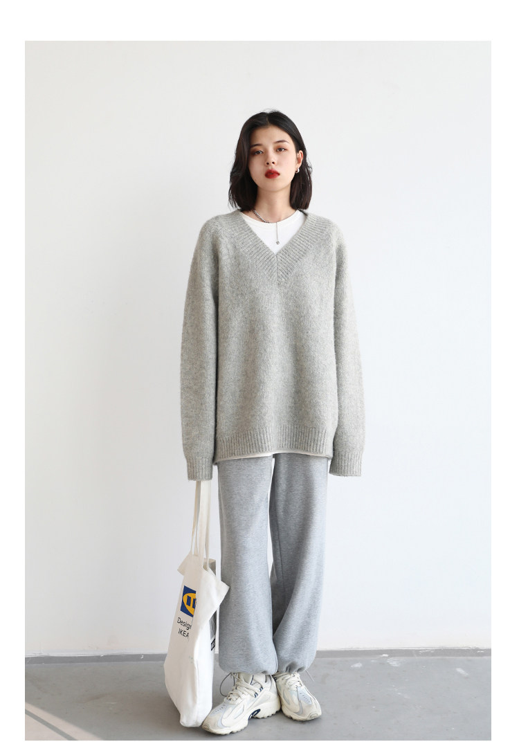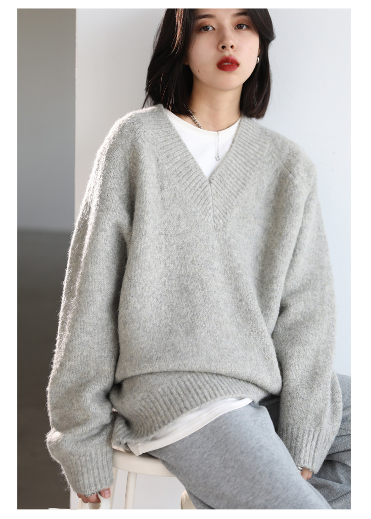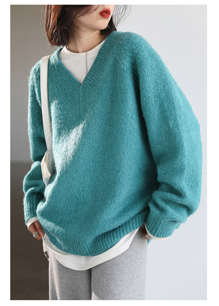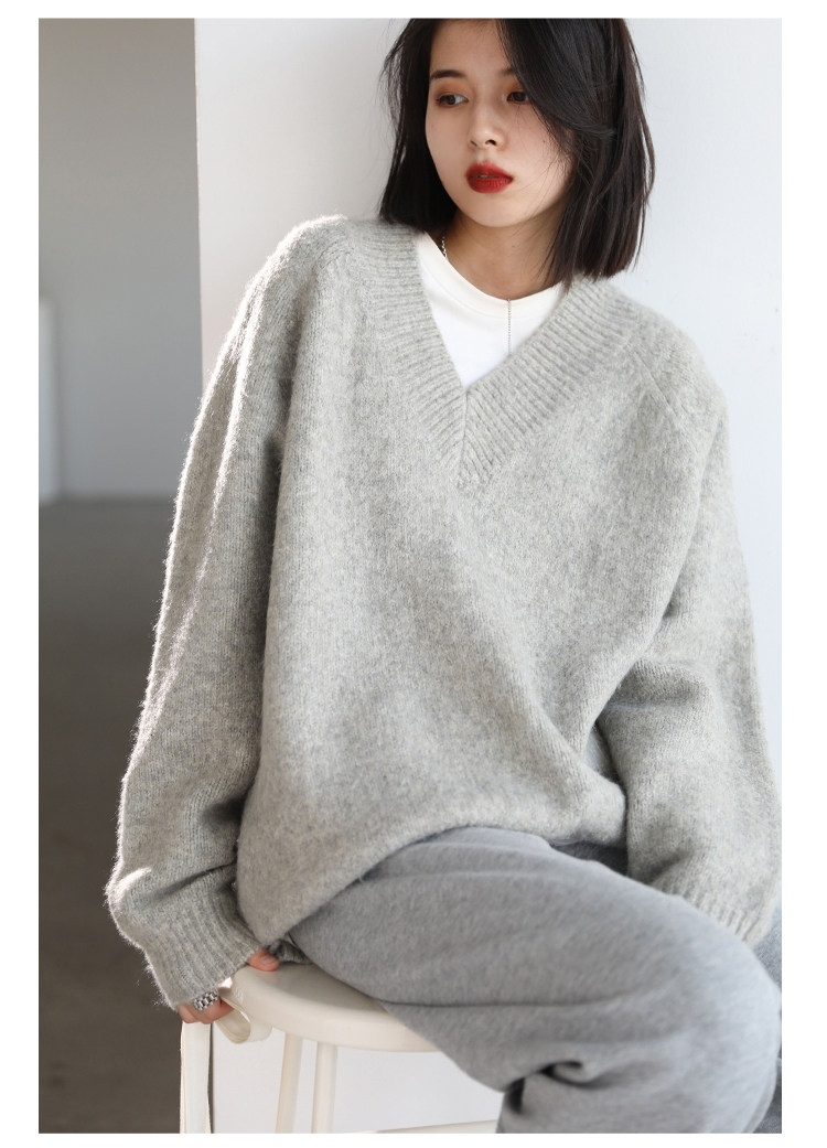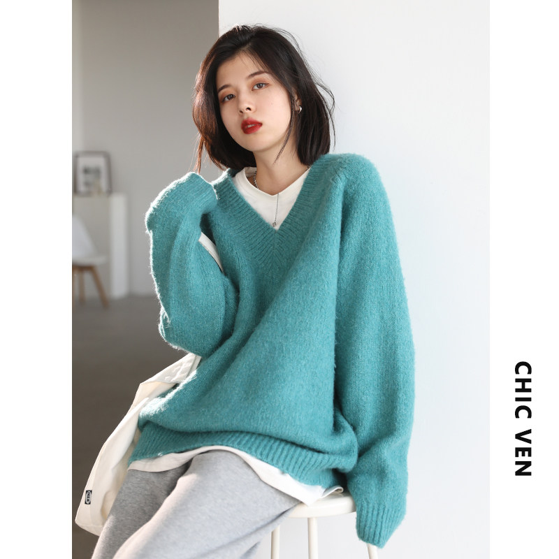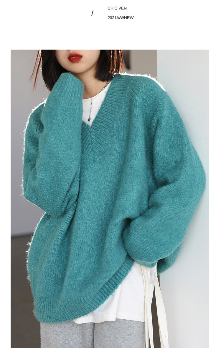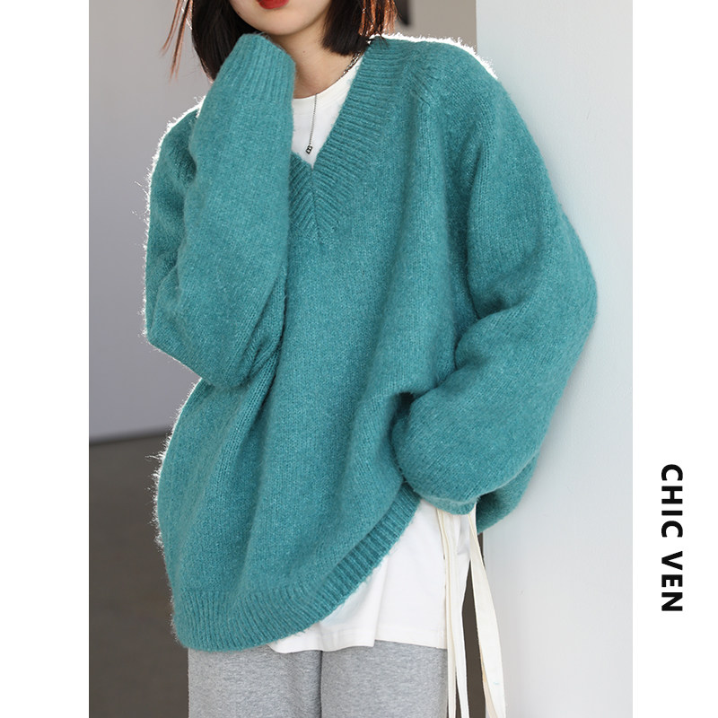 Шикарное «бесплатное продолжение» шикарное простая сплошная сплошная цветная v-образное мягкое пуловерное свитер для женского свитера осень