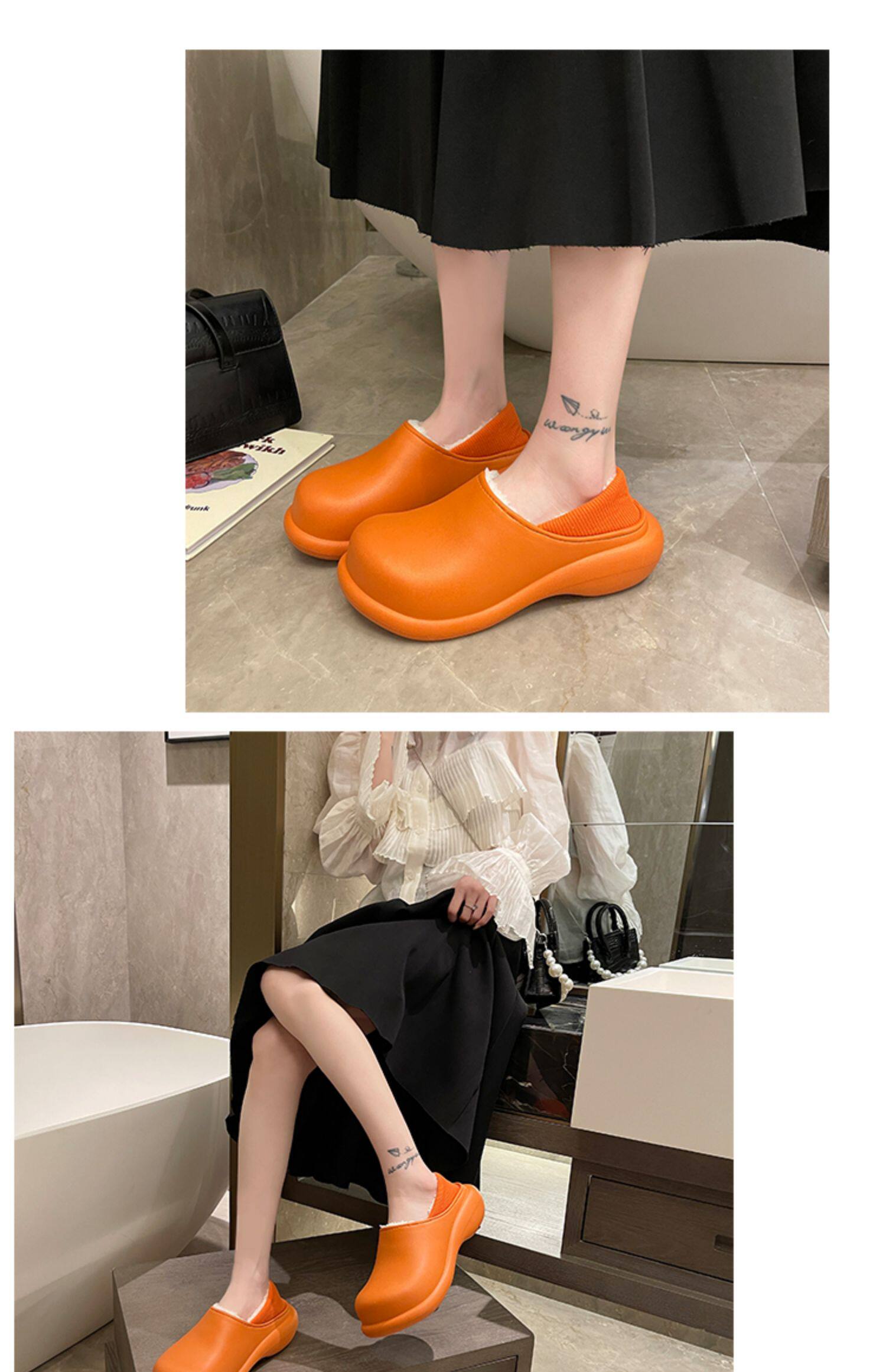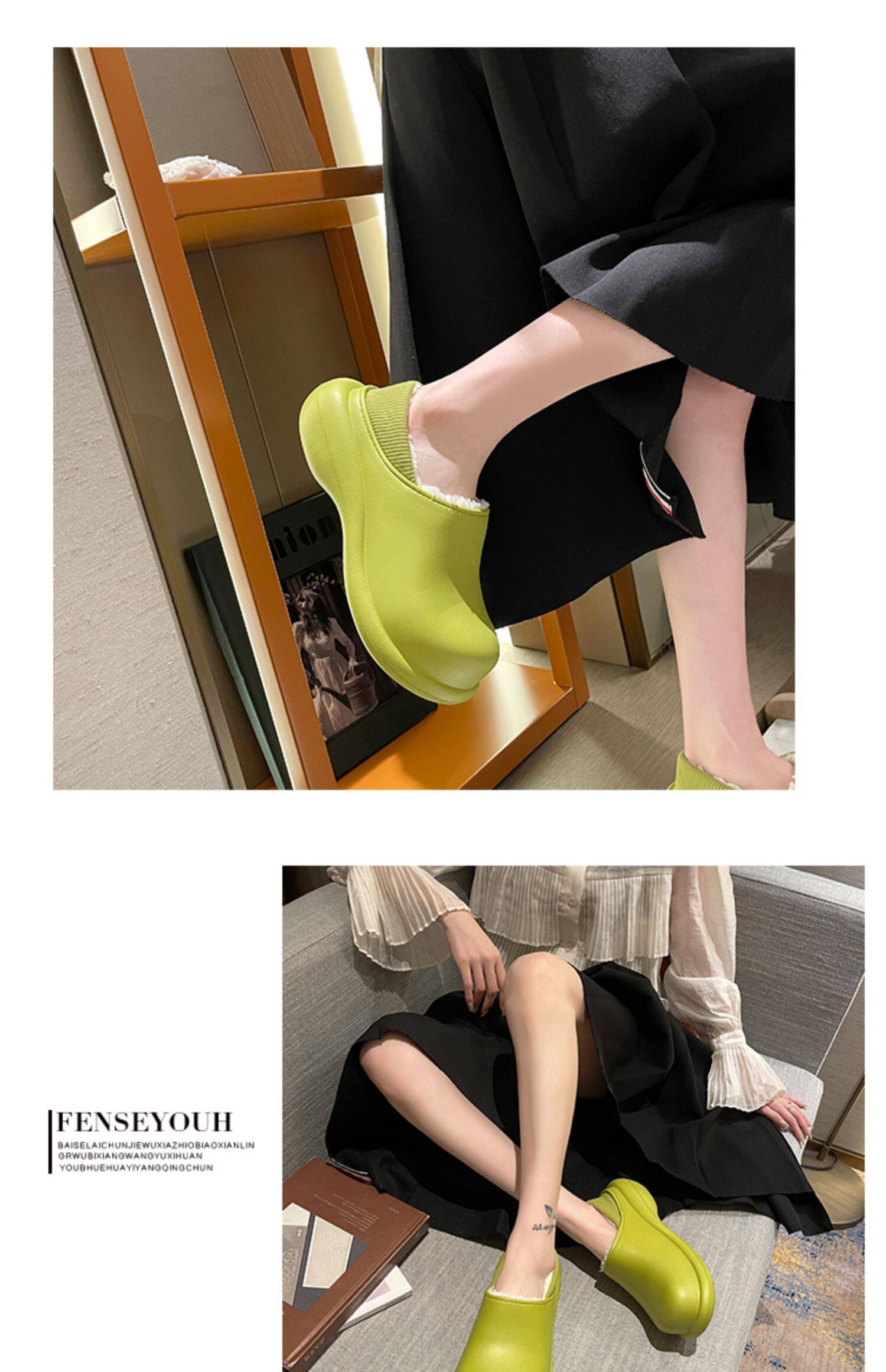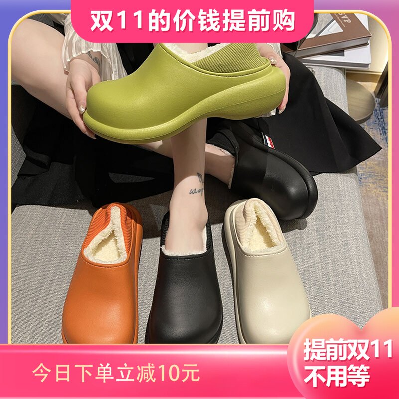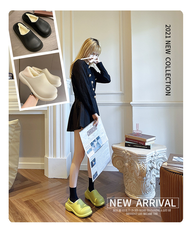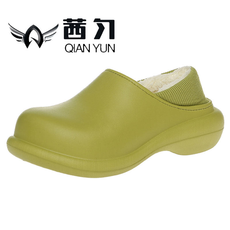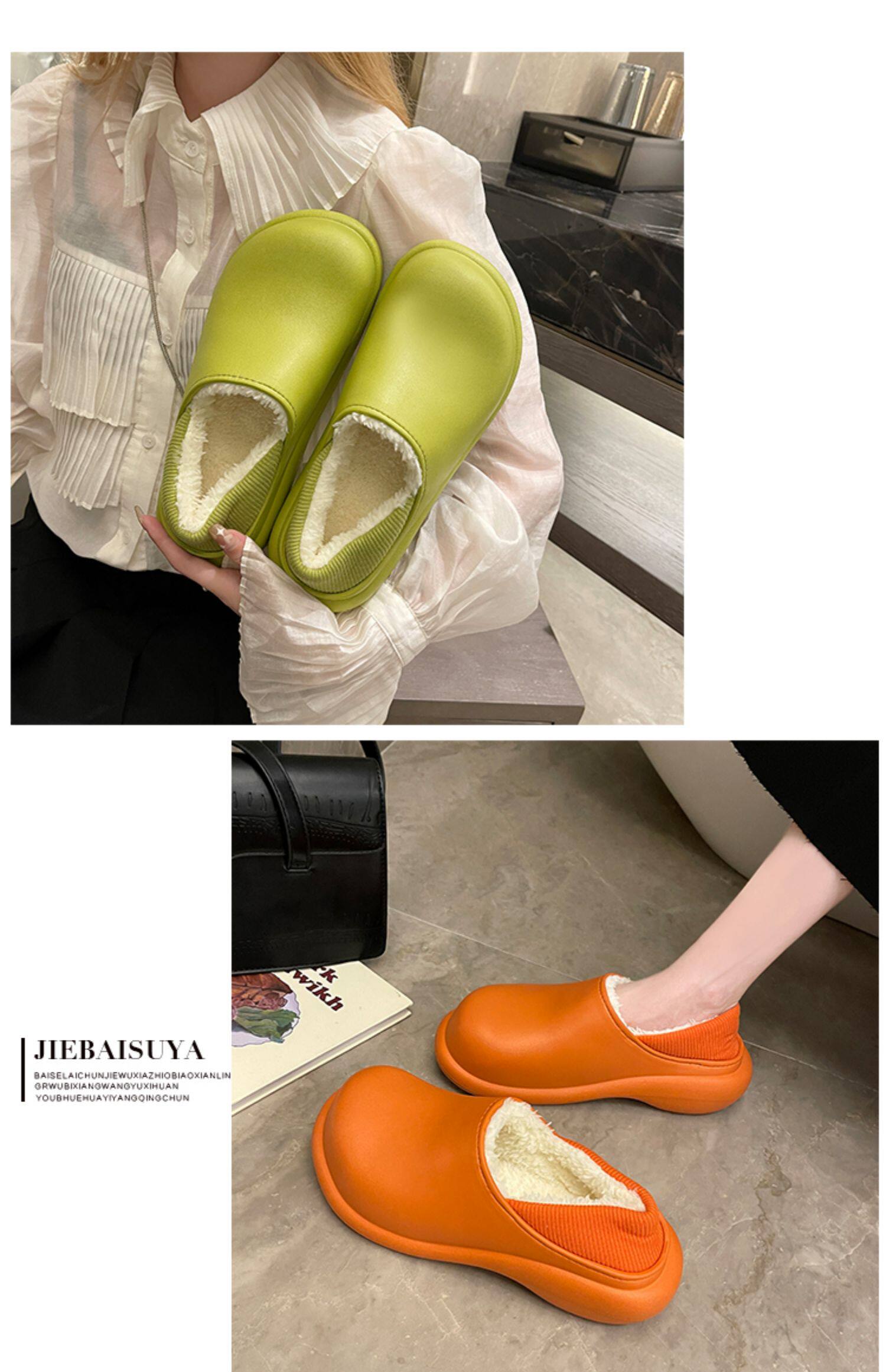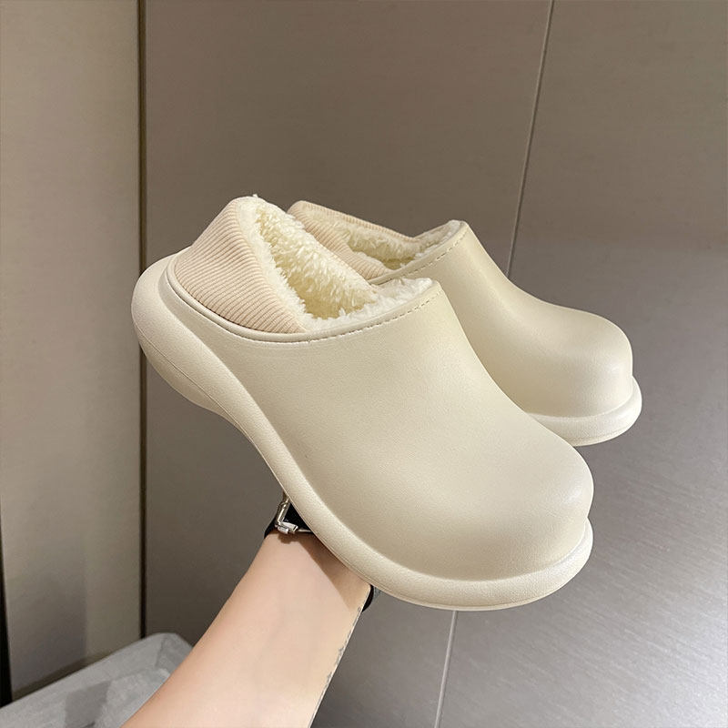 Высокие тапочки, зимняя флисовая удерживающая тепло нескользящая демисезонная обувь на платформе