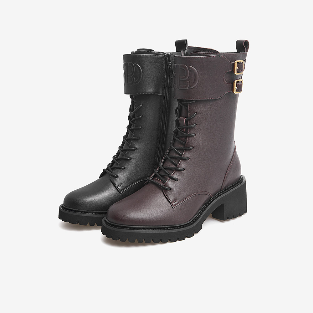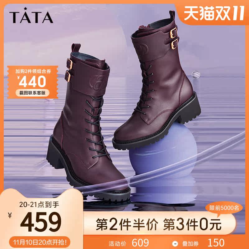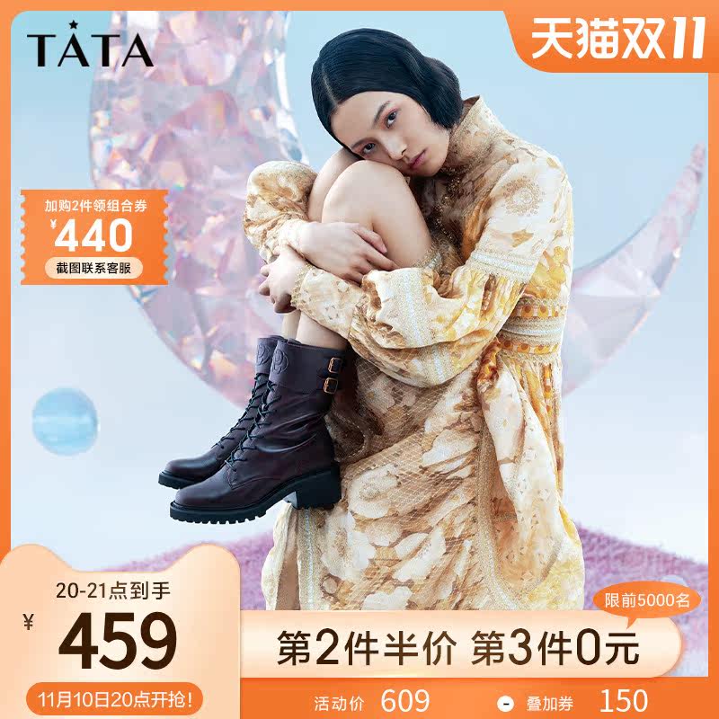 Тата он и ее торговый центр те же сапоги в средней трубе для женщин новые густые каблуки Martin Boots для женщин зимние каблуки.