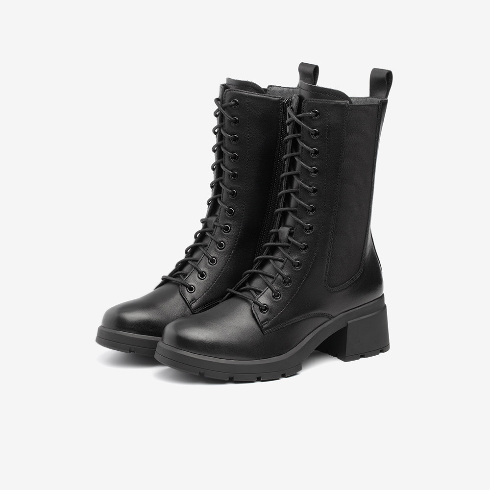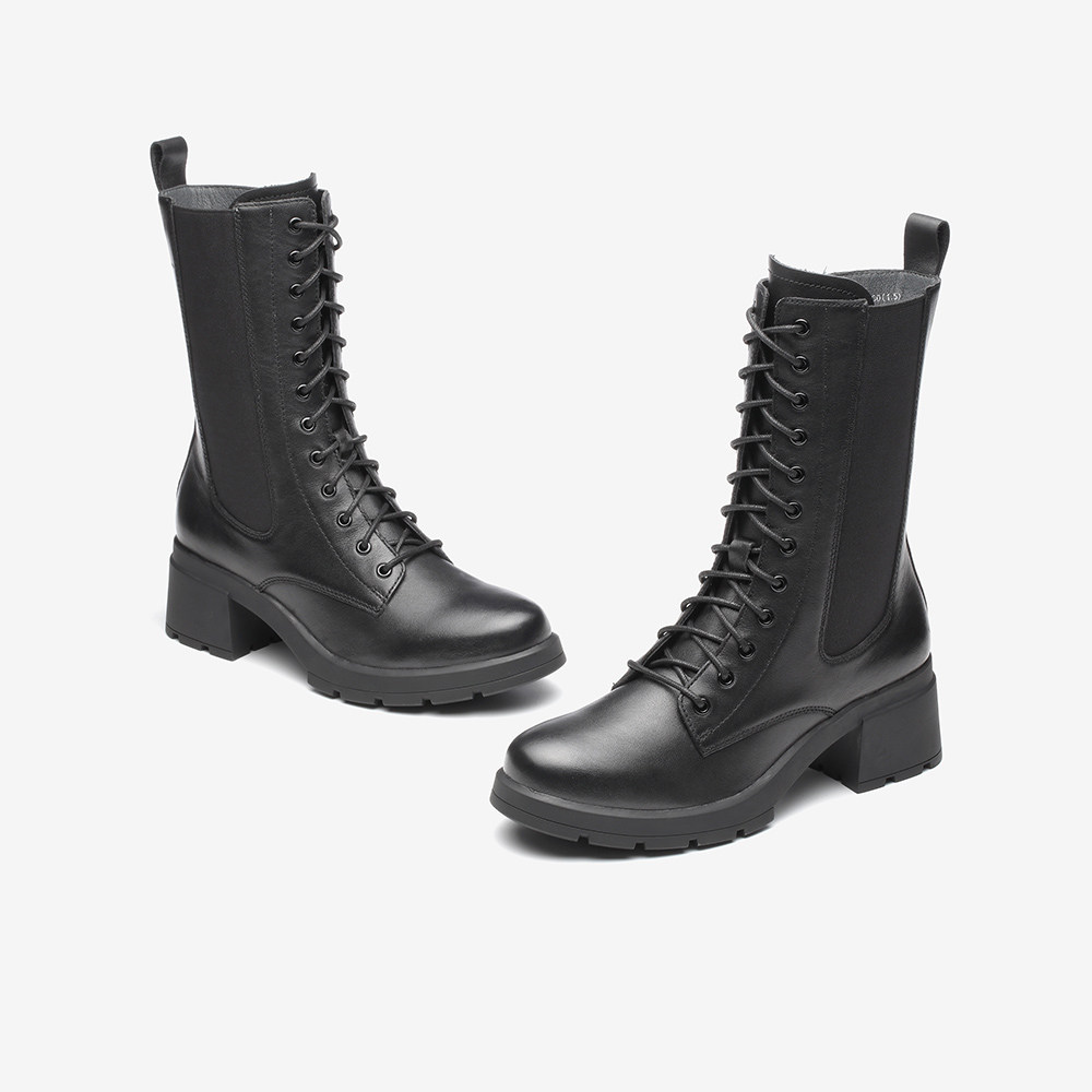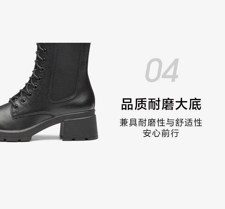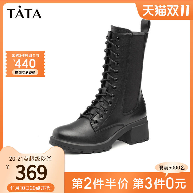 Тата, он и ее торговый центр и те же сапоги в средней трубе для женщин, толстые каблуки, сапоги Мартина, осень плюс бархатные высокие каблуки, универсальный 7bu65dz1