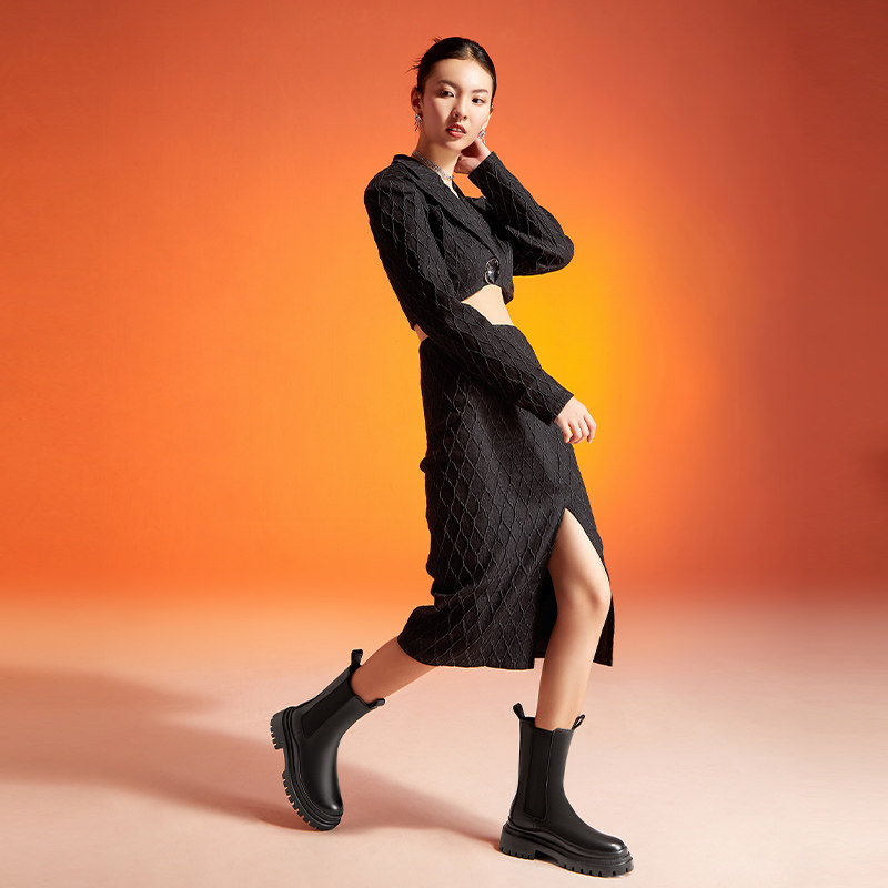 Челси на платформе, зимние сапоги с шестернями, средней длины, коллекция 2021