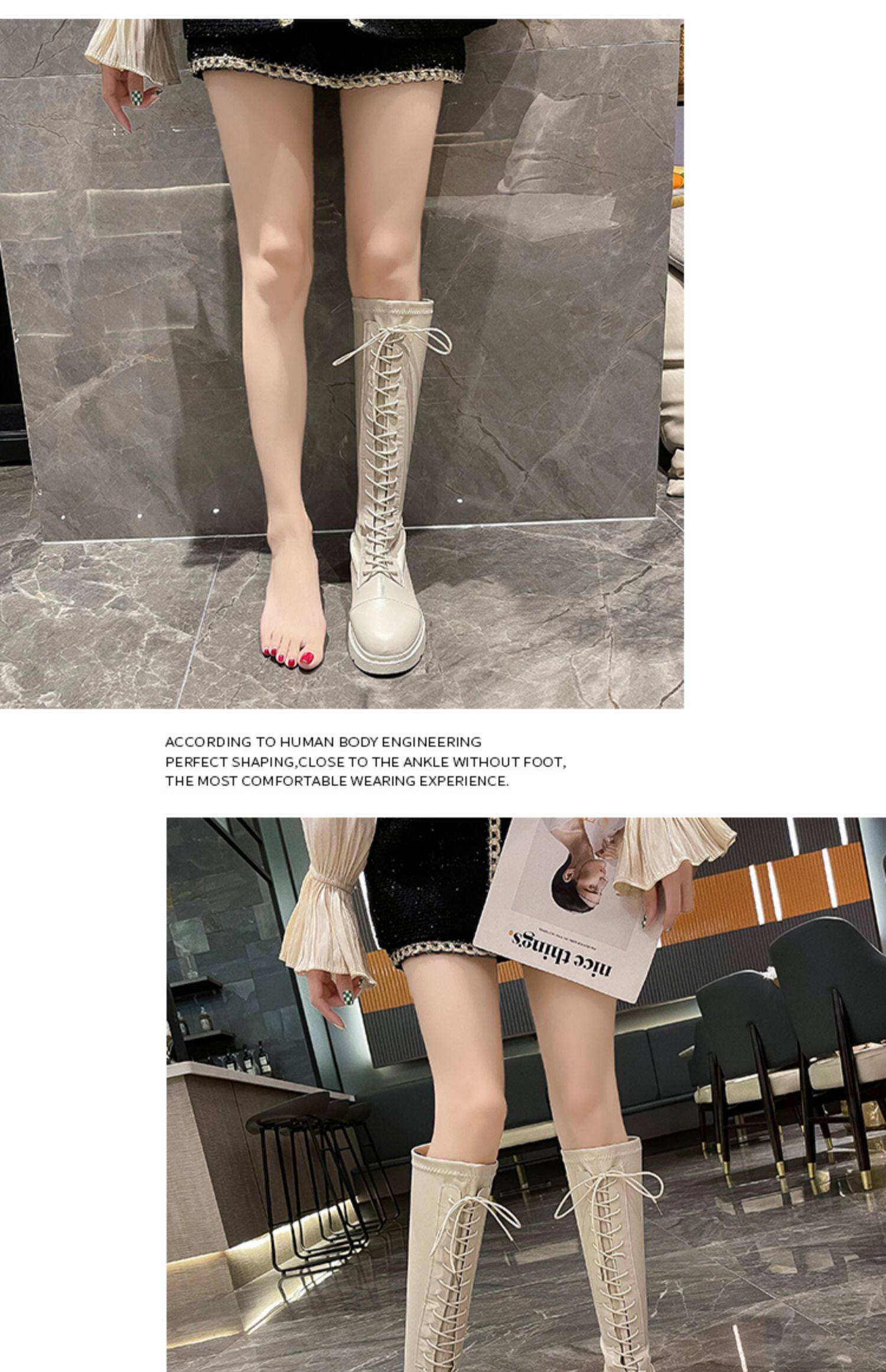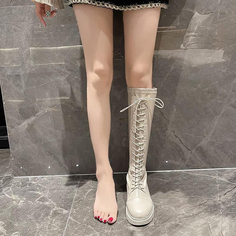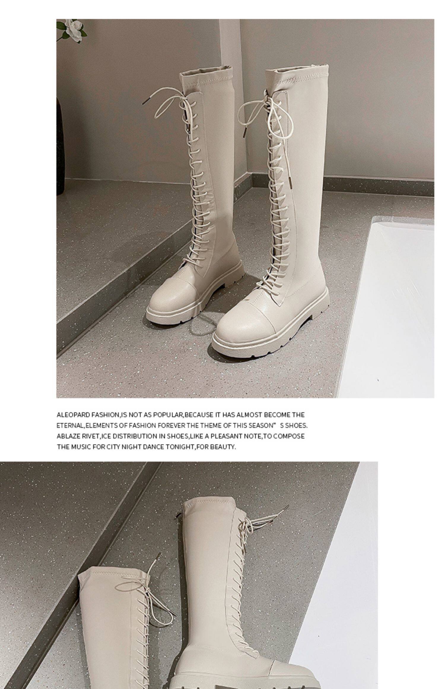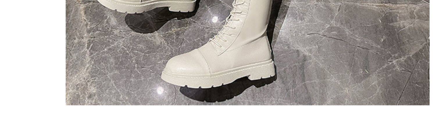 Белые высокие сапоги в английском стиле на платформе, коллекция 2021, в британском стиле