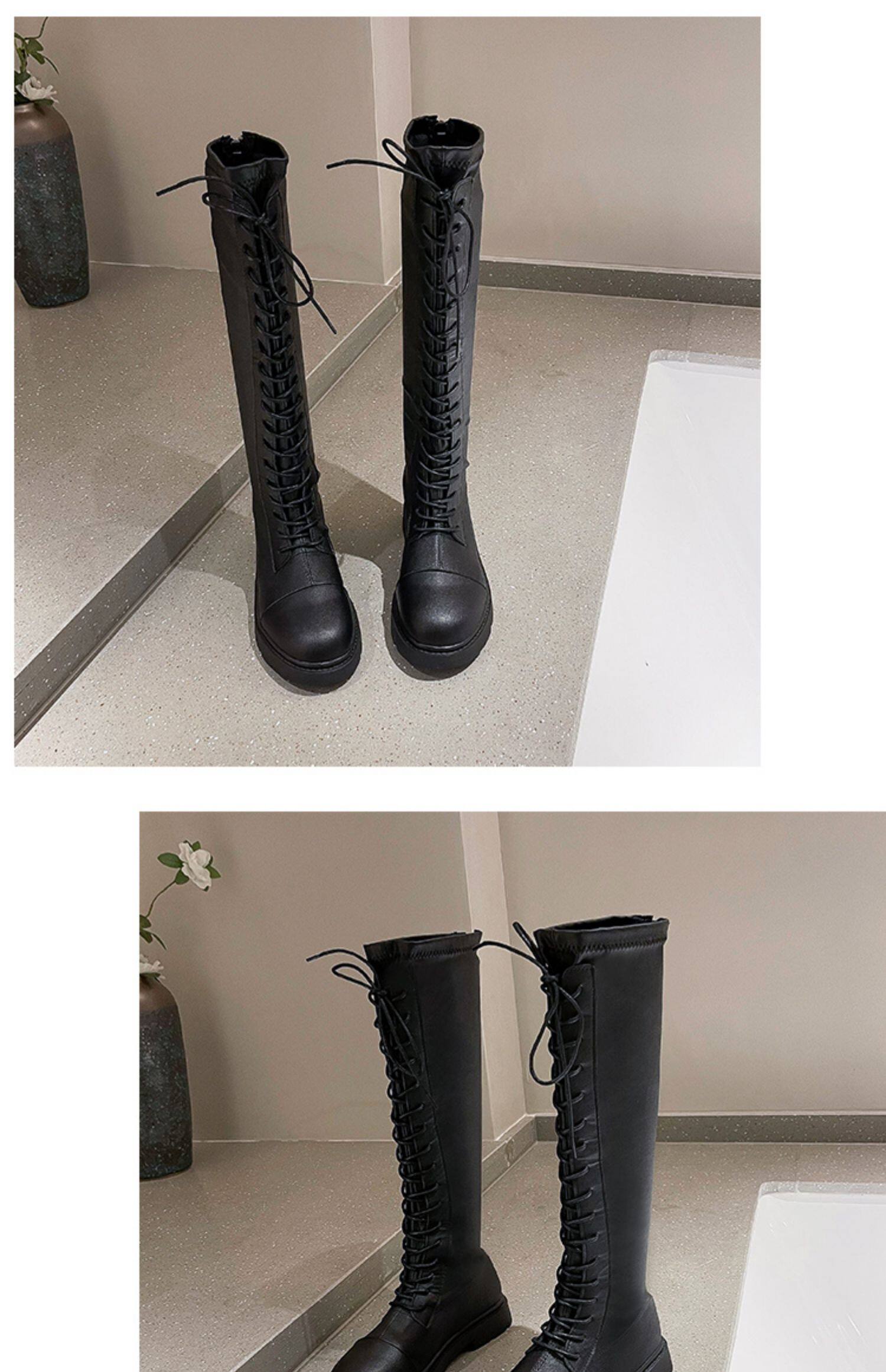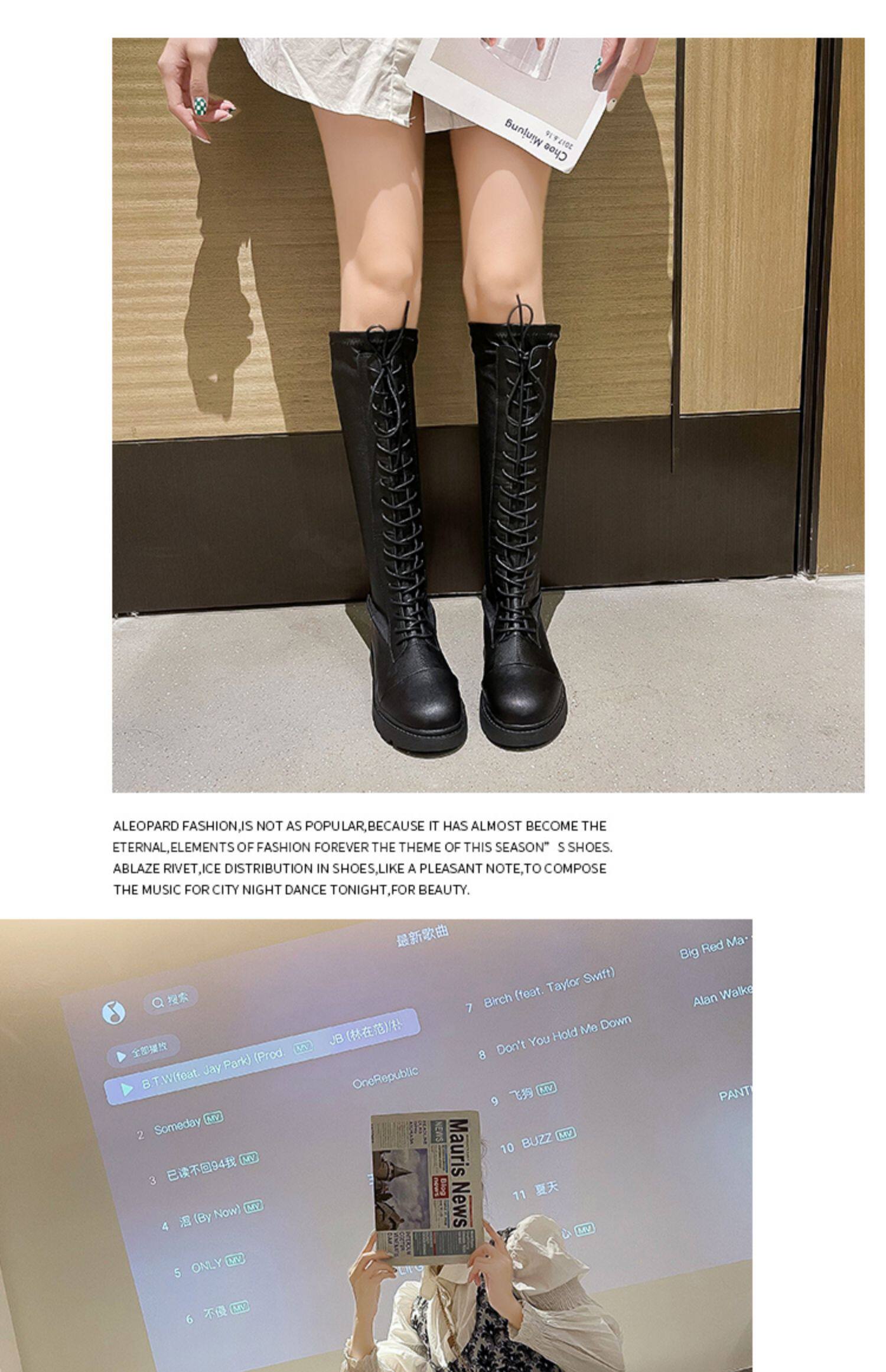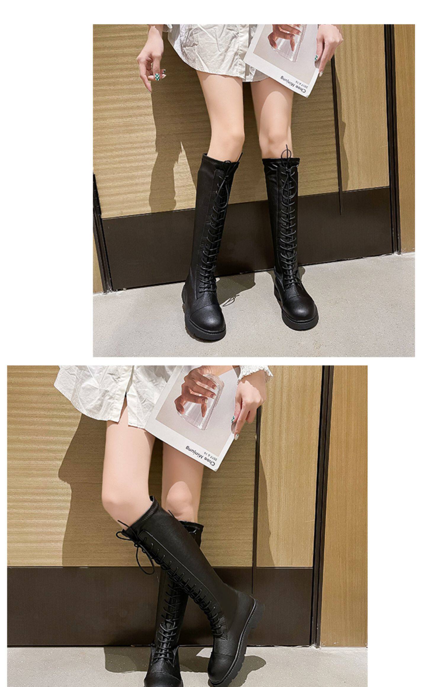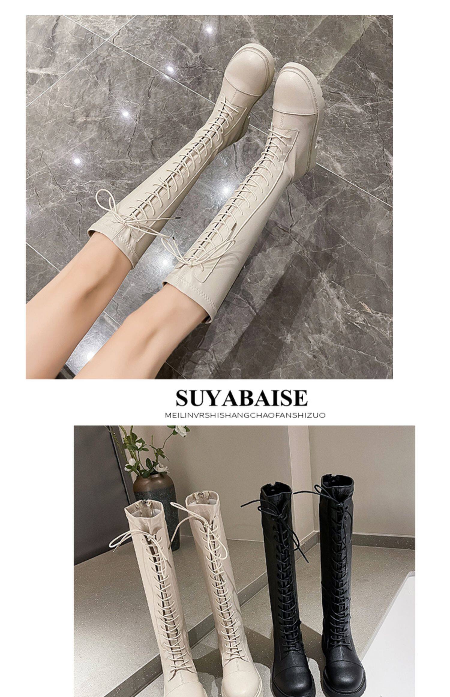 Белые высокие сапоги в английском стиле на платформе, коллекция 2021, в британском стиле