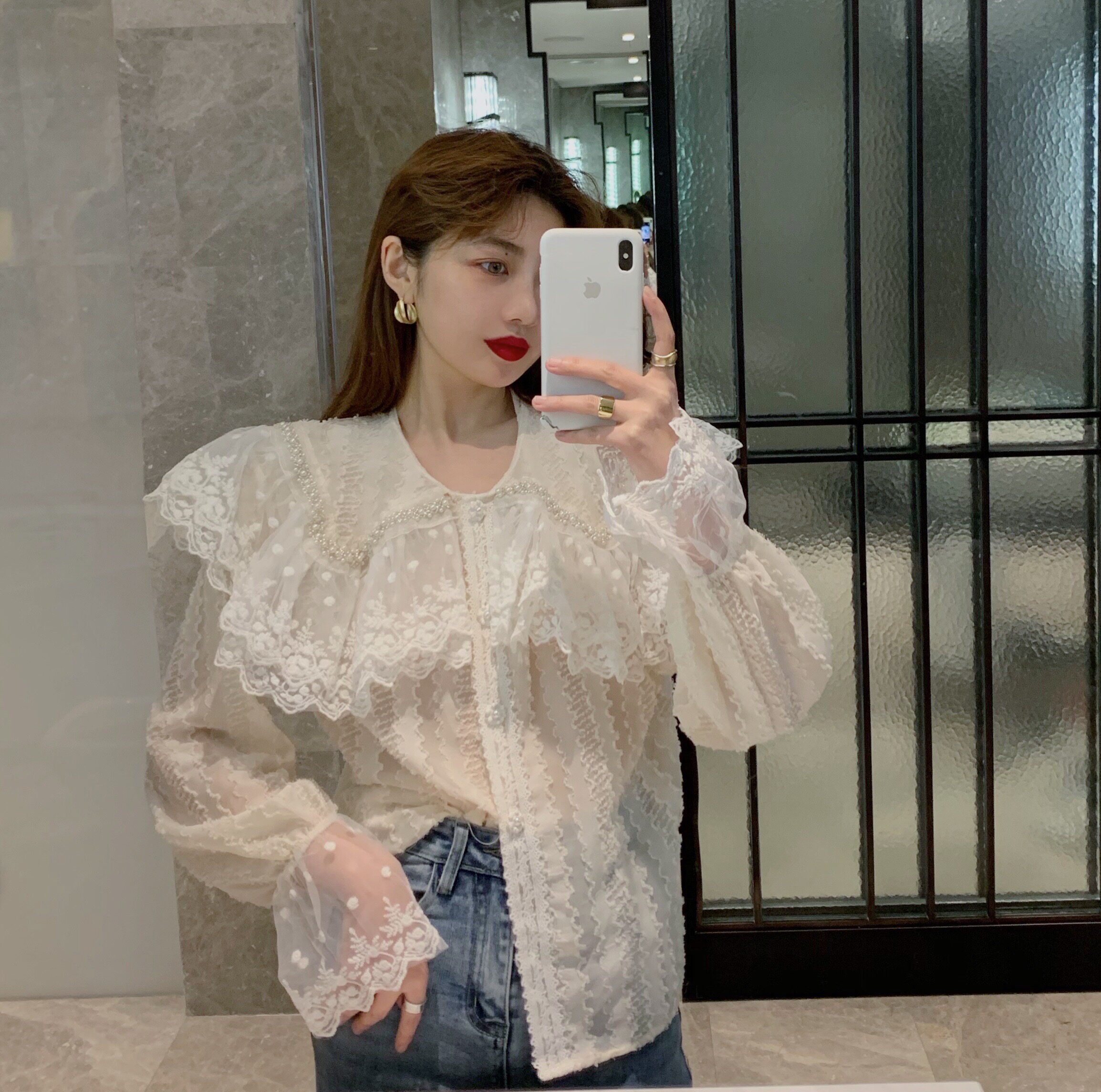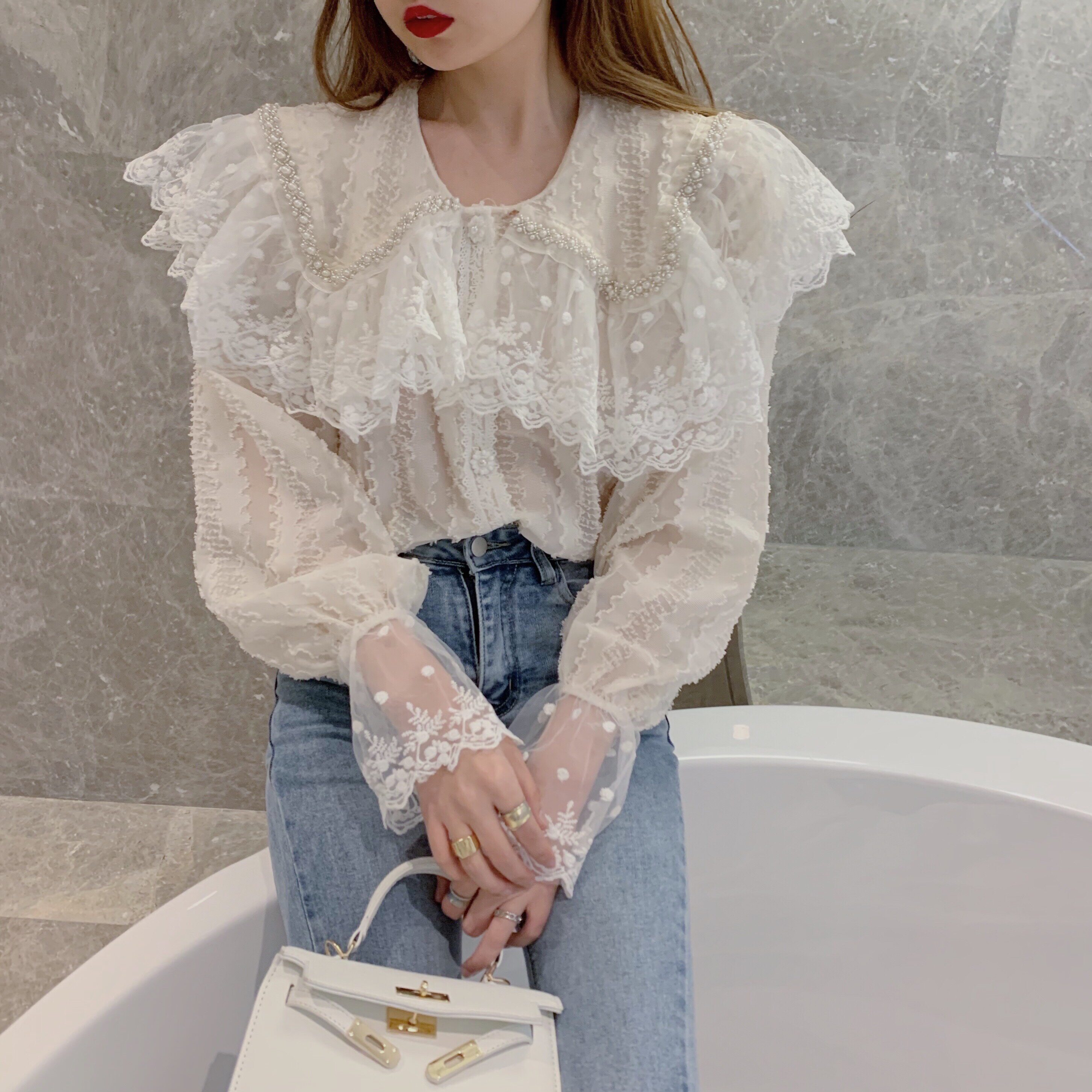 Кукла, весенняя осенняя модная универсальная рубашка, кукольный воротник, в западном стиле, 2024 года
