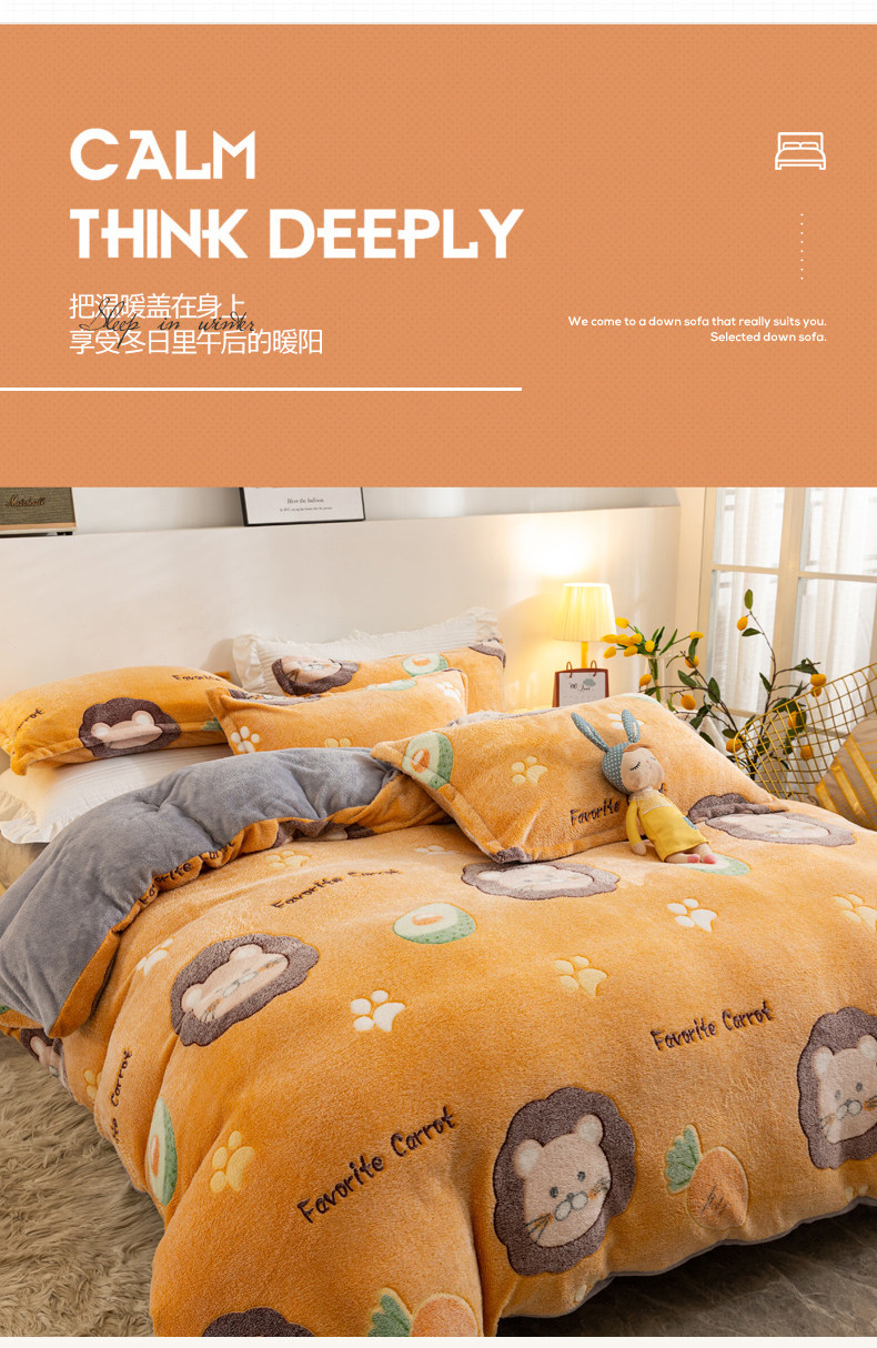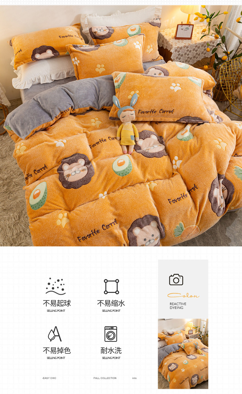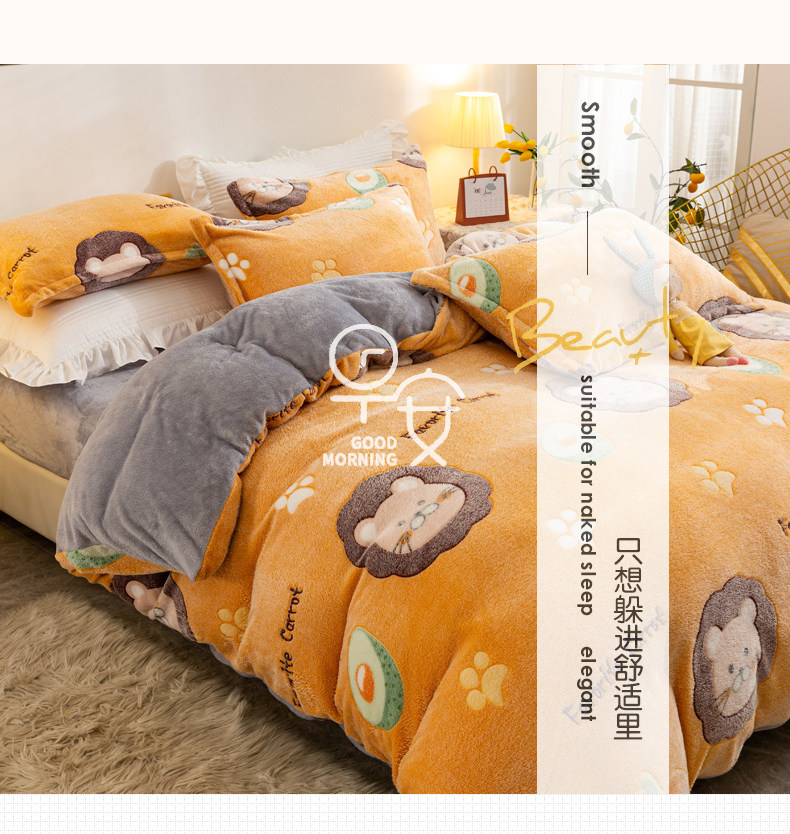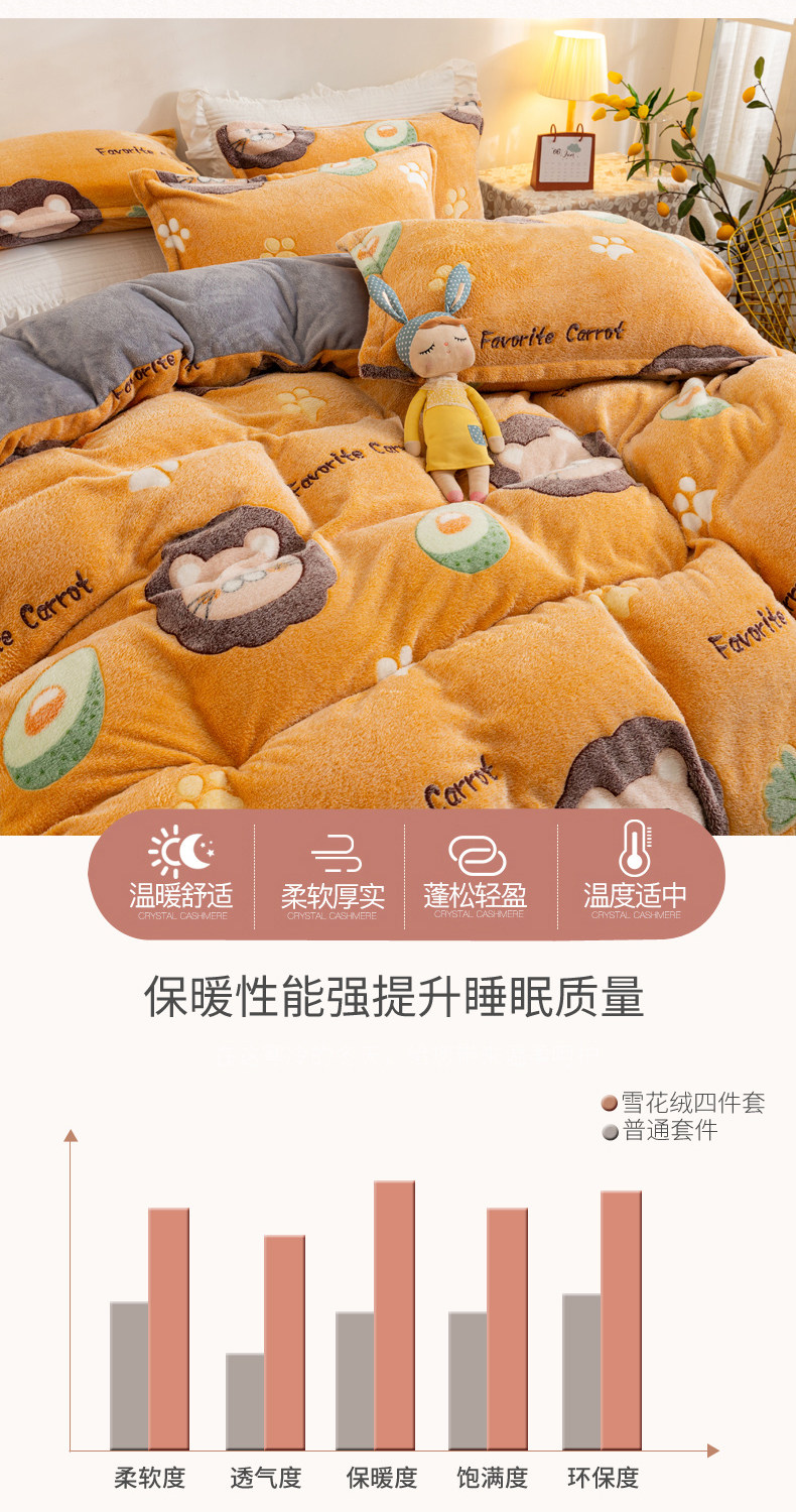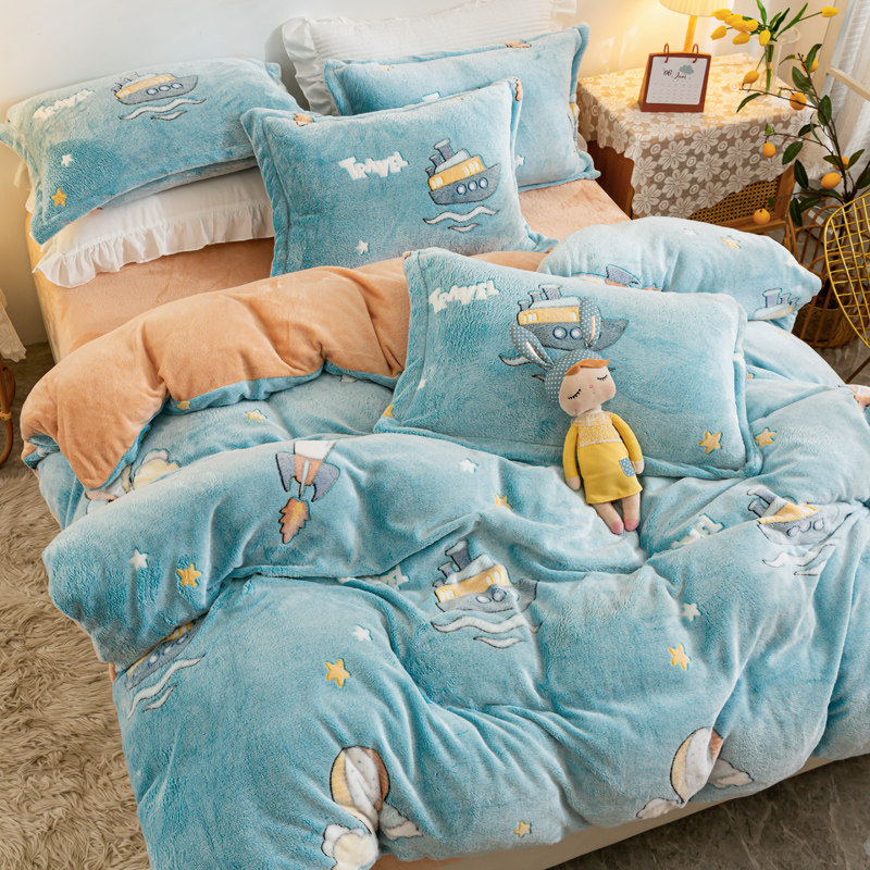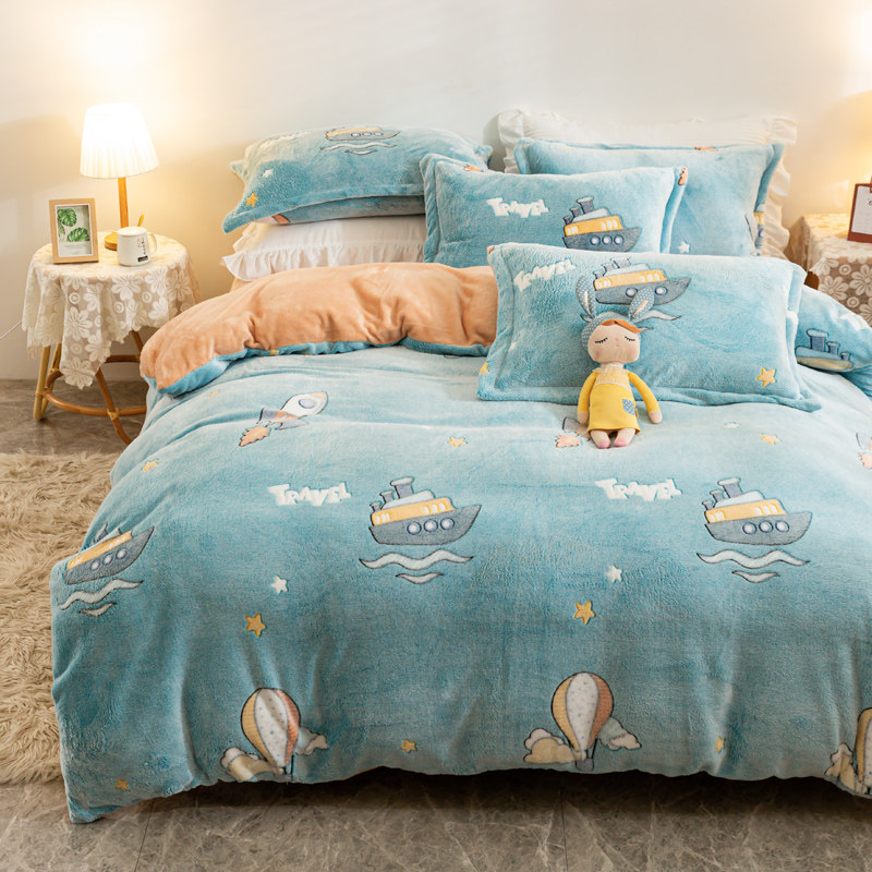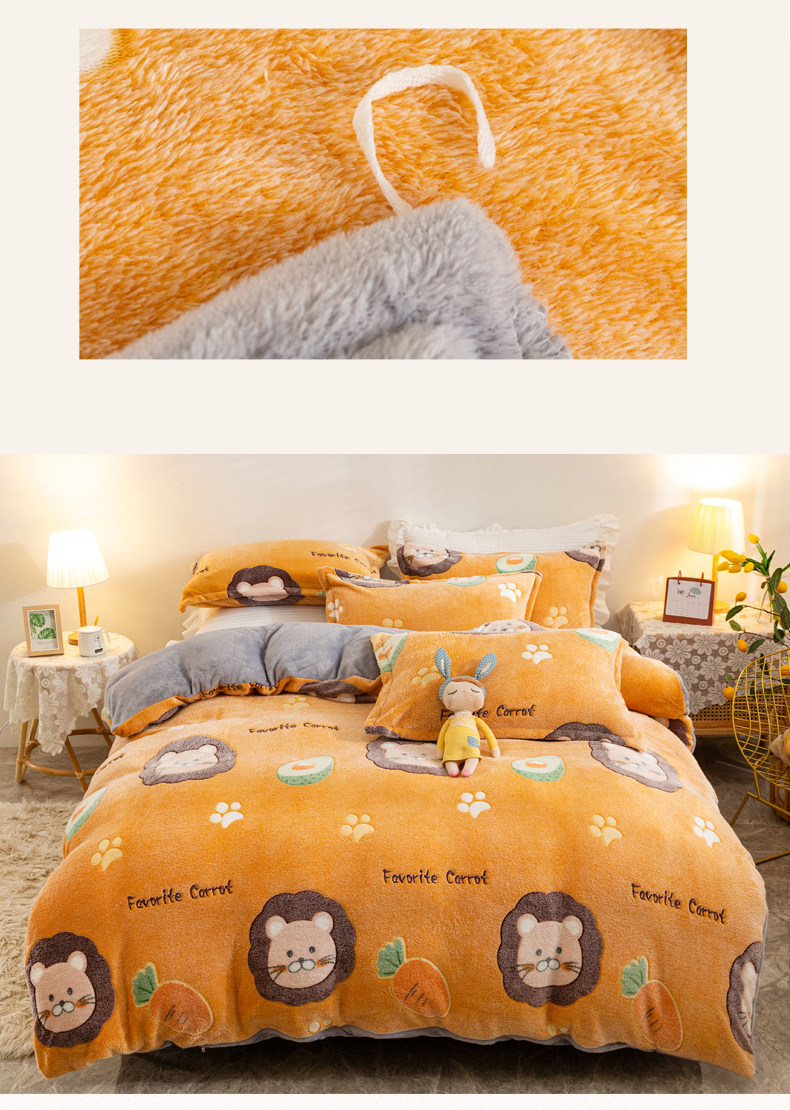 Коралловый бархатный двусторонний зимний фланелевый комплект, удерживающий тепло пододеяльник, простыня, увеличенная толщина, 4 предмета
