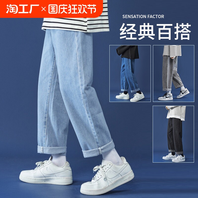 Джинсы, трендовые штаны, повседневные брюки, свободный прямой крой, в американском стиле