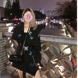 Осенний лонгслив, демисезонный трендовый костюм, оверсайз, с вышивкой, градиент