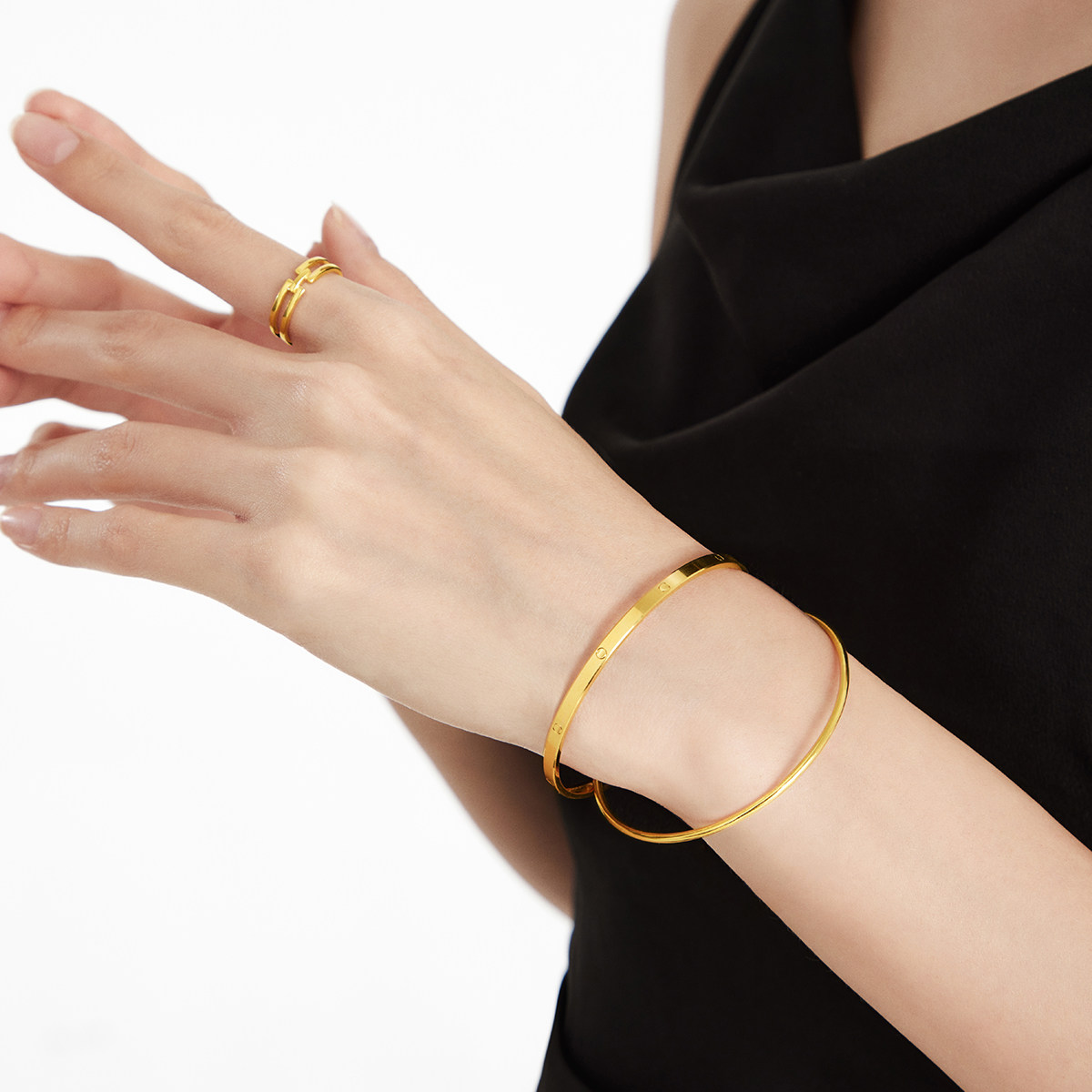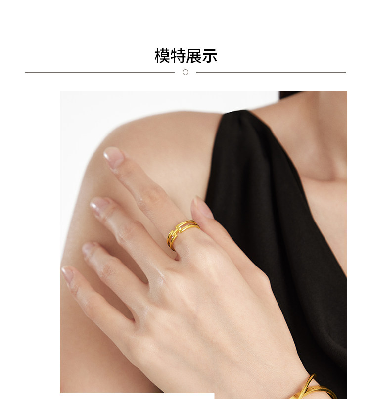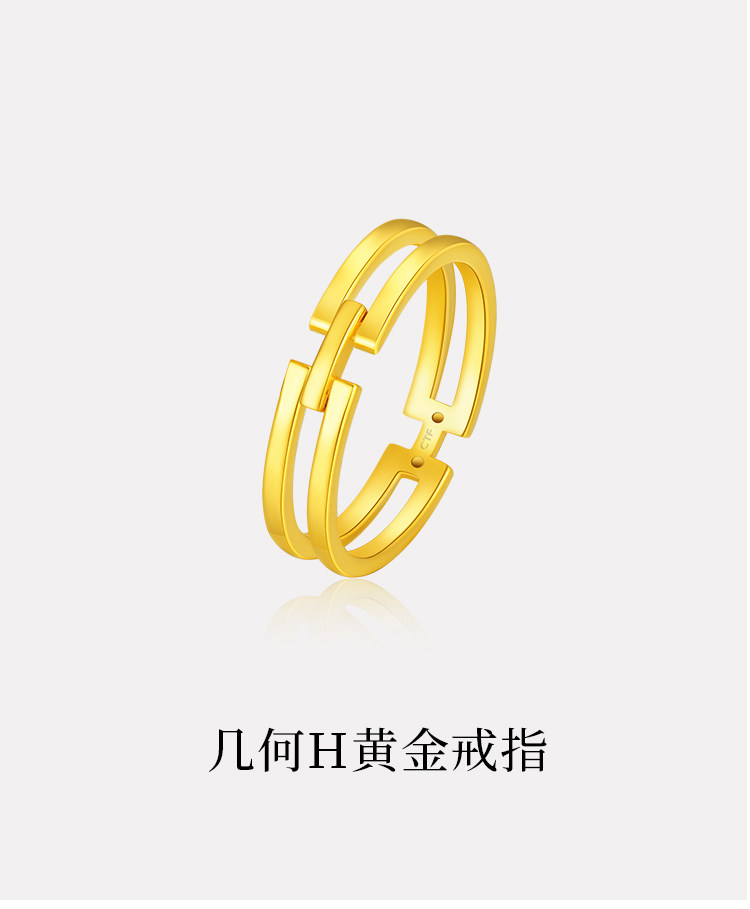 周大福 Геометричное золотое кольцо для влюбленных, подарок на день рождения