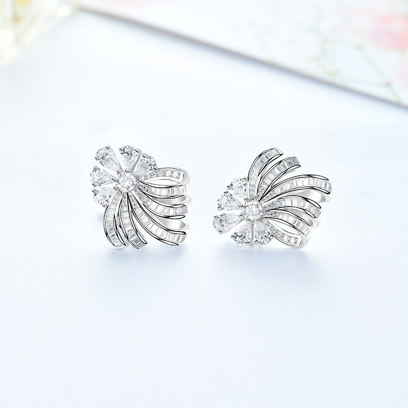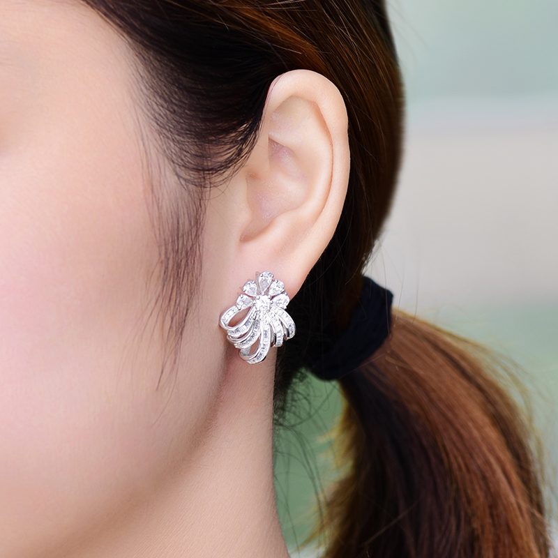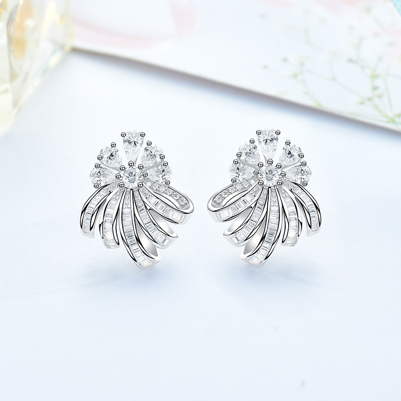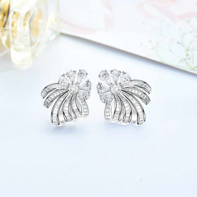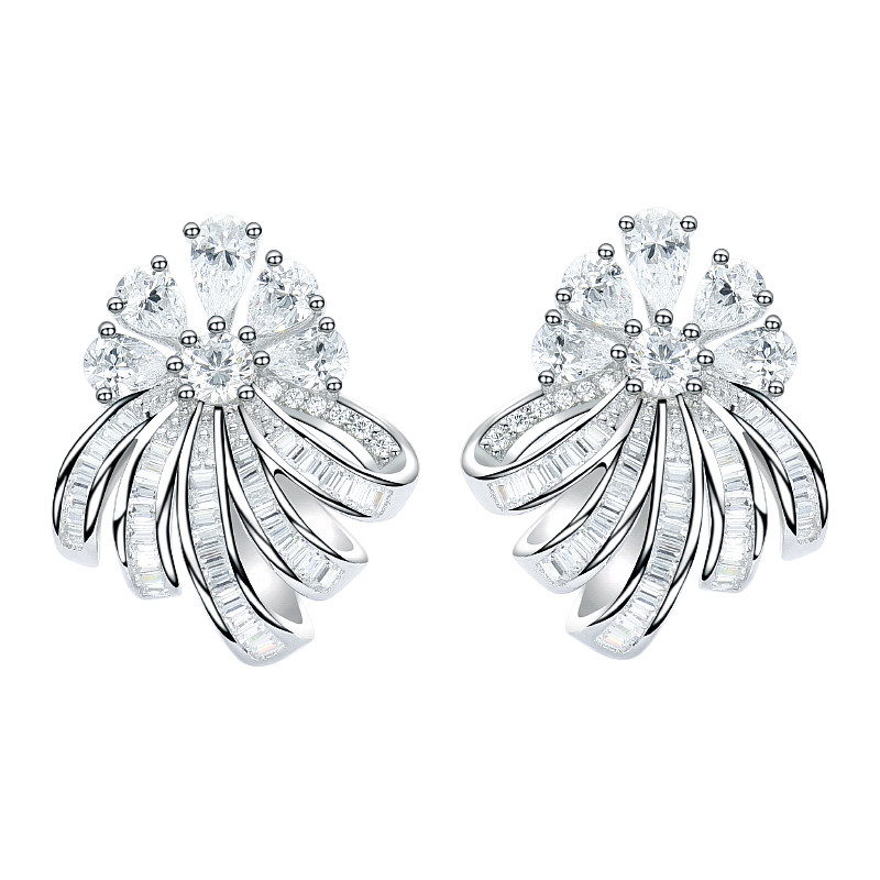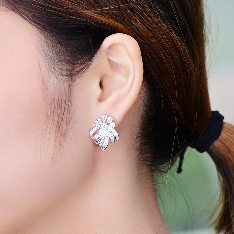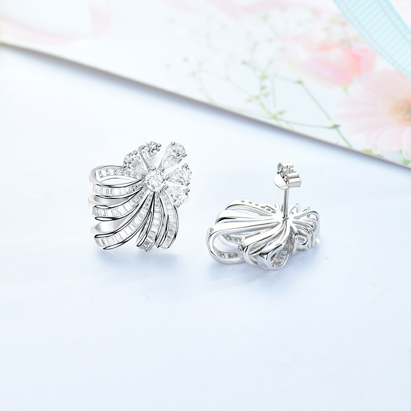 Ювелирное украшение, платиновые трехмерные серьги, серебро 925 пробы, в цветочек