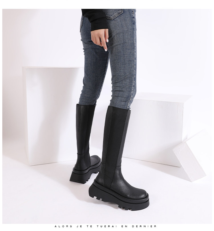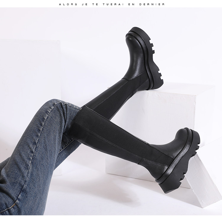 Martens, демисезонные эластичные высокие сапоги, из натуральной кожи