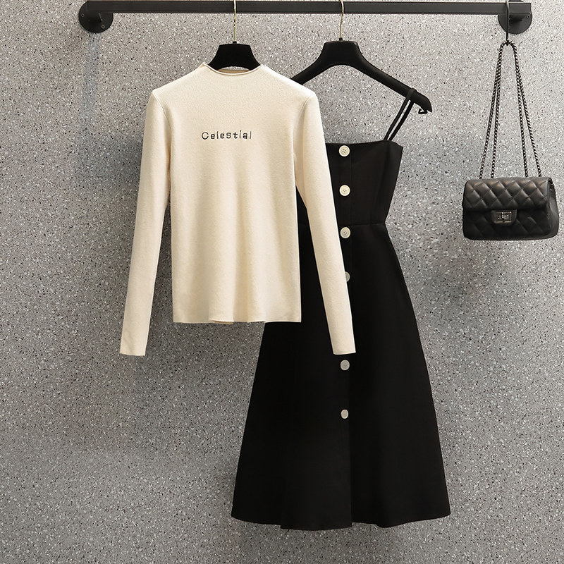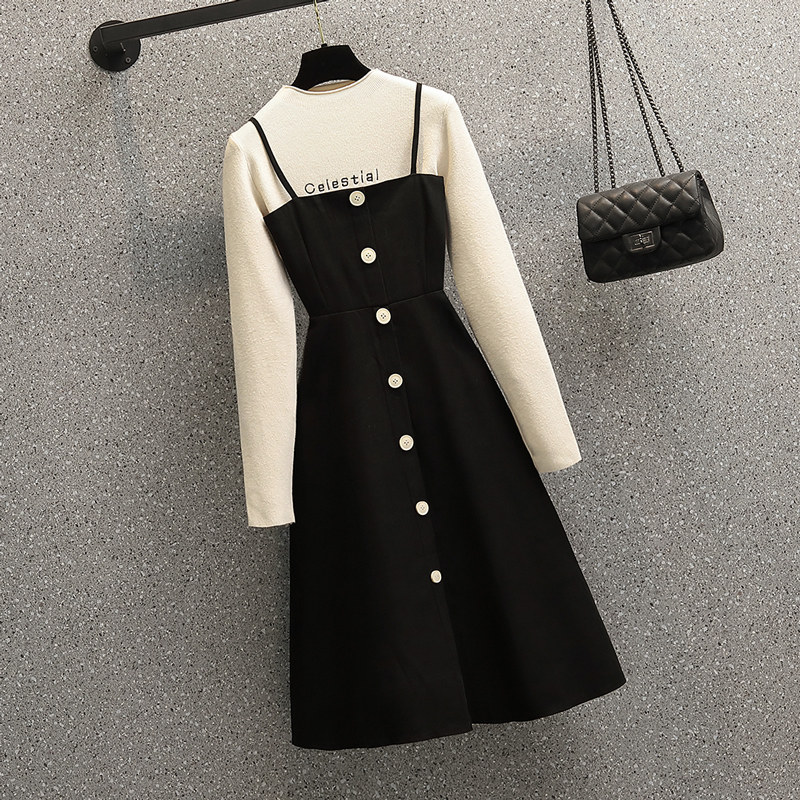 Осеннее трикотажное платье, комплект, большой размер, коллекция 2021, подходит для полных девушек, в западном стиле