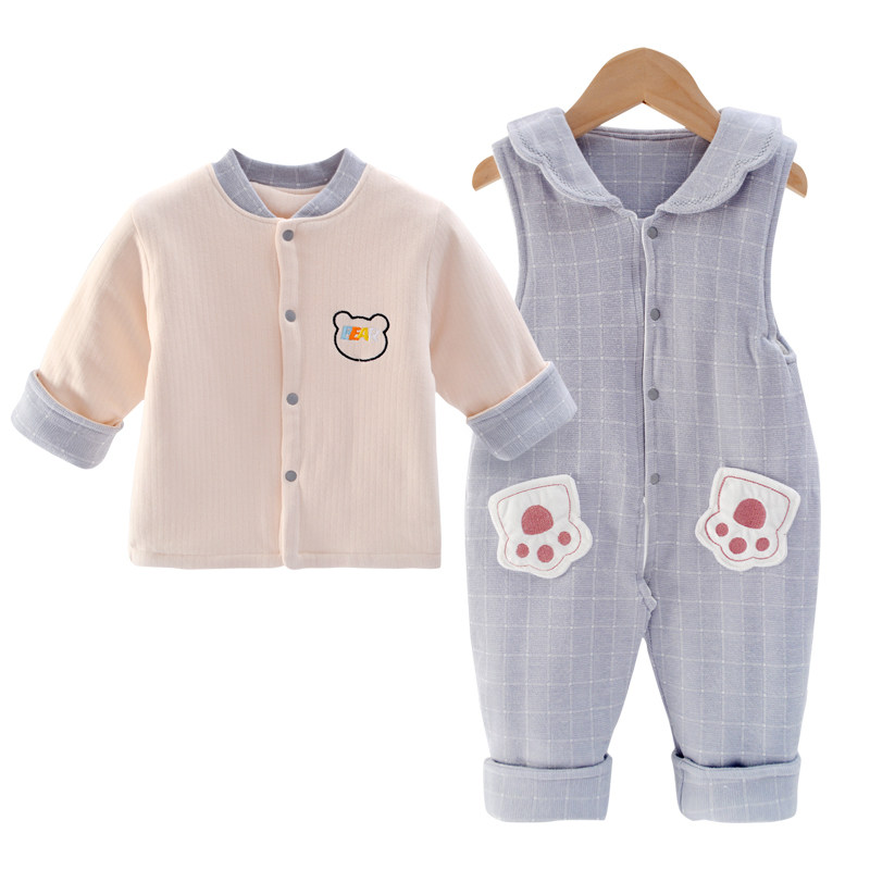 Мультяшный осенний комплект подходит для мужчин и женщин для девочек для раннего возраста, хлопковый стеганый комбинезон