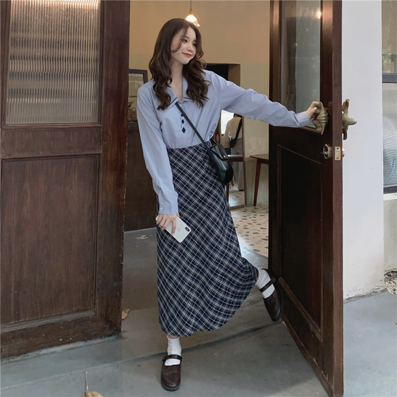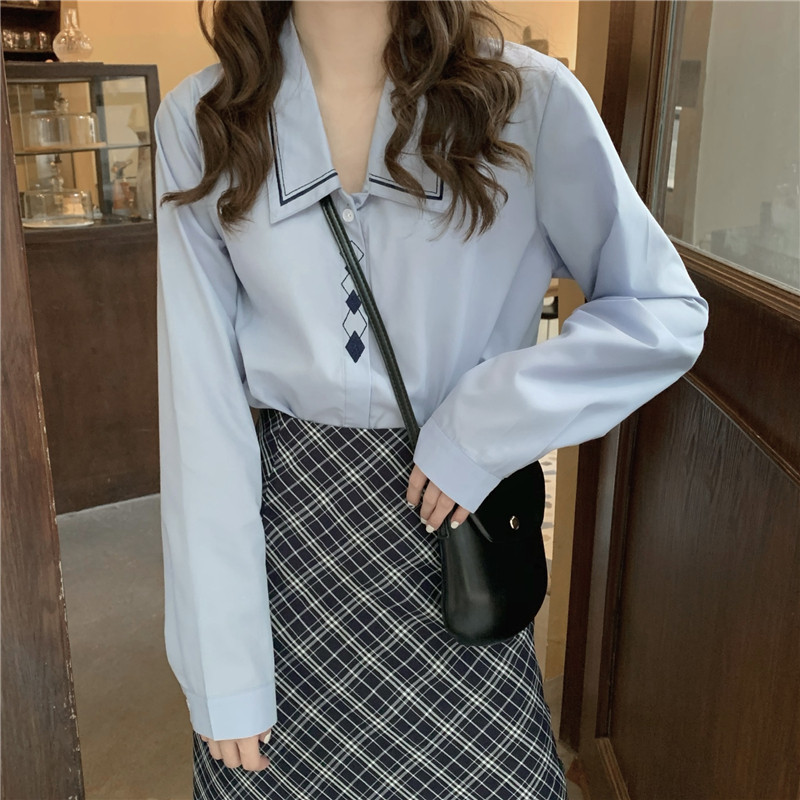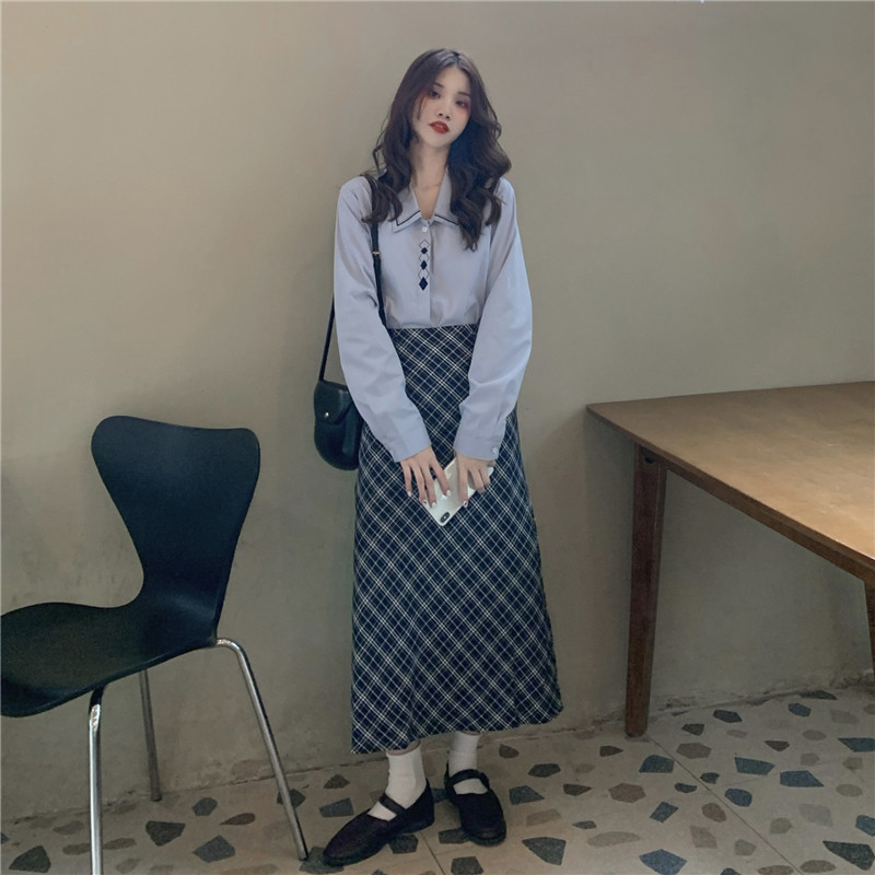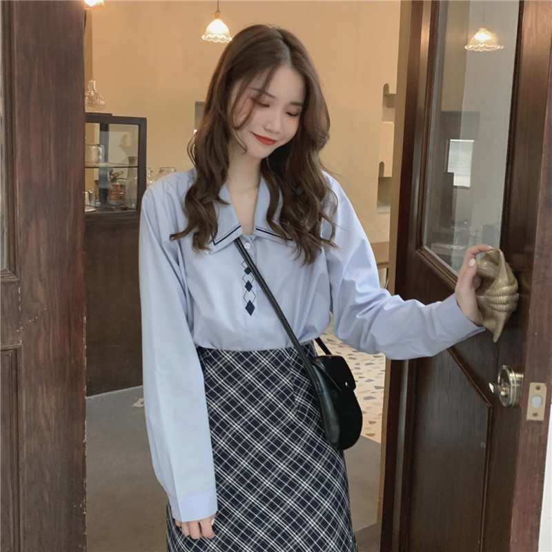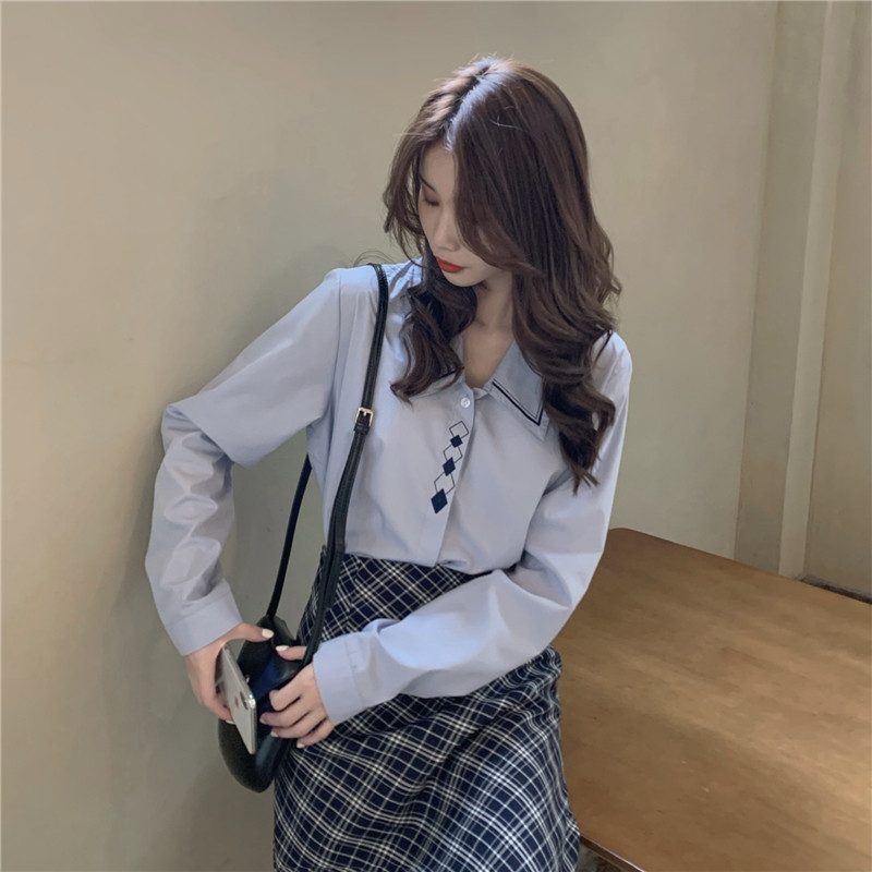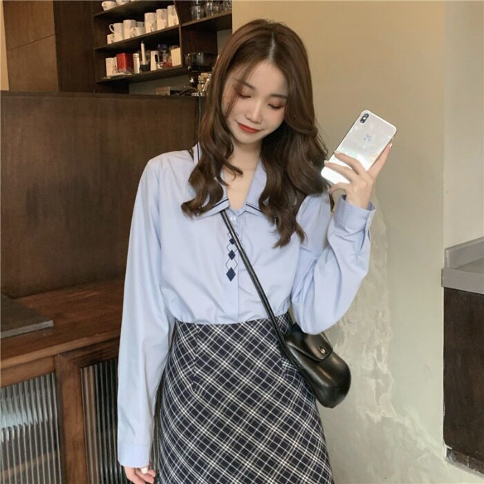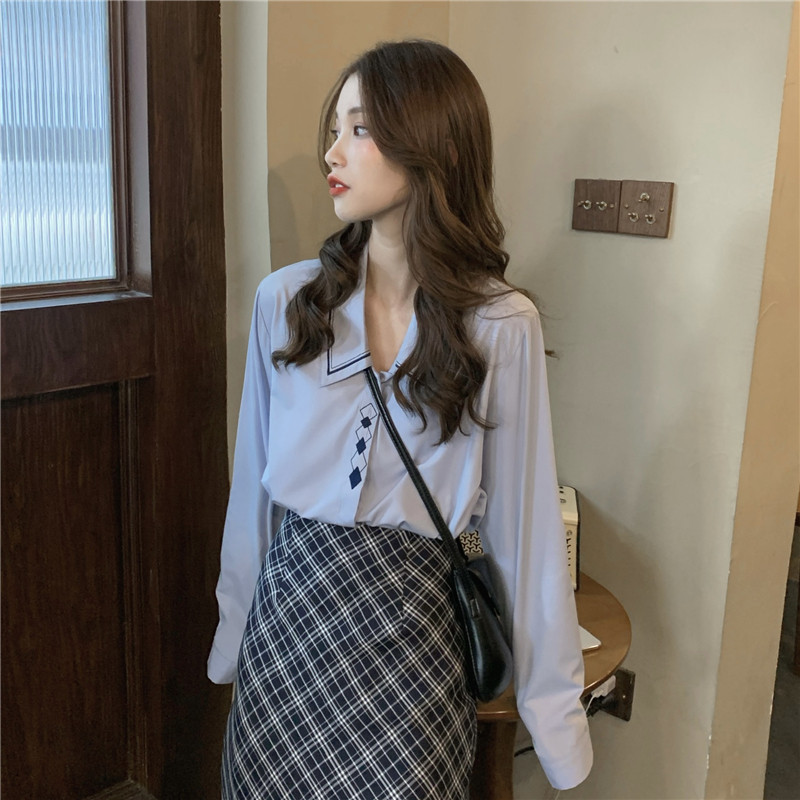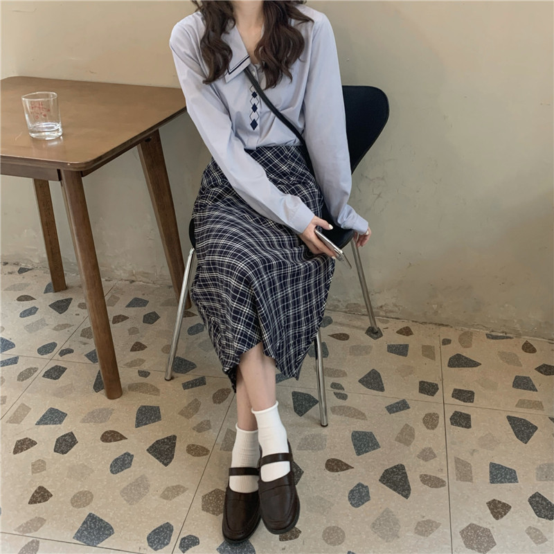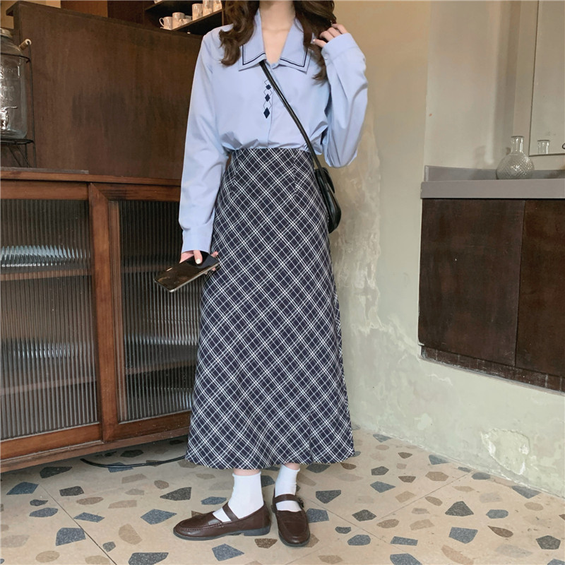 Весенний комплект, рубашка, ретро лонгслив, поясная сумка, брендовая юбка, с вышивкой, А-силуэт, высокая талия