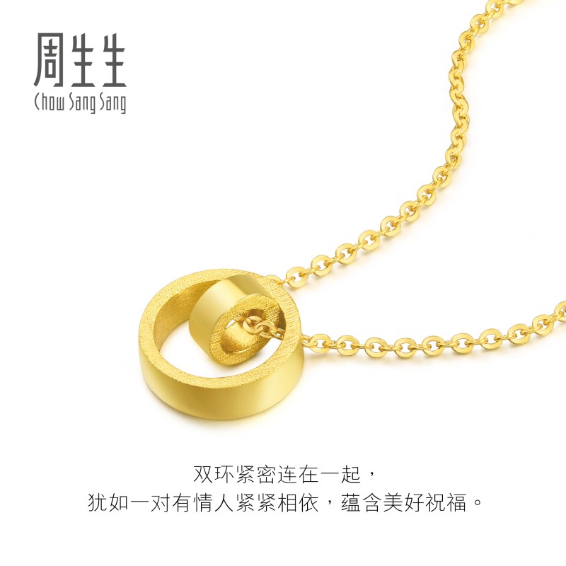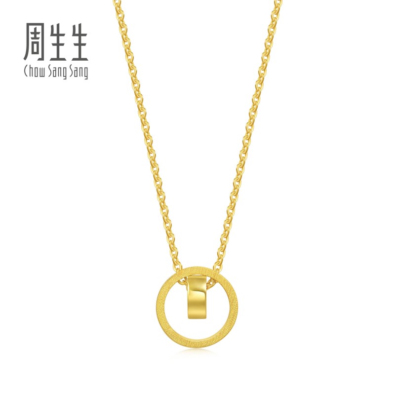 周生生 Серия Essence Yong, колье с двойным кольцом, кулон, золотой кулон из чистого золота 92985N