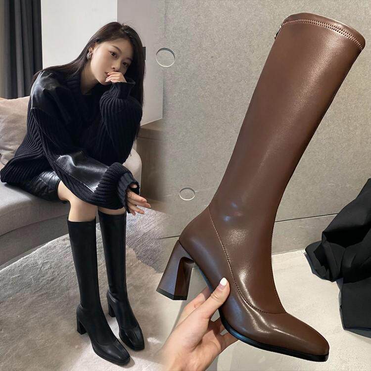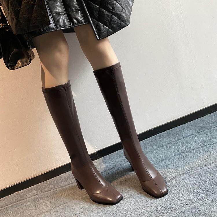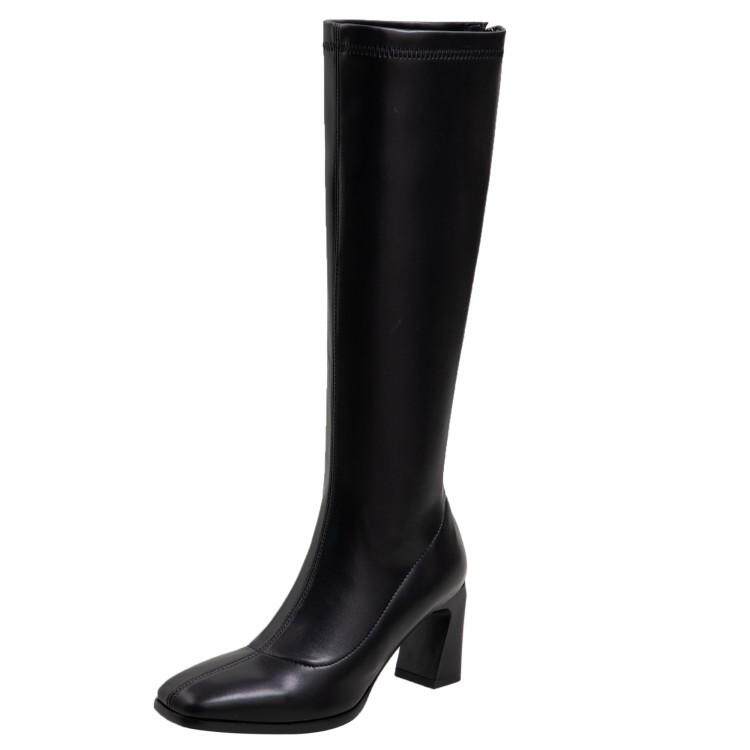 Рыцарские сапоги, женские высокие сапоги, сапоги не выше колена, прямые сапоги, длинные кожаные сапоги, женские сапоги, узкие сапоги для верховой езды, универсальные, новые и модные.