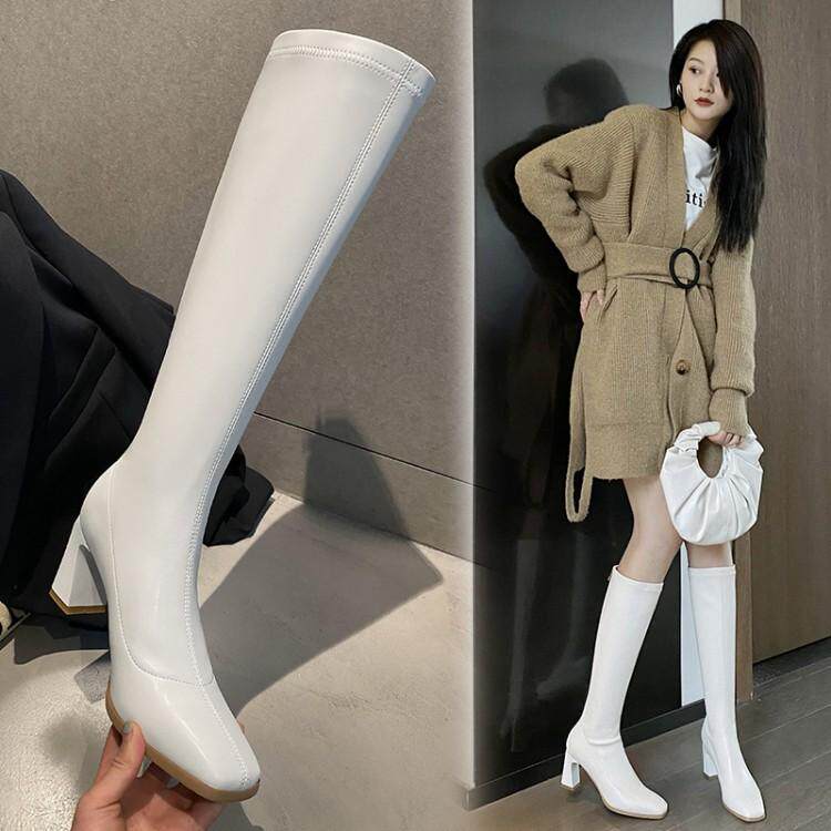 - Белые бутик -шерстяные сапоги