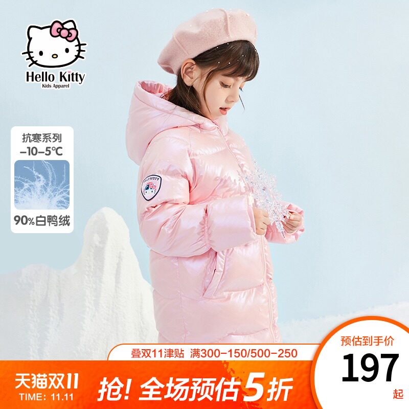 Hello Kitty, демисезонная бархатная длинная толстовка с капюшоном, пуховик, детская одежда, коллекция 2021, утиный пух, средней длины