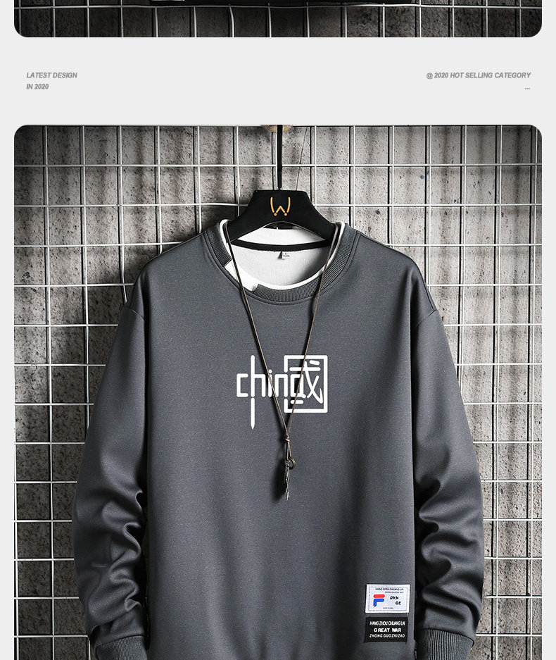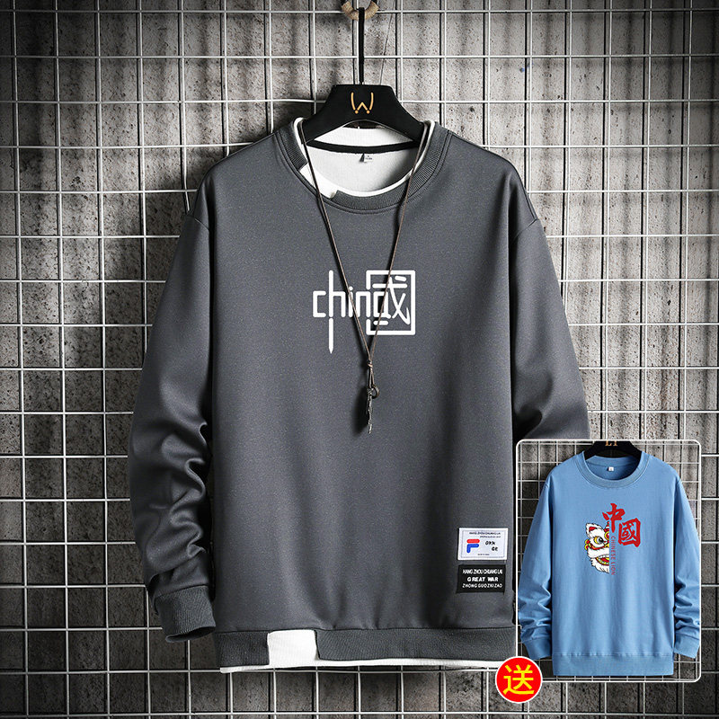 Мужской осенний лонгслив, комплект с круглым воротником для отдыха, трендовая осенняя толстовка