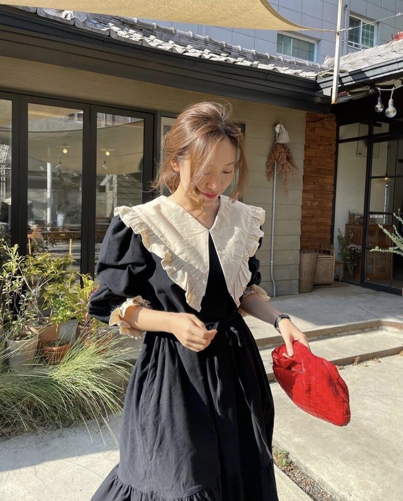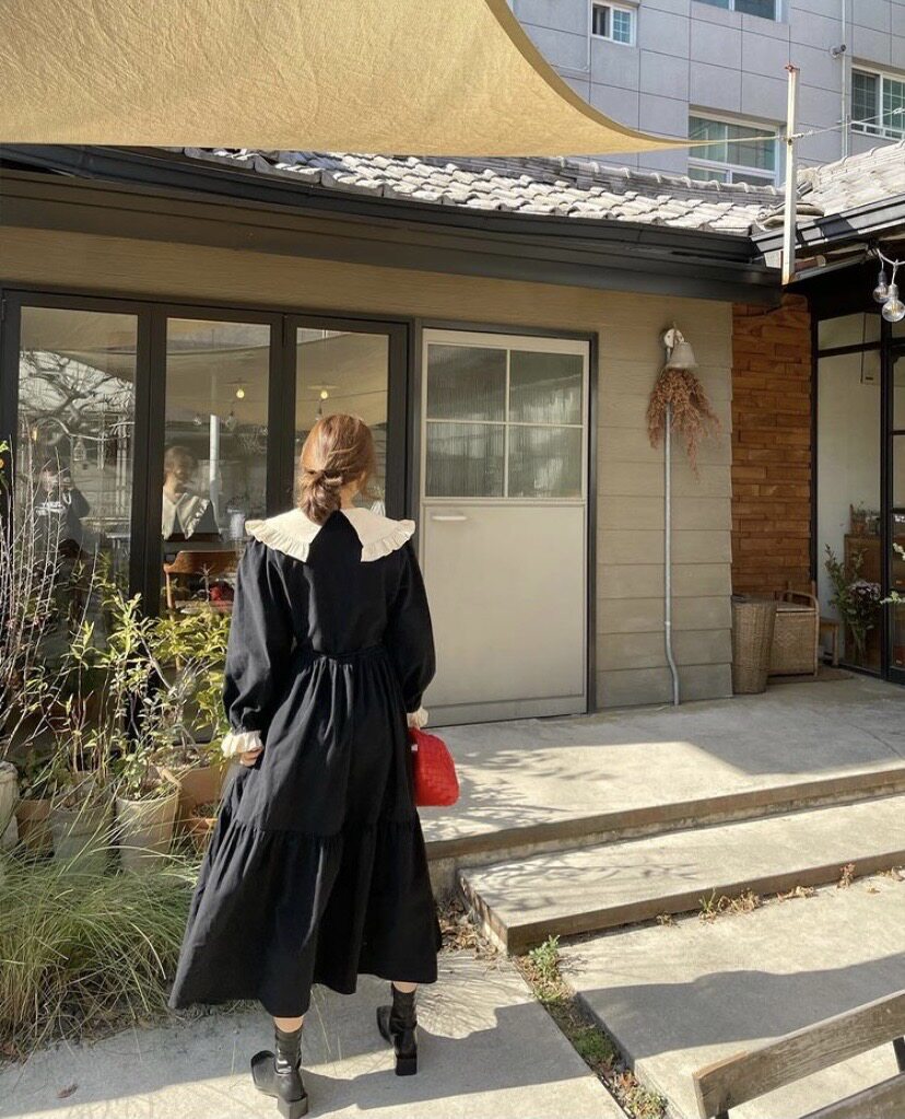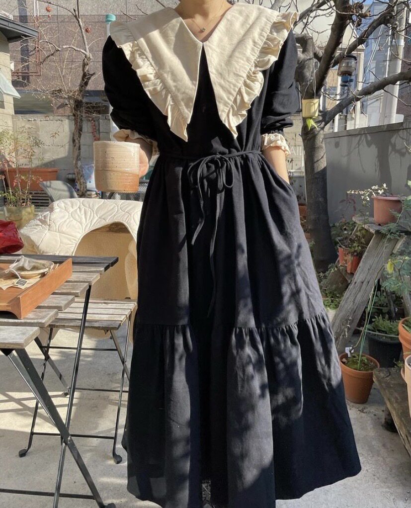 Кукла, осеннее платье, ретро лонгслив, черная юбка, большой размер, кукольный воротник, новая коллекция