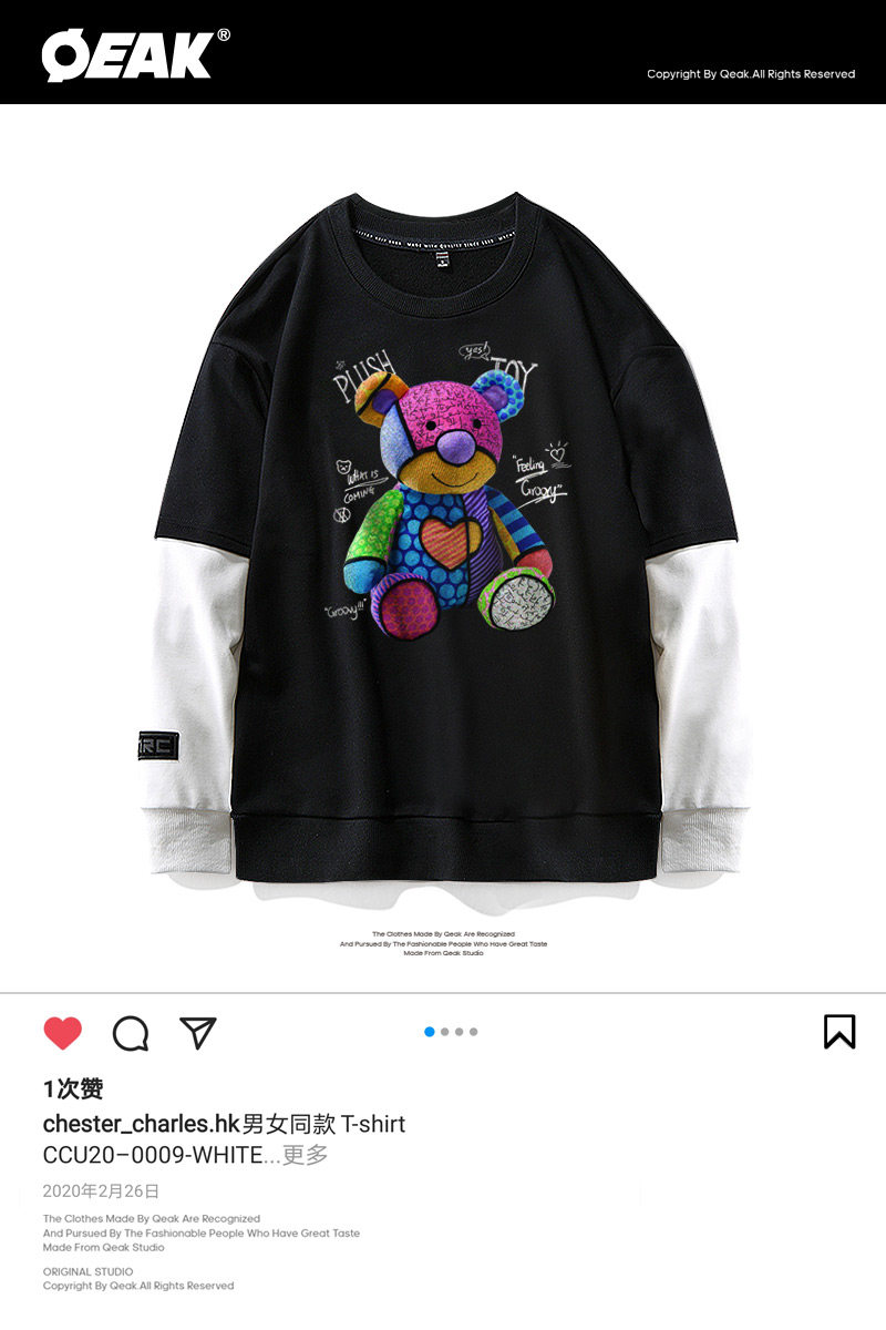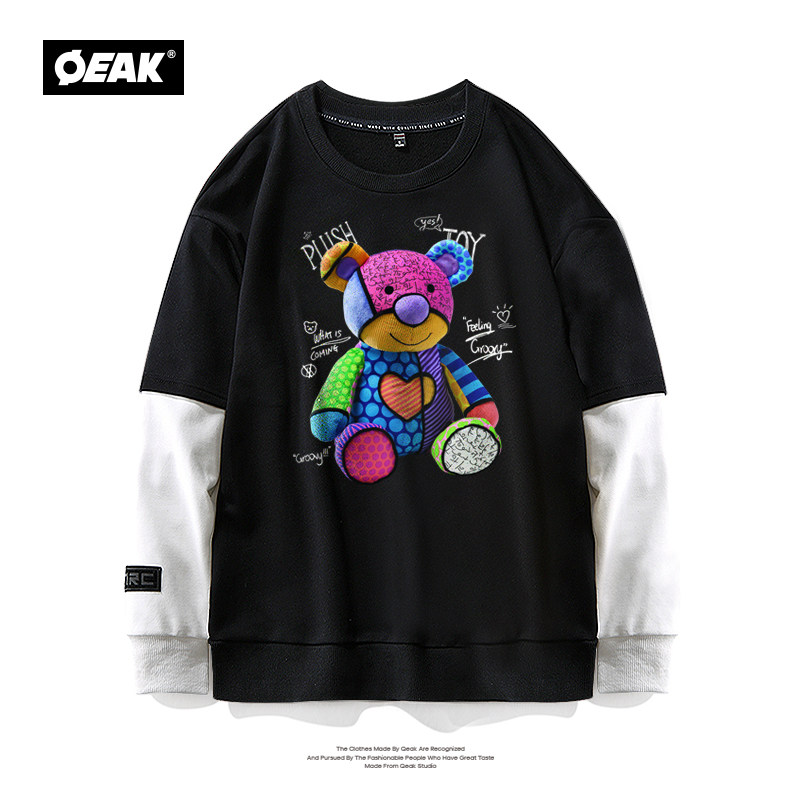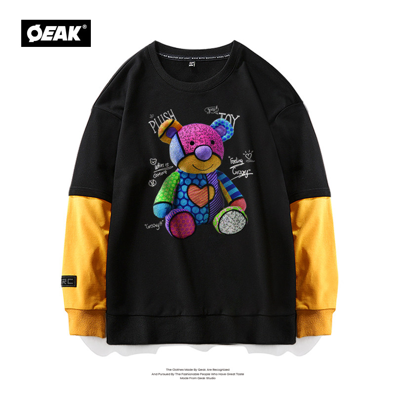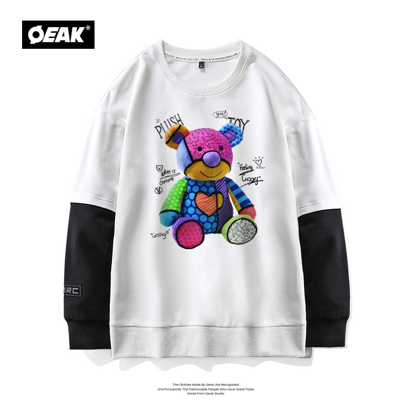 Демисезонный комплект с круглым воротником, толстовка, коллекция 2021, с медвежатами, ручная роспись, принт, оверсайз