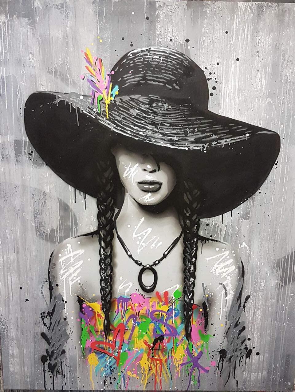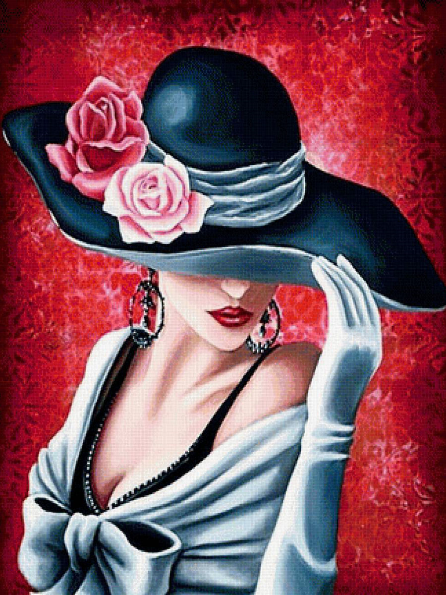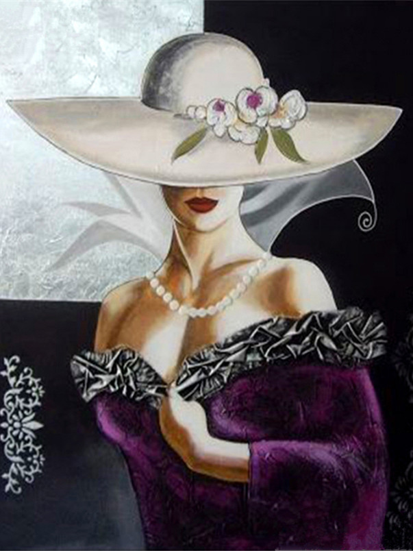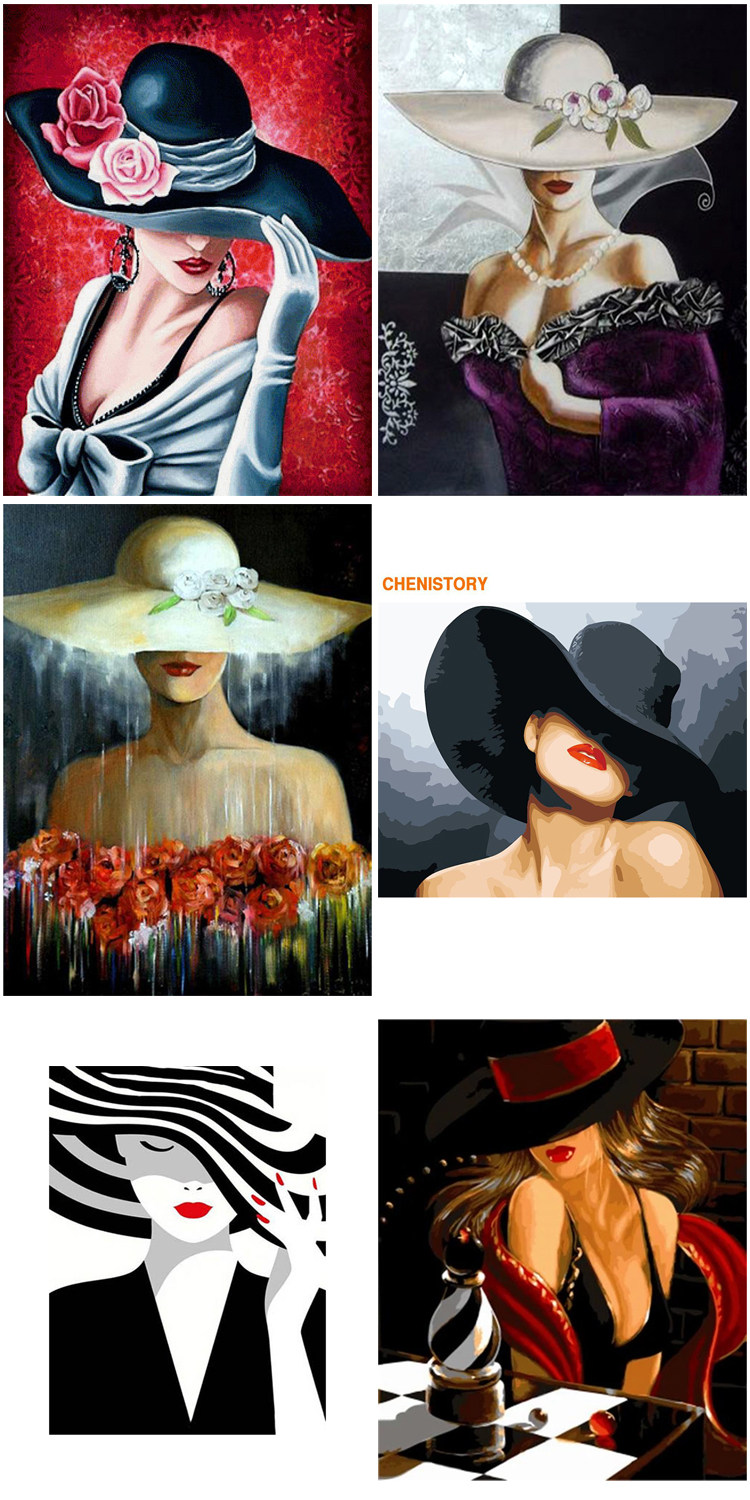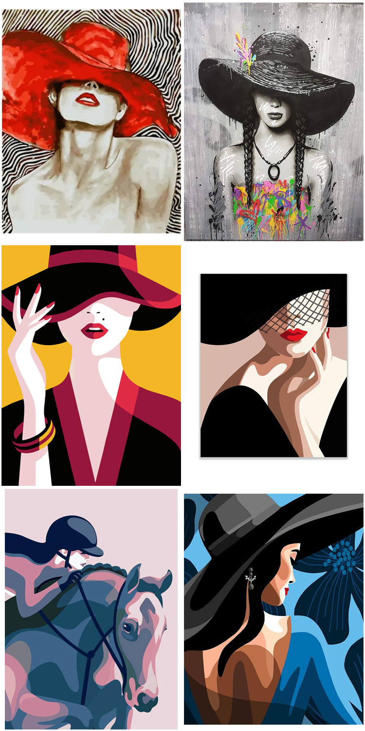 DIY Цифровой масляной живопись, чтобы заполнить цвет и носить шляпу, красные губы, женщина сексуальная красота, эстетическая салата для дома украшения