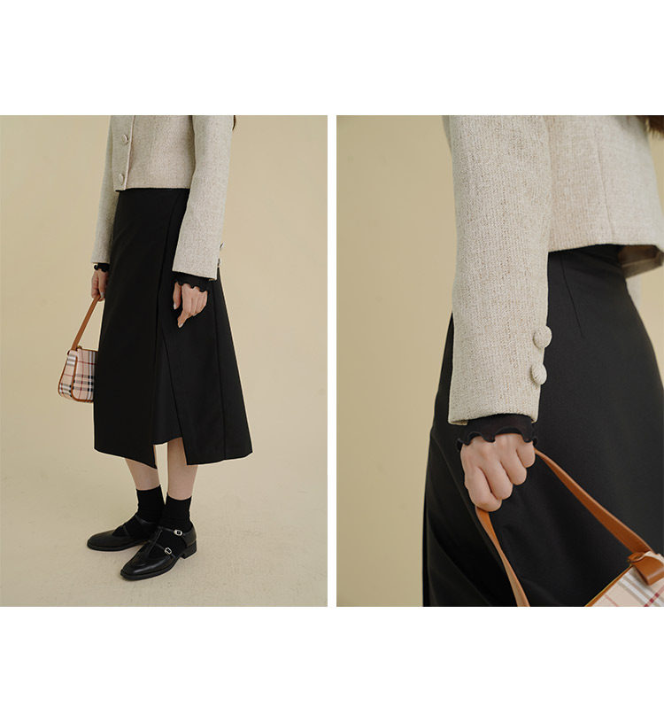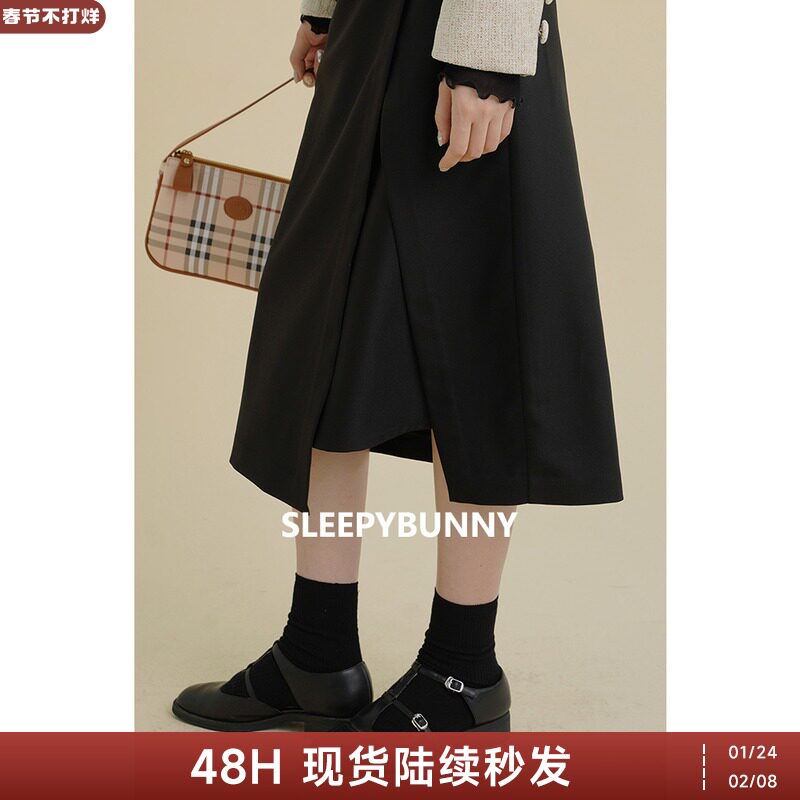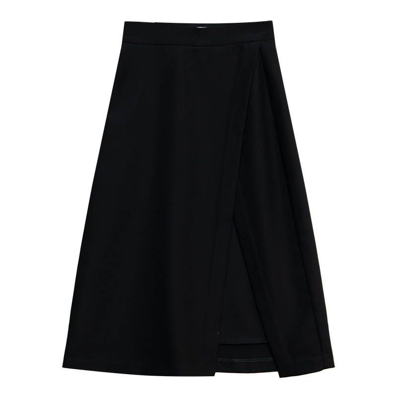 Черная осенняя асимметричная дизайнерская приталенная длинная юбка, 2021 года, тренд сезона, высокая талия, средней длины, А-силуэт